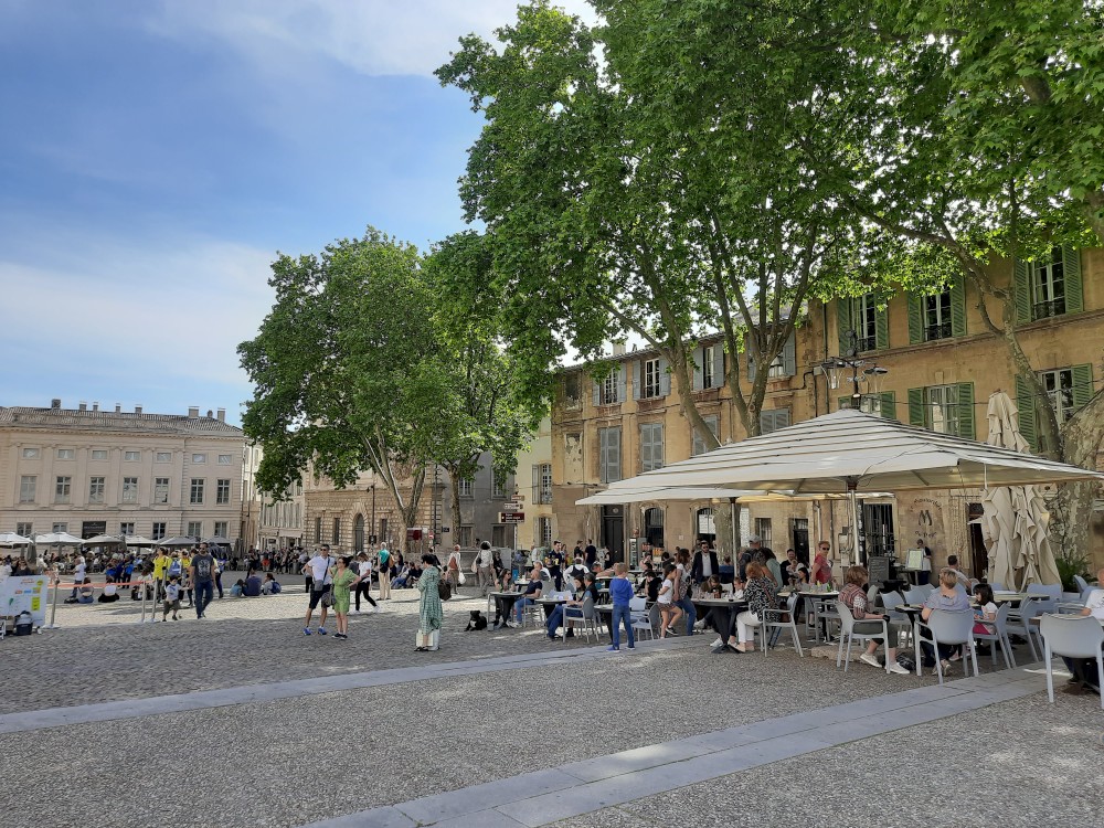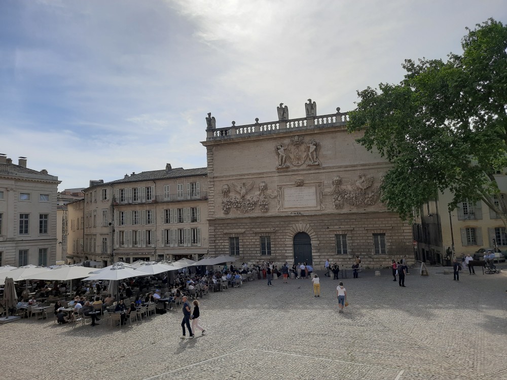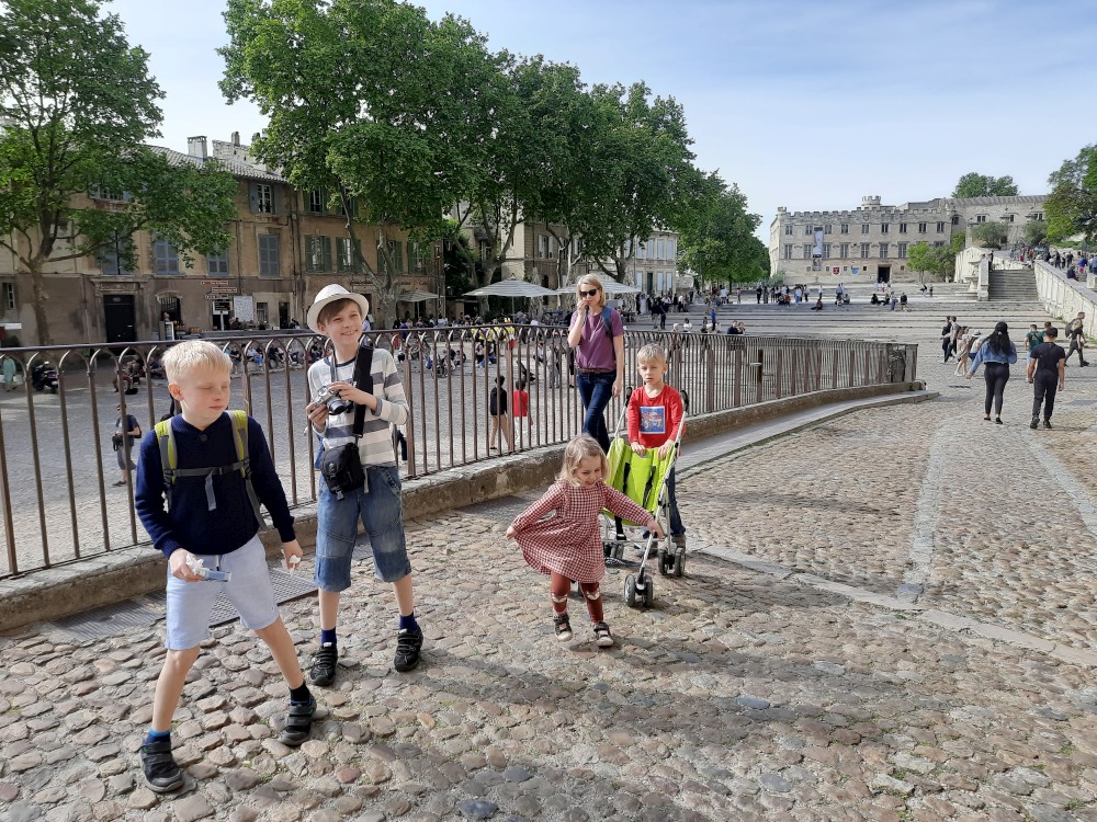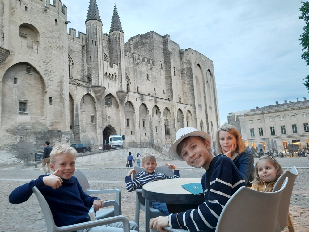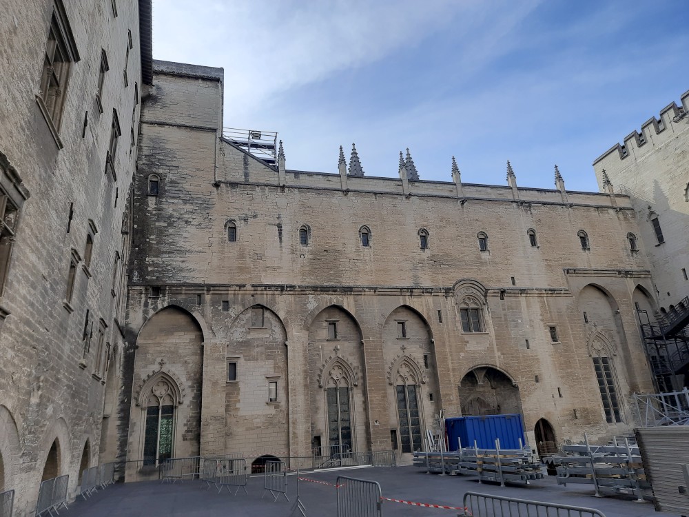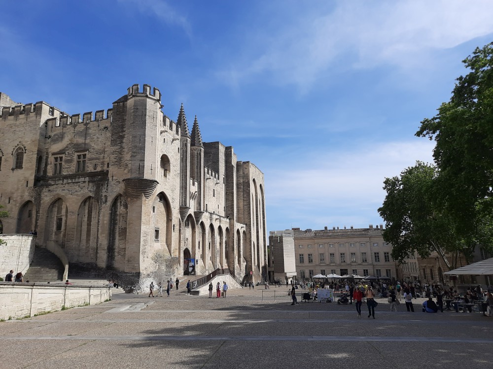 Vstup do apartmánu je přímo z ulice, od majitele známe kód od dveří. Rychle vybalujeme, dlouho se tu nezdržíme, chystáme se na výlet do města. Chceme ještě dnes stihnou navštívit papežský palác, který má ještě cca 2 hodiny otevřeno. K papežskému paláci je to z apartmánu opravdu kousíček. Stojí na rozlehlém náměstí Place du Palais, kde panuje čilý ruch. Je tu spousta kaváren a restaurací.