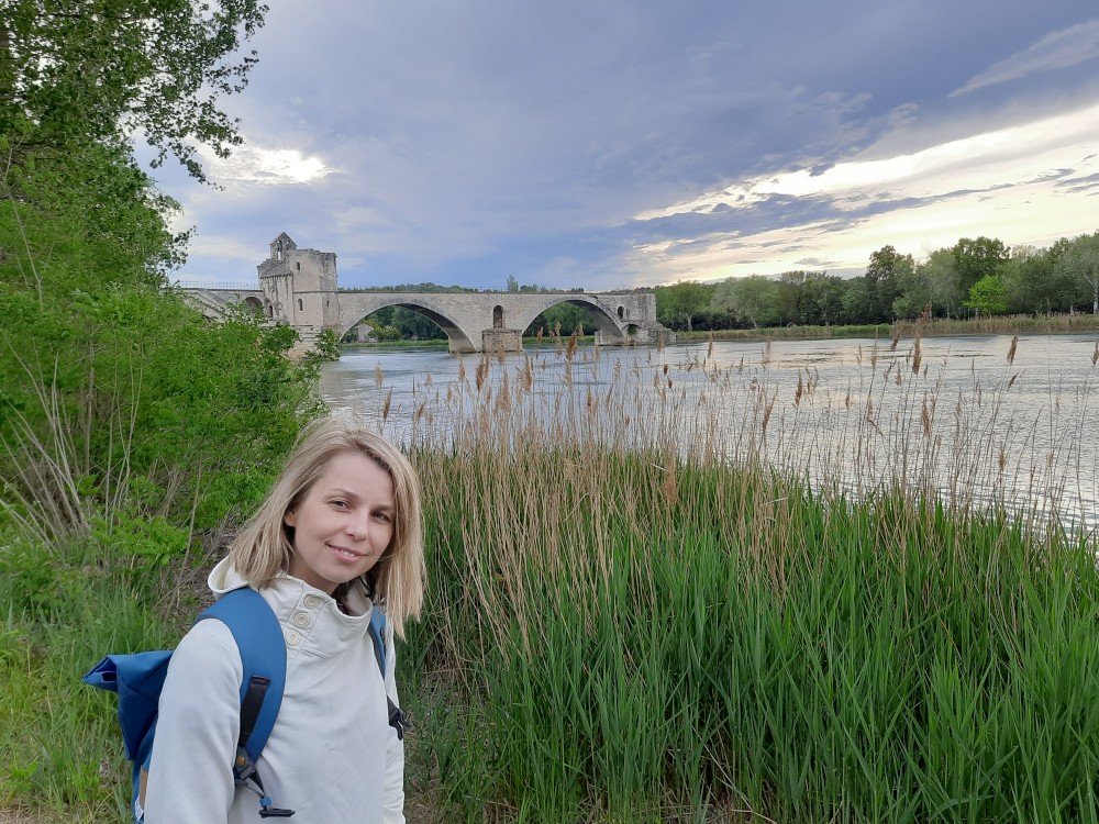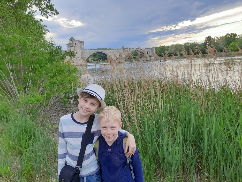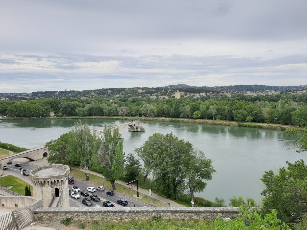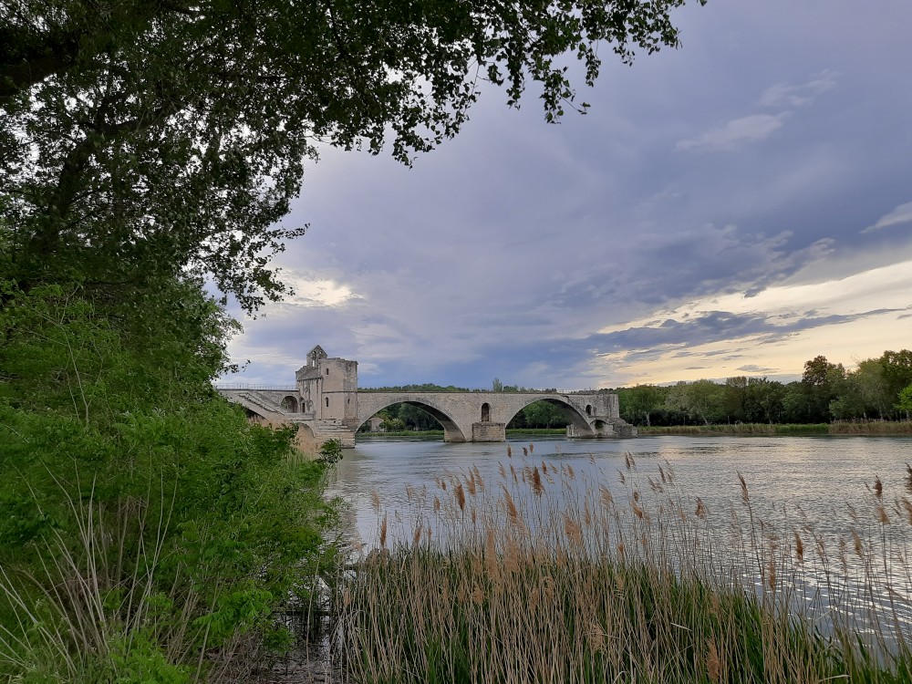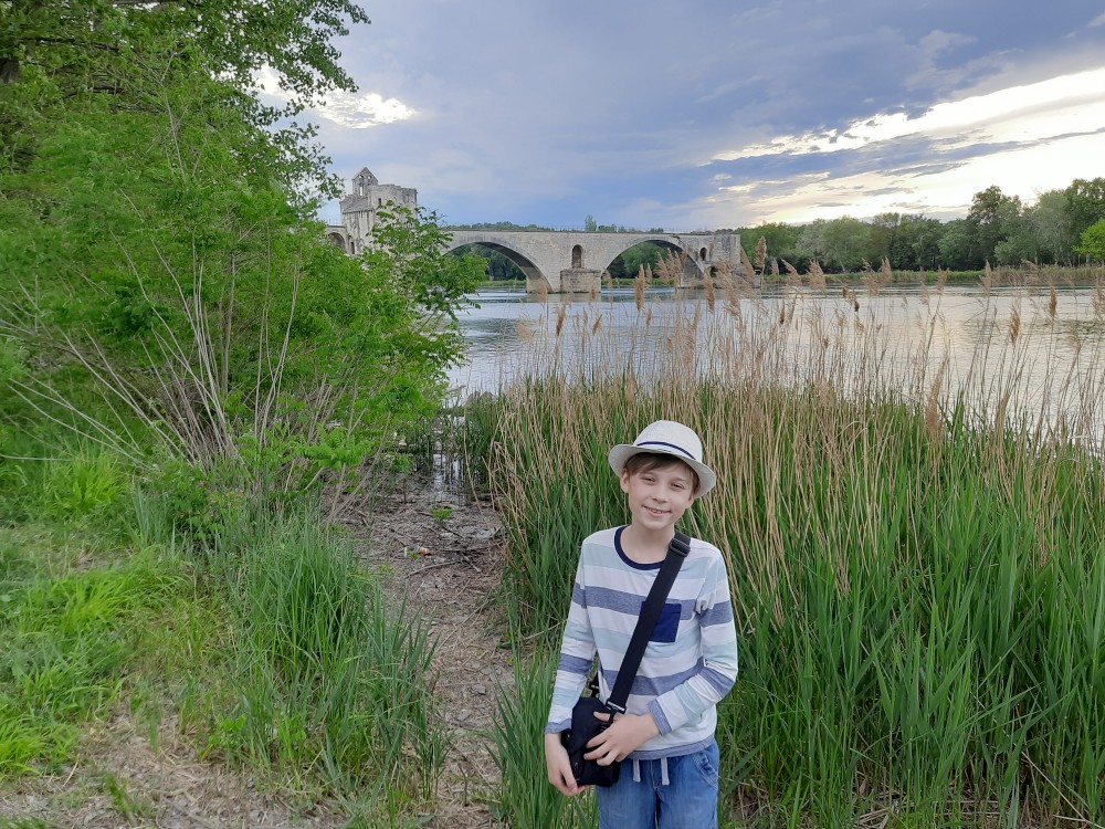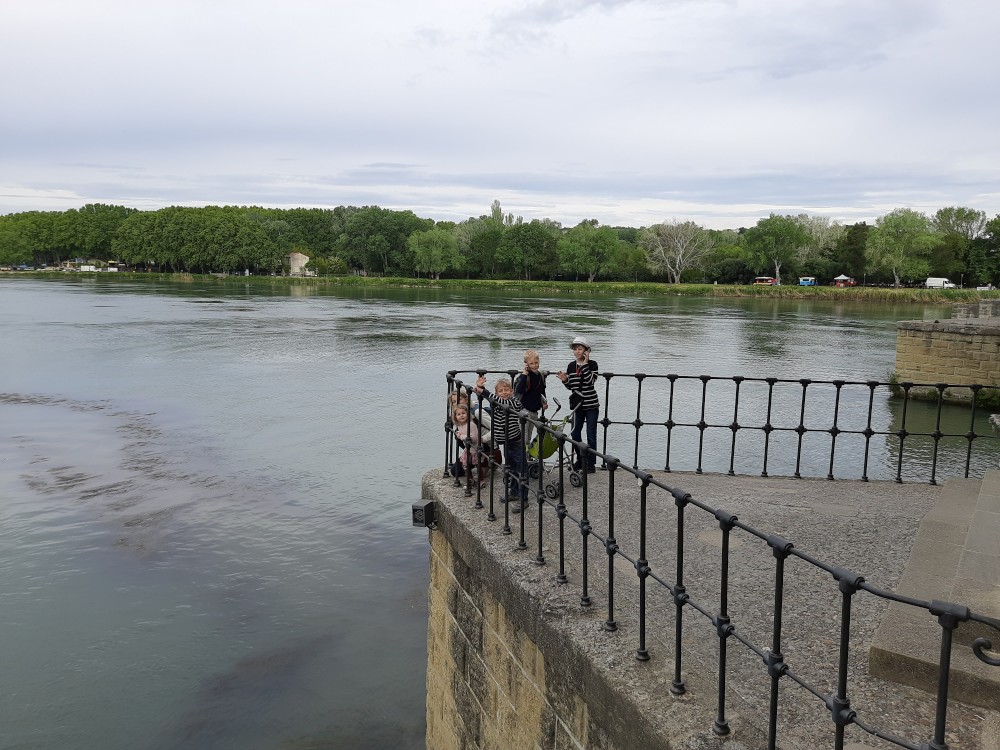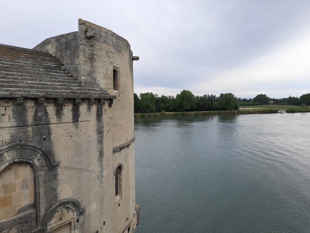 Opouštíme palác a máme hlad. Dáváme si kebab v bistru na Rue Favart. Jídlo jíme na lavičce na náměstí Place Nicolas Saboly. Pokračujeme procházkou uličkami Avignonu na sever, dostáváme se až k Rhoně. Jdeme okolo Rhony a zastavujeme na vyhlídkách na slavný místní most, který končí uprostřed řeky.