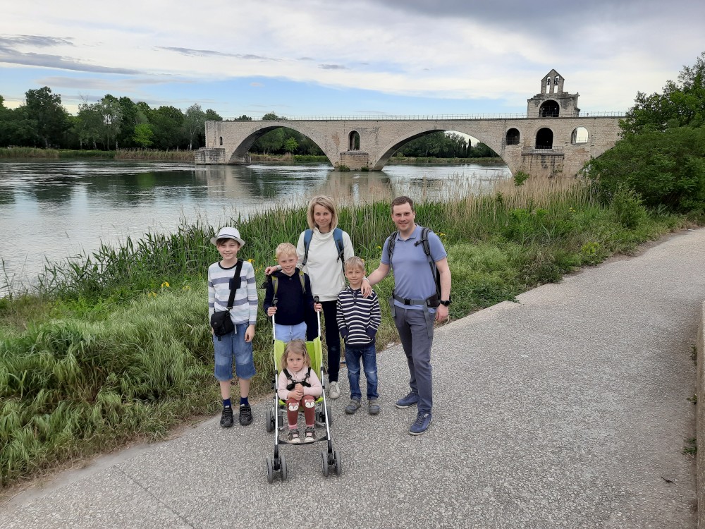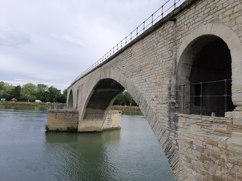 Dáváme si snídani, balíme a já postupně odnáším věci do auta. Opouštíme s posledními věcmi apartmán, nakládáme je auta. A pak jdeme nalehko na prohlídku avignonského mostu Le pont Saint-Bénézet. Procházíme kontrolou, odevzdáváme nožík, kupujeme si lístky, dostáváme audioprůvodce a jdeme na most. Nahlížíme do mostní kaple Saint-Bénézet a pokračujeme až na samotný konec mostu. Dále most nepokračuje, byl stržen velkou povodní v roce 1668 a již nikdy nebyl opraven. Dnes stojí již jen čtyři oblouky mostu.