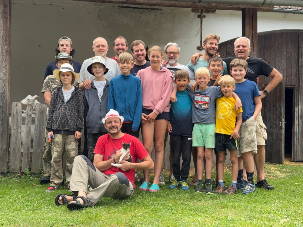 Po roce zase vyrážíme na Kozí farmu. Stejně jako loni beru Víťu, Jiříka, Martínka a Marečka. Také jsem v oboře naložil pivo. Jedeme ve čtvrtek 1.8. odpoledne, po fotbalovém soustředění Jiříka a Martínka. V podvečer přijíždíme na farmu. Už je tu Ježek s Karlem a Jindrou a Petr se Sebíkem.