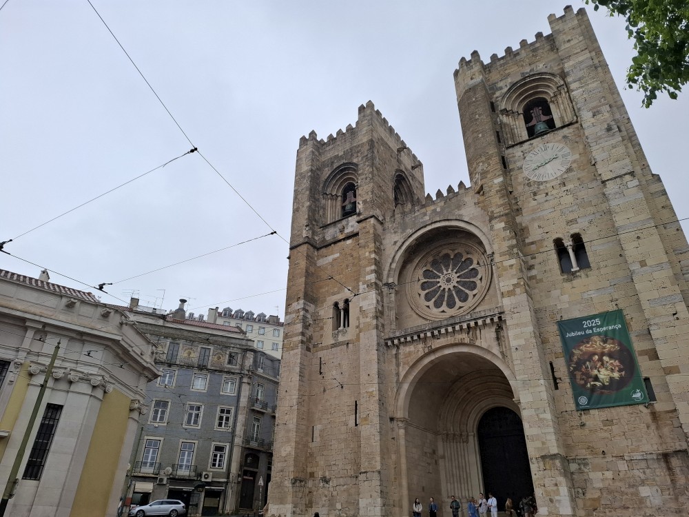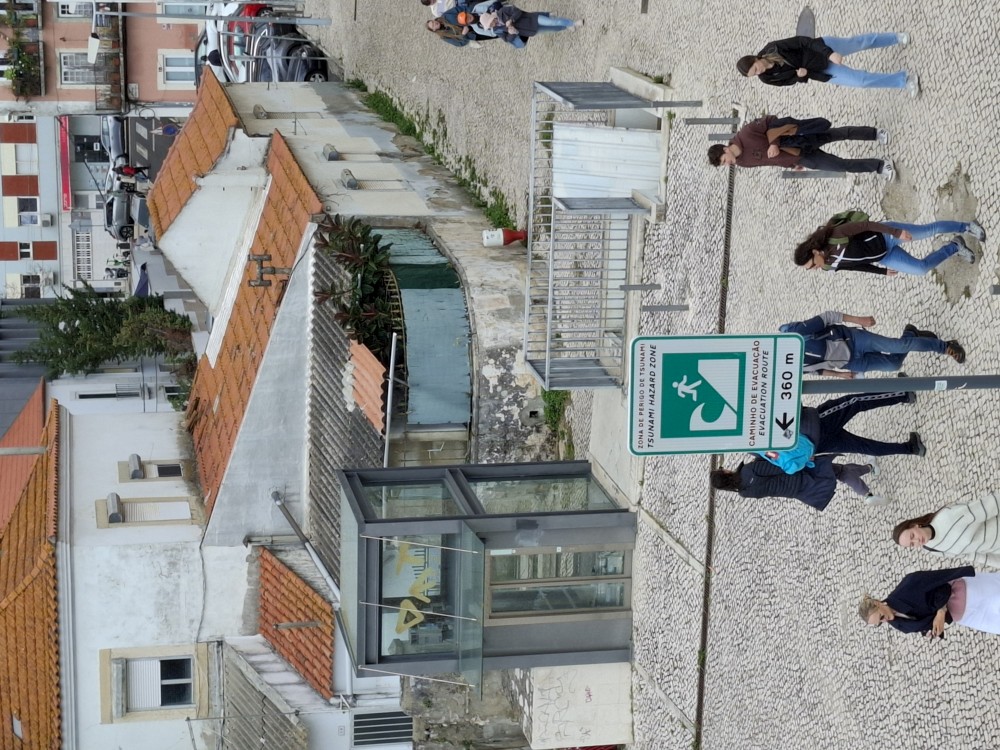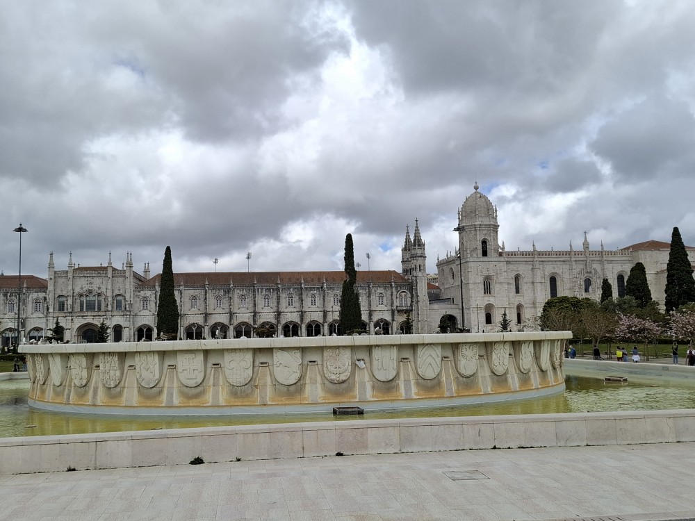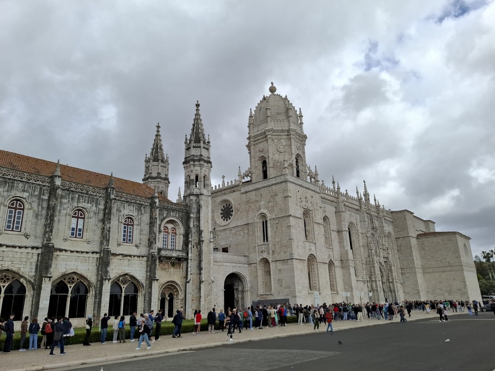 Od ní jdeme nadchodem přes silnici. Je tu cedule, kam běžet při tsunami. Dostáváme se ke klášteru Jeronýmů a stojíme ve frontě na vstup, vstupenky již máme koupené online. Fronta ubíhá celkem rychle, za chvíli jsme uvnitř. Klášter Jeronýmů (Mosteiro dos Jerónimos) je jedním z nejvelkolepějších a nejdůležitějších historických památek Portugalska a je fakt nádherný.