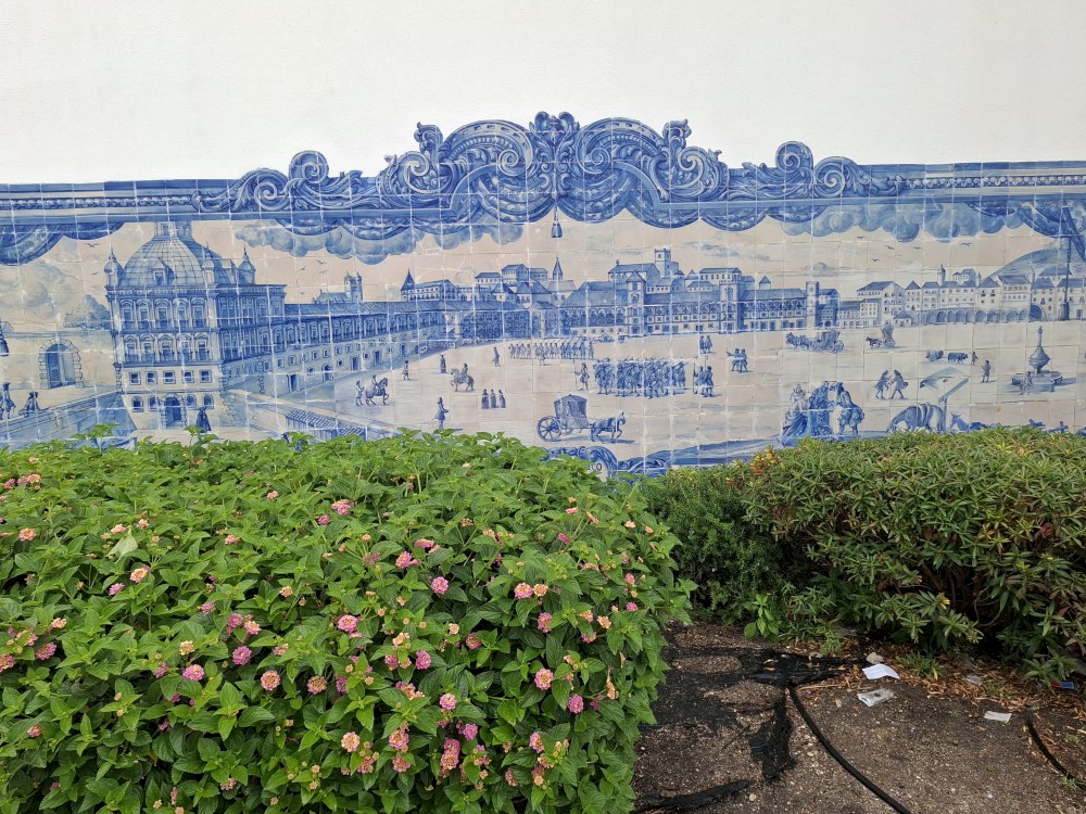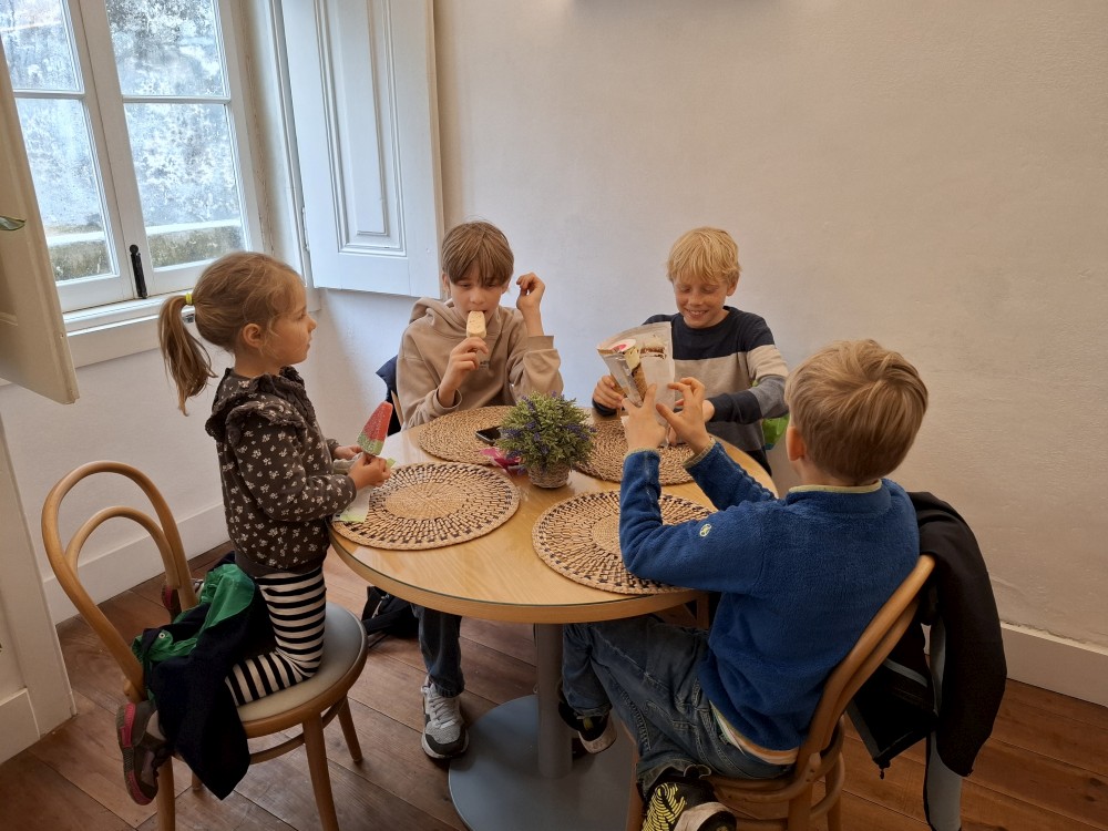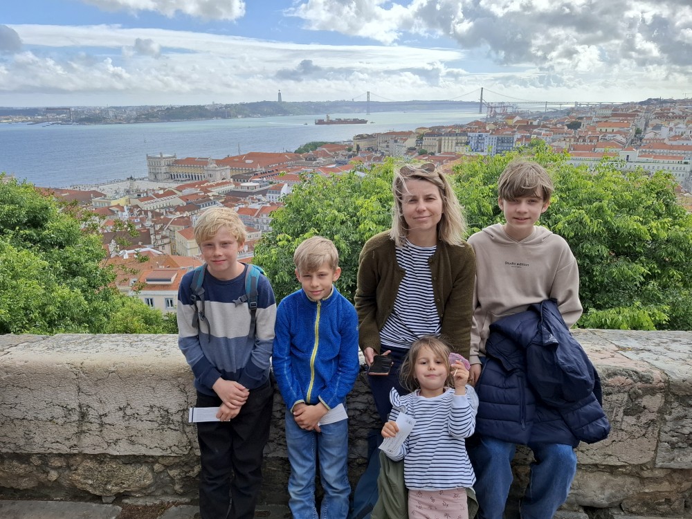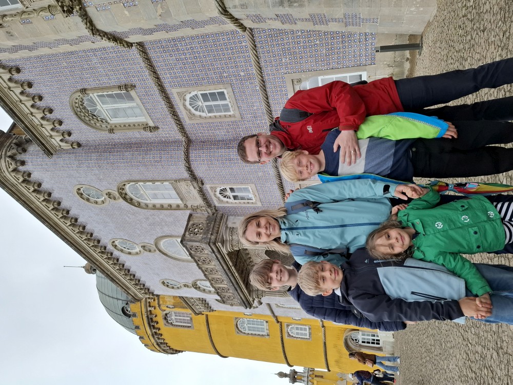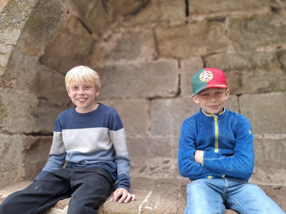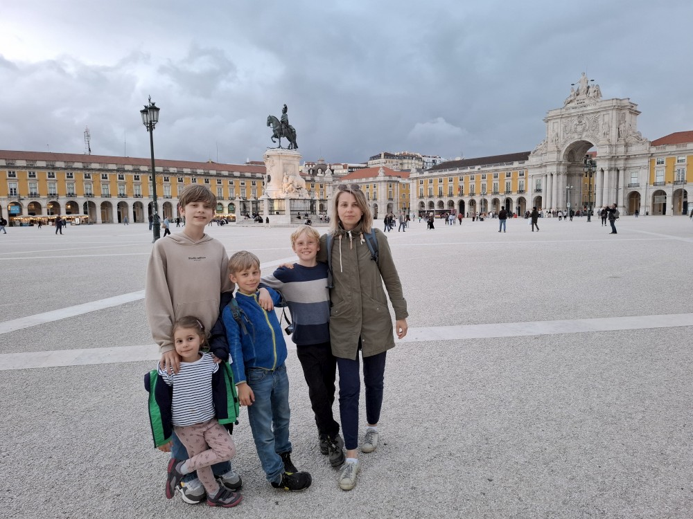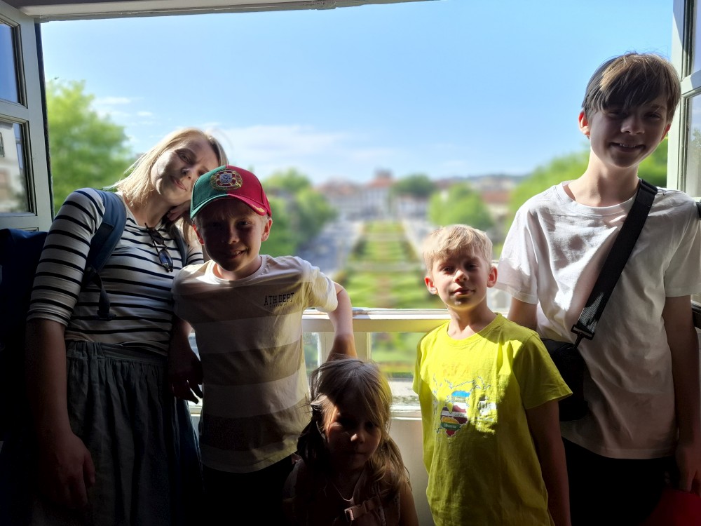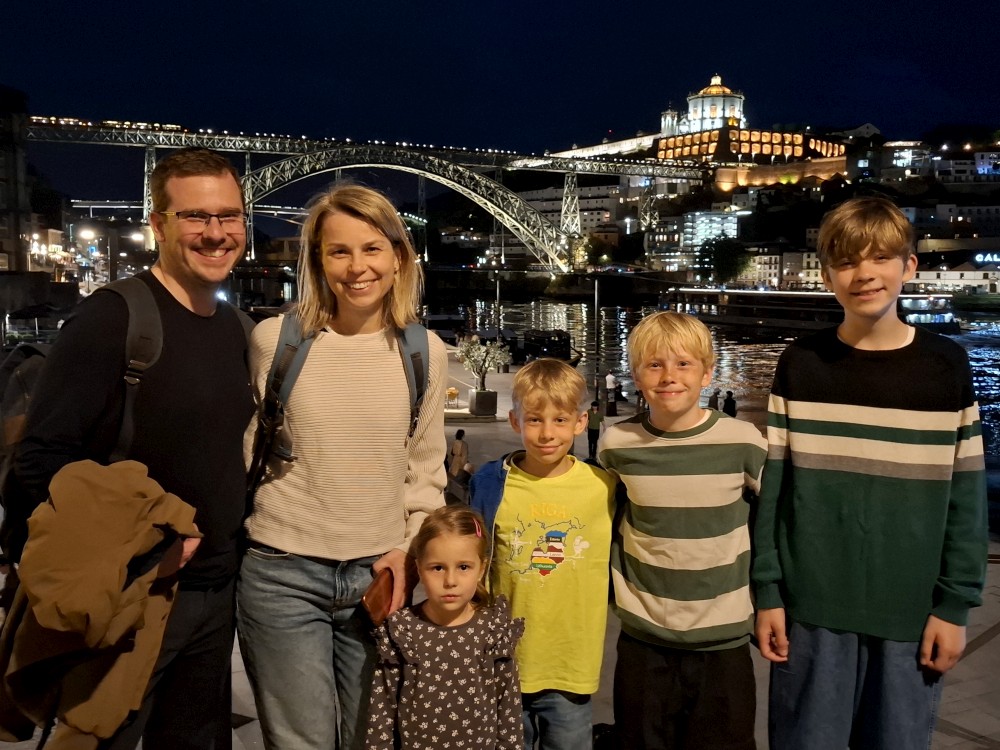 Ochutnáváme také portské víno. Kluci si dávají citronovou limonádu. Po obědě vyrážíme na procházku centrem. Zastavujeme v kostele s interiérem zdobeným Azulejos, dlaždičkami. Procházíme kolem městské věže a jdeme na zmzlinu. U katedrály Panny Marie kupujeme v suvenýrovém obchodě všem klukům portugalské kšiltovky. Dokončujeme okruh, sedáme do auta a pokračujeme do Guimarães.