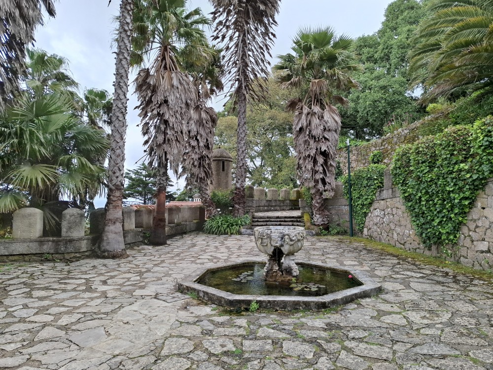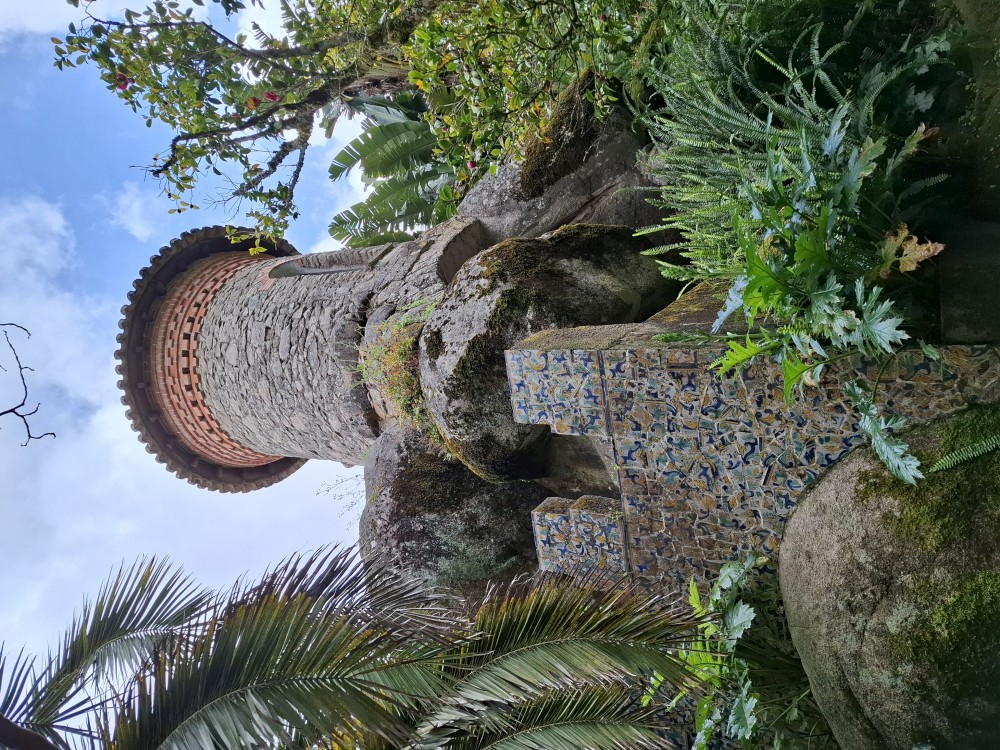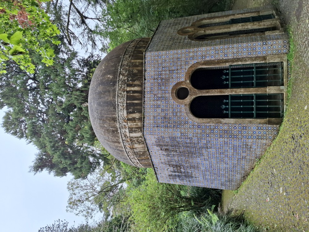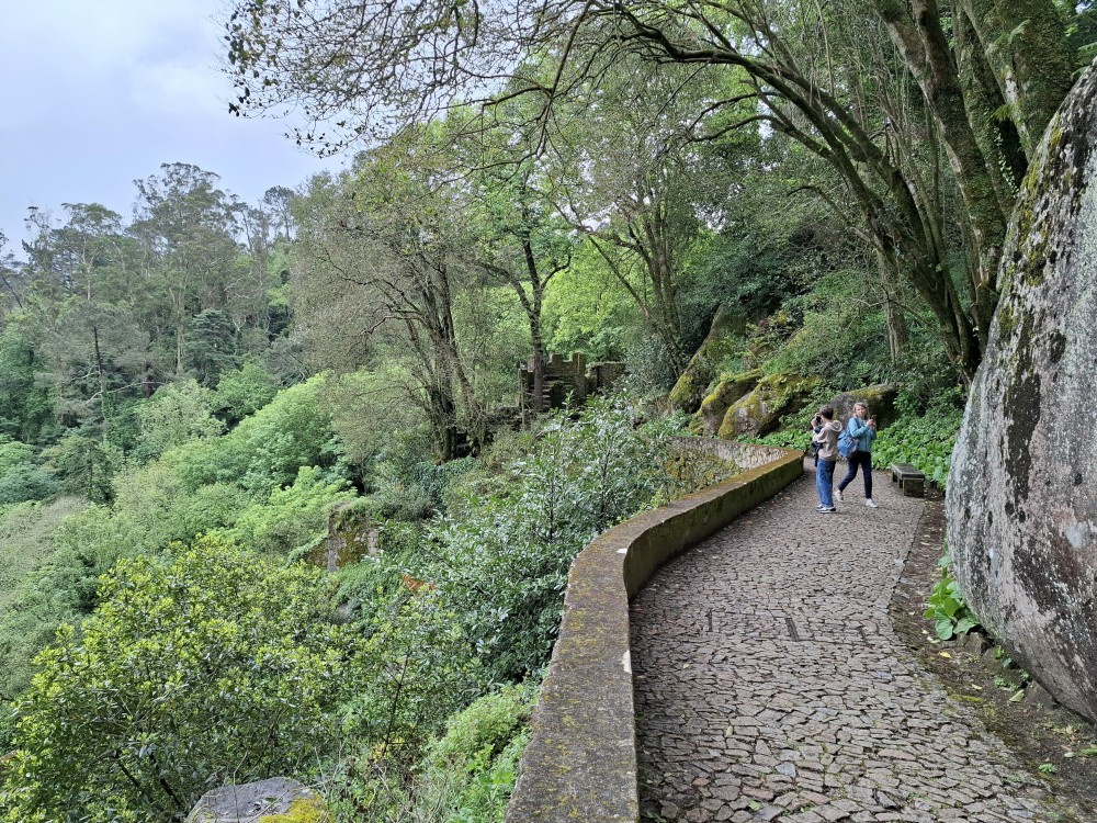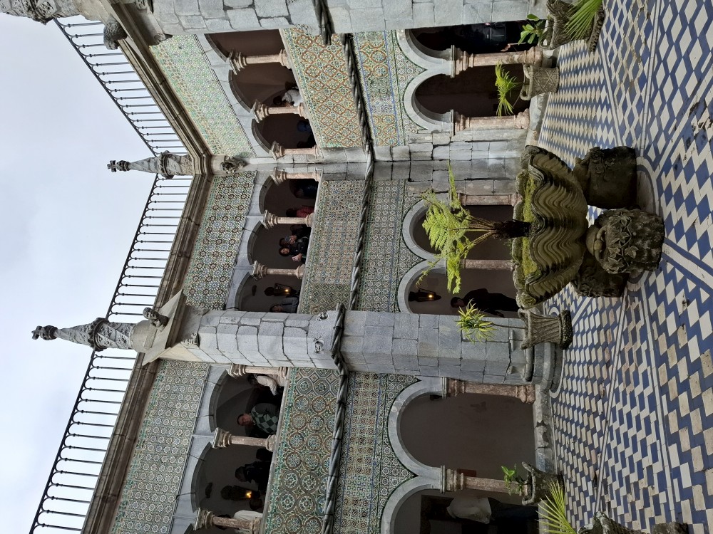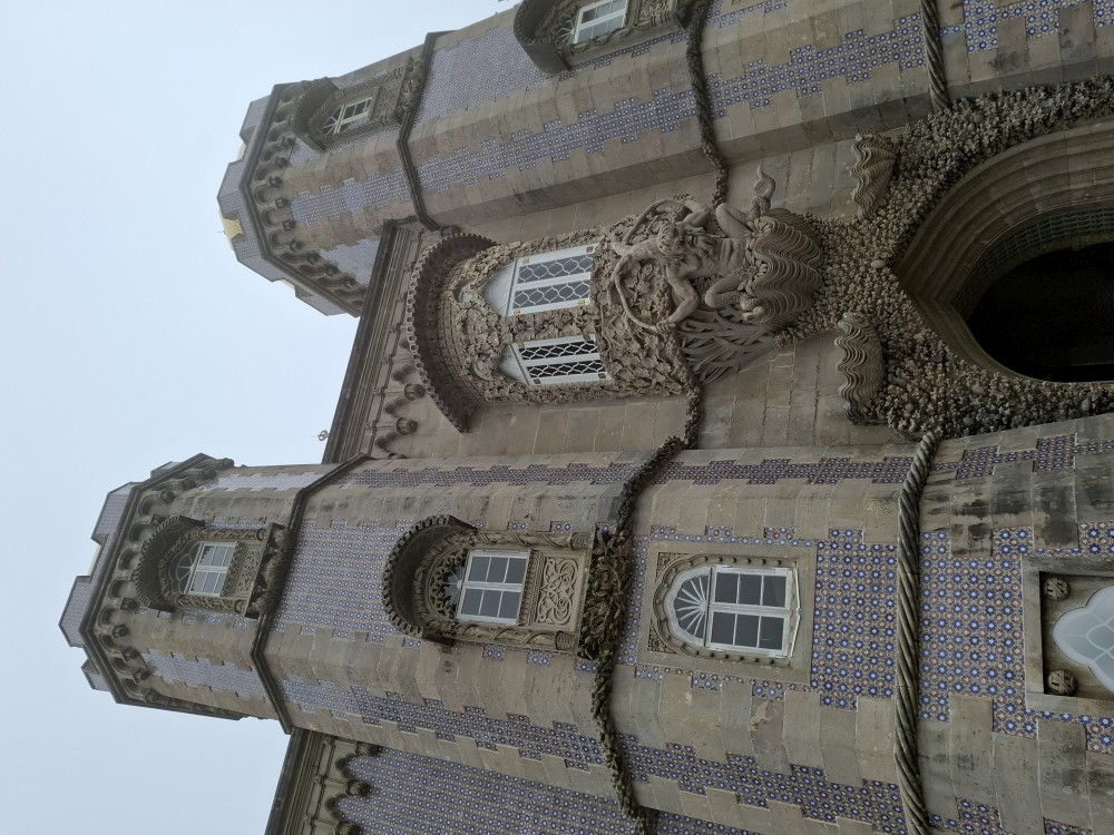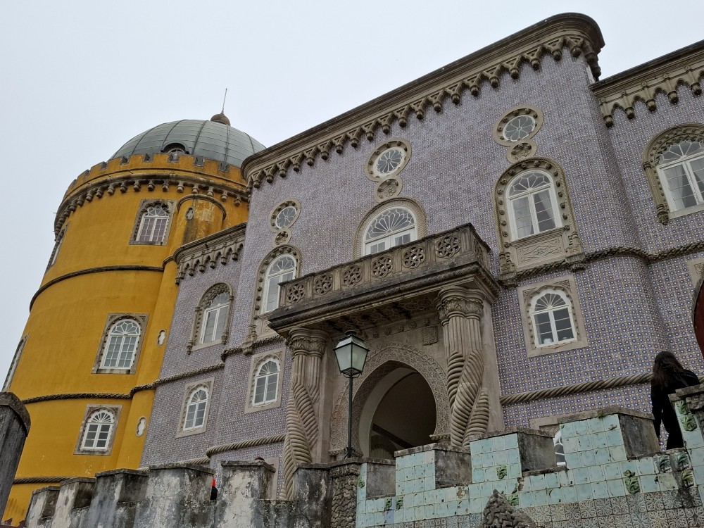 Do paláce nepůjdeme, jdeme se podívat jen do jeho zahrad a také do kavárny na kávu a nanuky. Pak vyrážíme zase vzhůru do prudkého kopce k paláci Pena. Jdeme po strmých schodech krásnou zahradou až k jednomu ze vstupů do areálu paláce Pena. Areálem pak stoupáme až k paláci. Je tu opravdu hodně lidí. Palác je v mlžném oparu mraků.