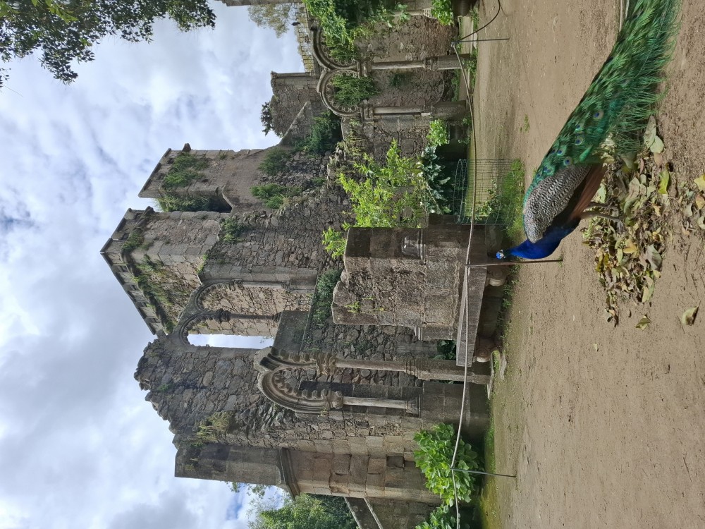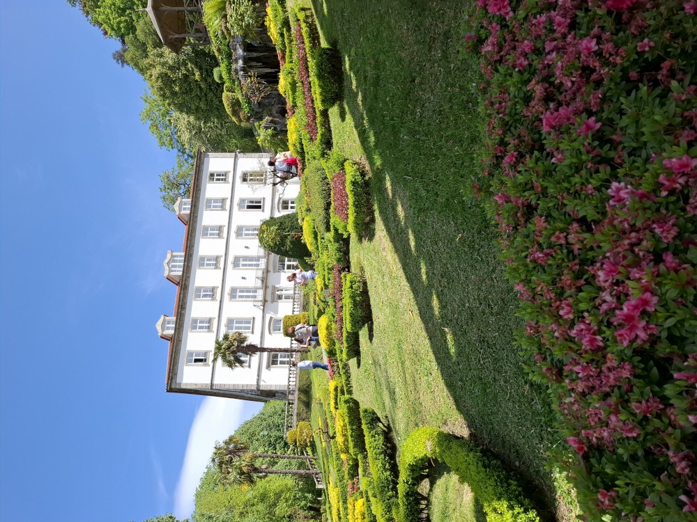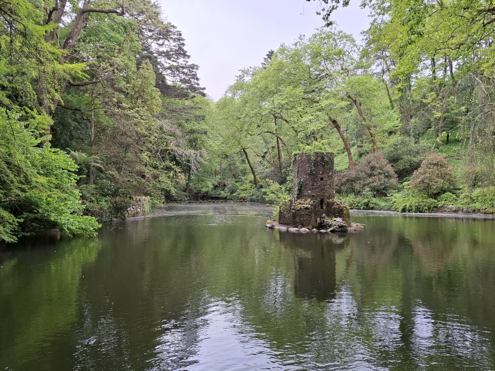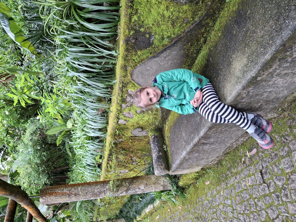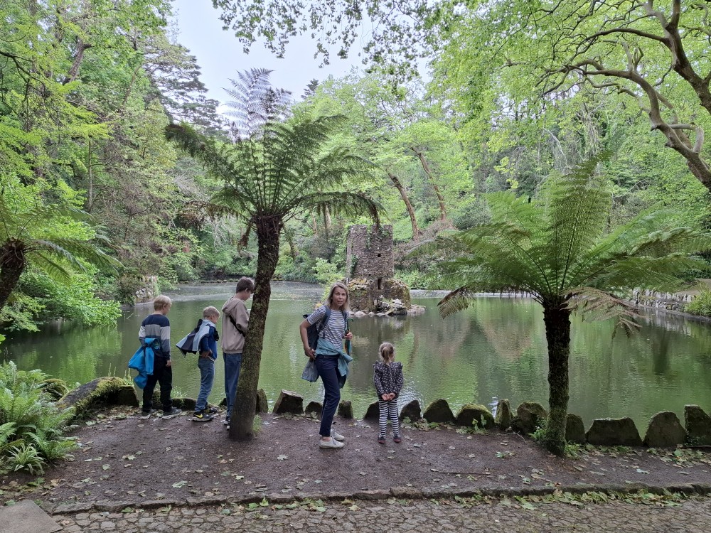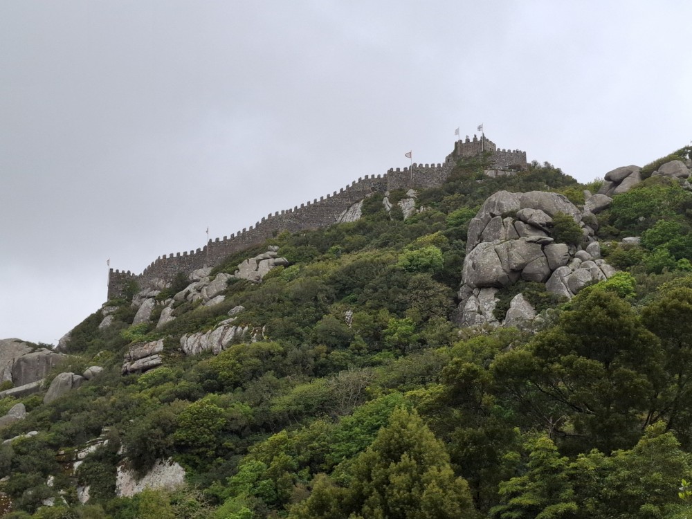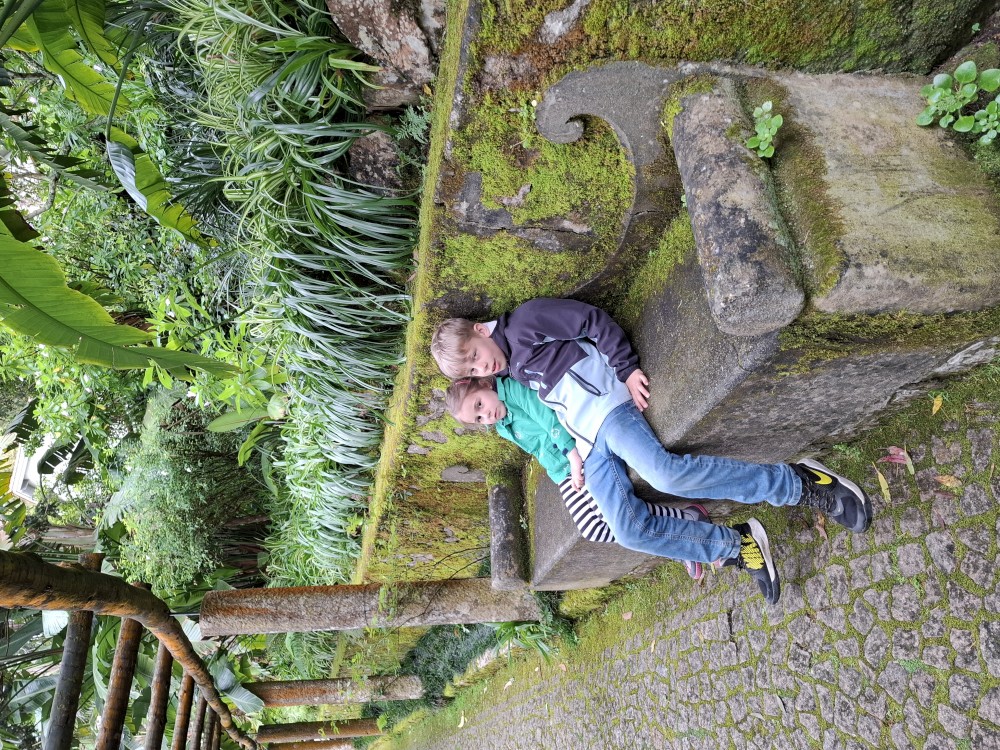 Do paláce nepůjdeme, jdeme se podívat jen do jeho zahrad a také do kavárny na kávu a nanuky. Pak vyrážíme zase vzhůru do prudkého kopce k paláci Pena. Jdeme po strmých schodech krásnou zahradou až k jednomu ze vstupů do areálu paláce Pena. Areálem pak stoupáme až k paláci. Je tu opravdu hodně lidí. Palác je v mlžném oparu mraků.