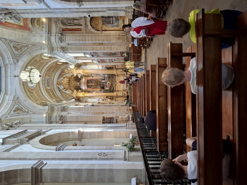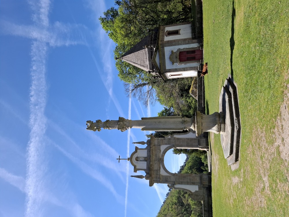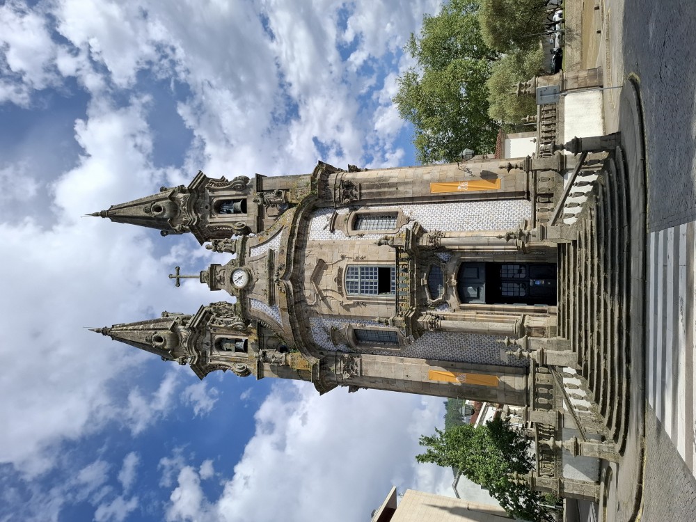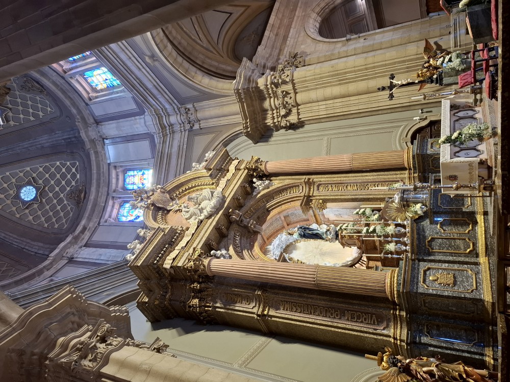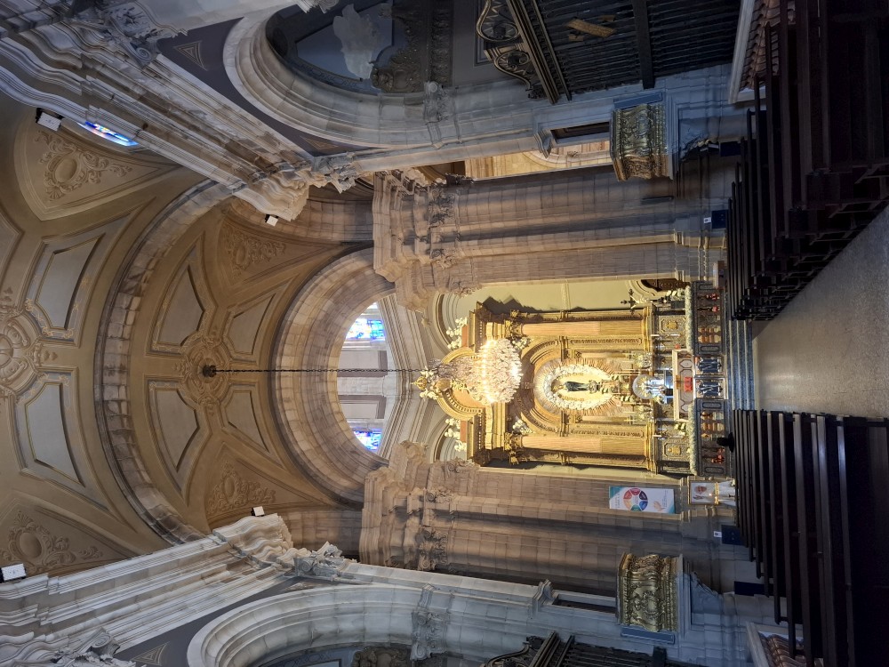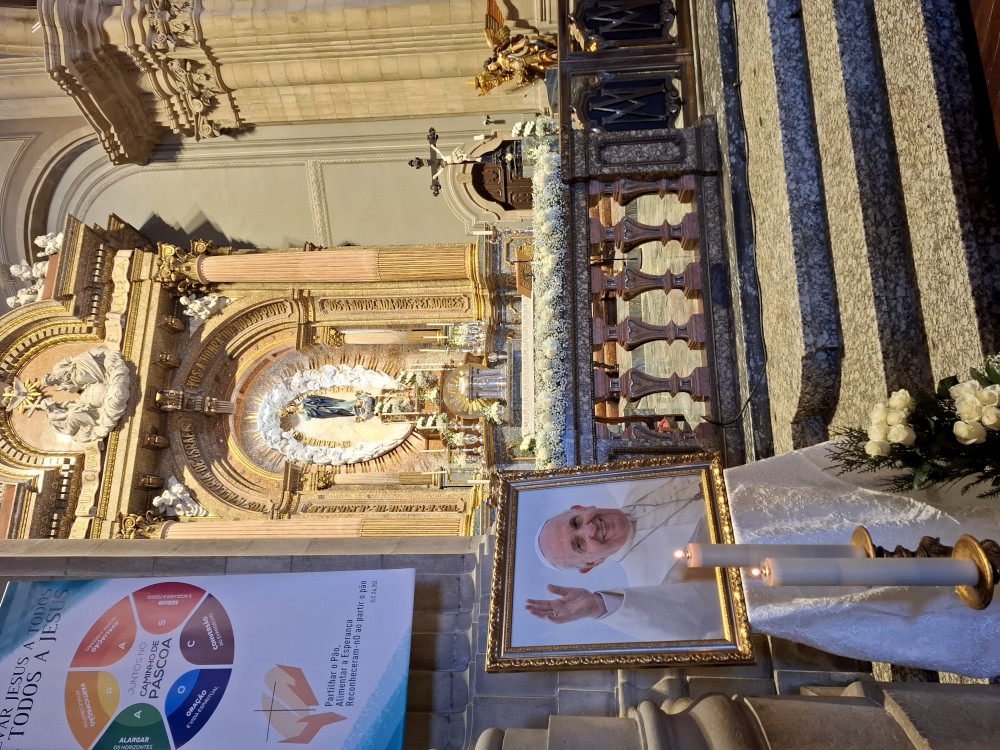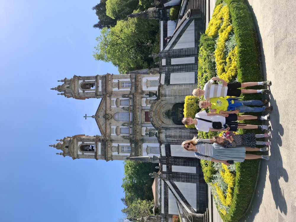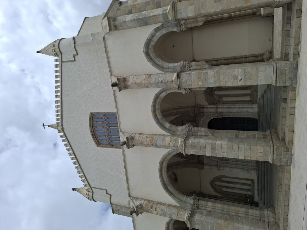 Chvíli sedíme v kostele, pak se jdeme rozhlédnout na přilehlou vyhlídku. Pak klesáme po schodech zpět k autu. Přejíždíme na nedaleké druhé poutní místo Sanctuary of Our Lady of Sameiro. Zde je úplně prázdno. Je to znovu impozantní stavba, i když trochu ve stínu slavnějšího Bom Jesus. Vlaje zde vatikánská vlajka na půl žerdi pro připomínku nedávno zeslulého papeže Františka.
