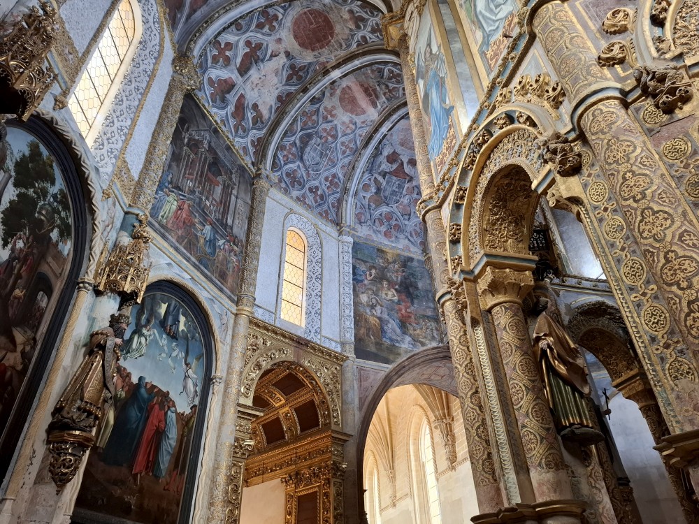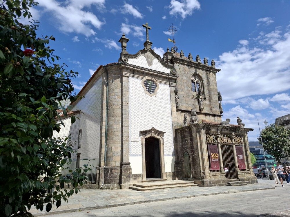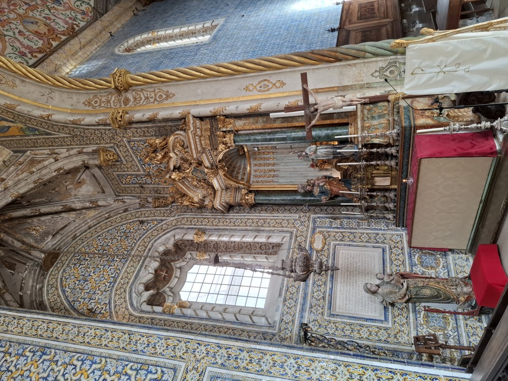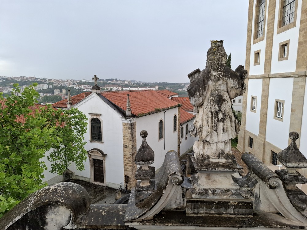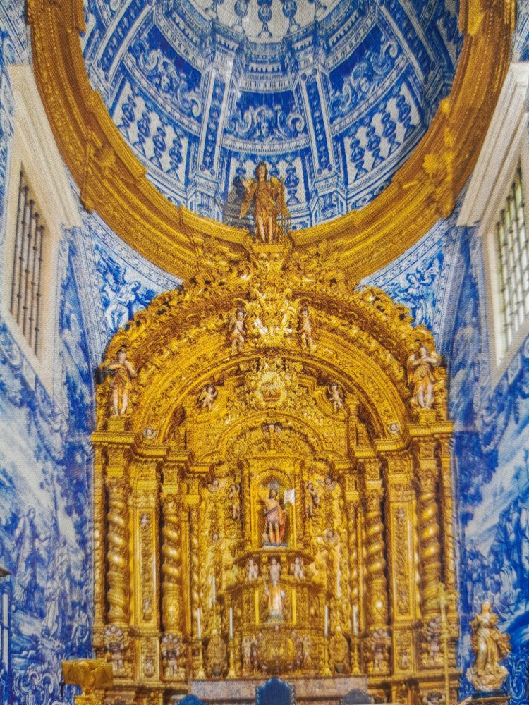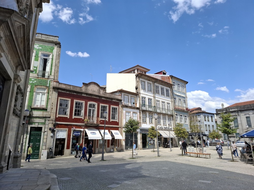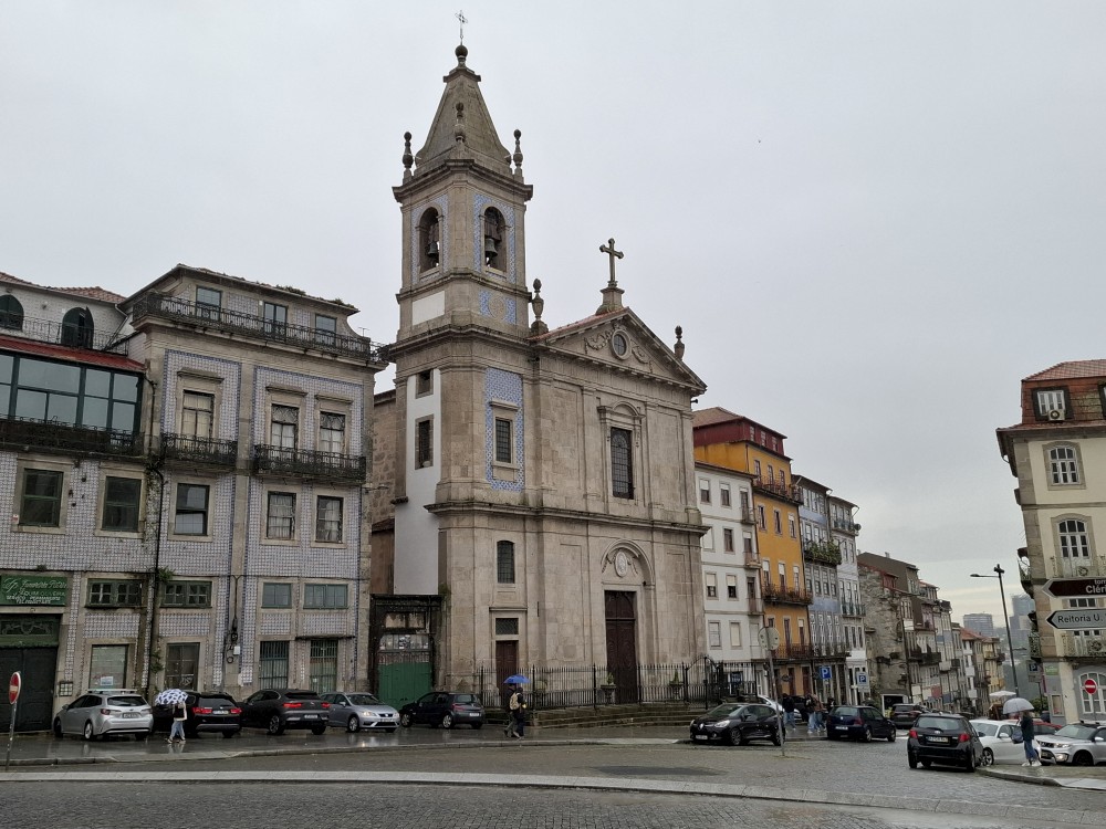 Pokračujeme kolem zahrady do centra na náměstí s kostelem Igreja de Nossa Senhora da Oliveira. Je tu hodně lidí sedících v restauracích. Pak se proplétáme uličkami starého města až ke klášteru Convento e Igreja de São Francisco. Ten je zvenku velmi malebný a je tomu tak i uvnitř. Tady za to drobný poplatek stál. Jdeme se podívat i do patra na varhany a také do zrcadlové zlaté místnosti.