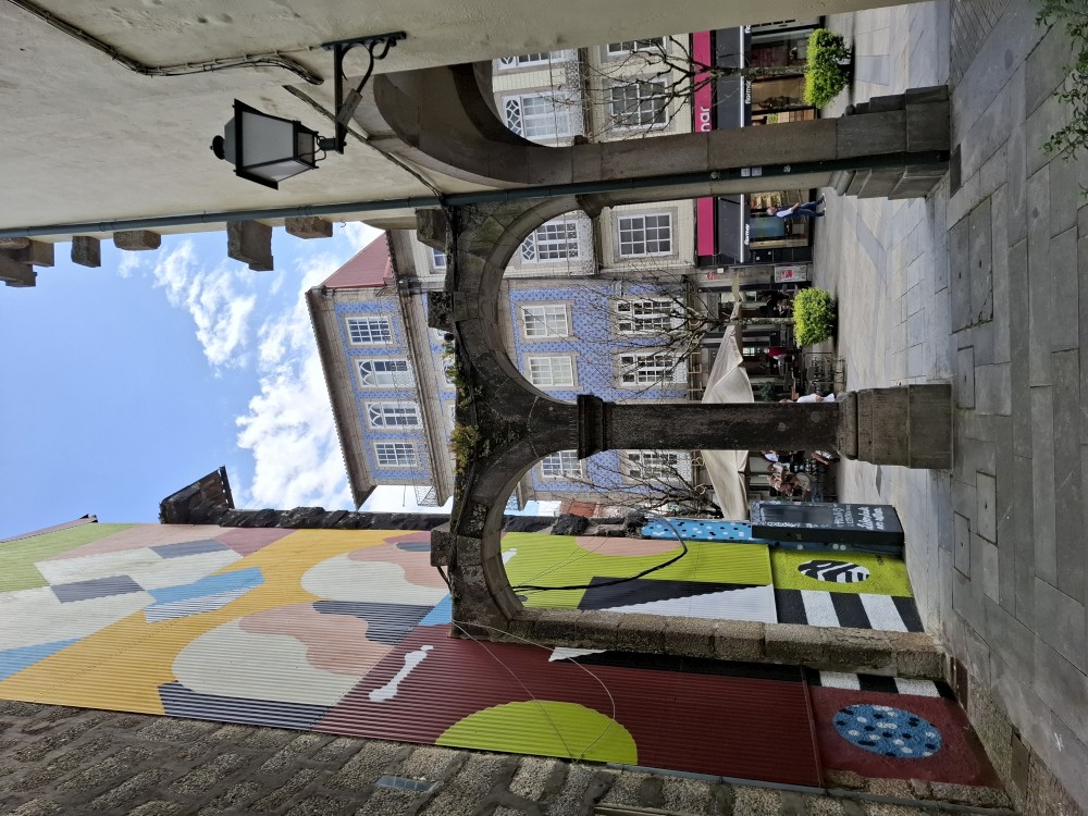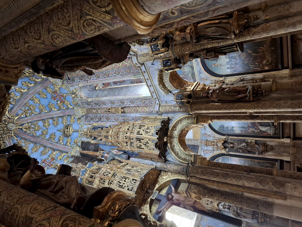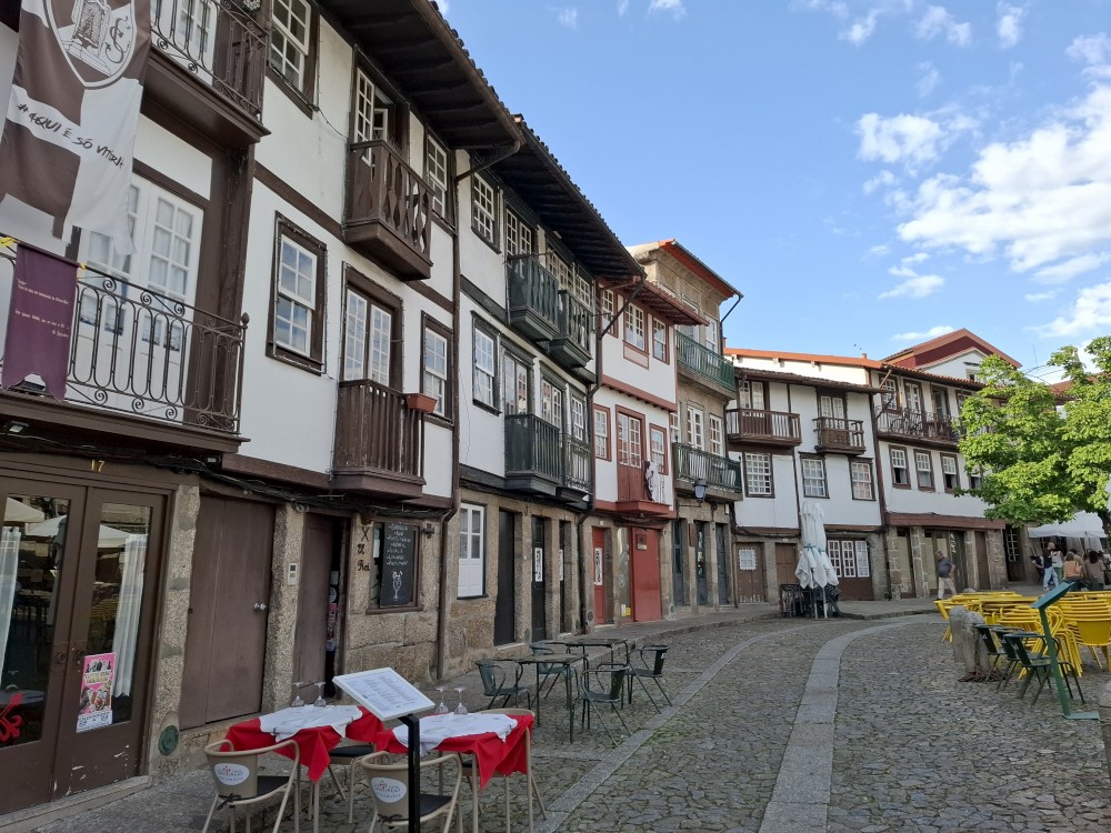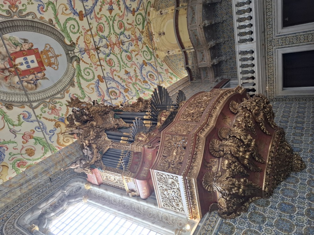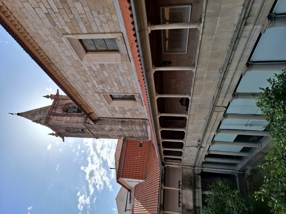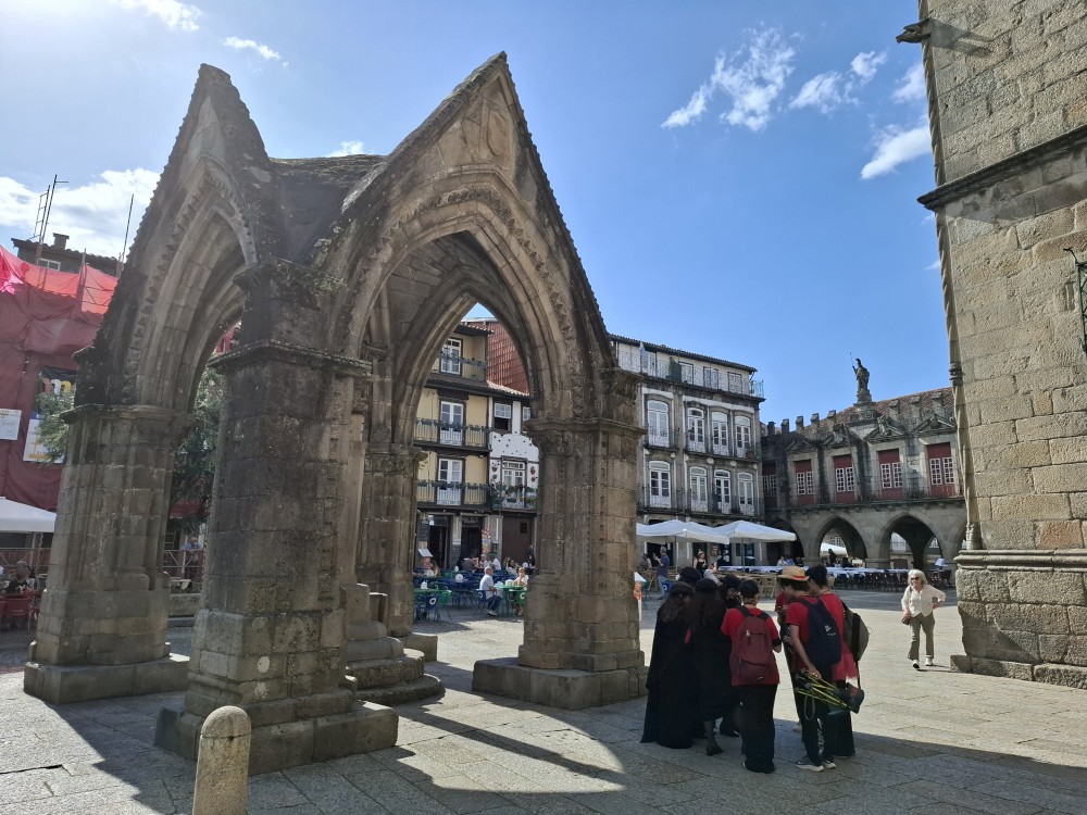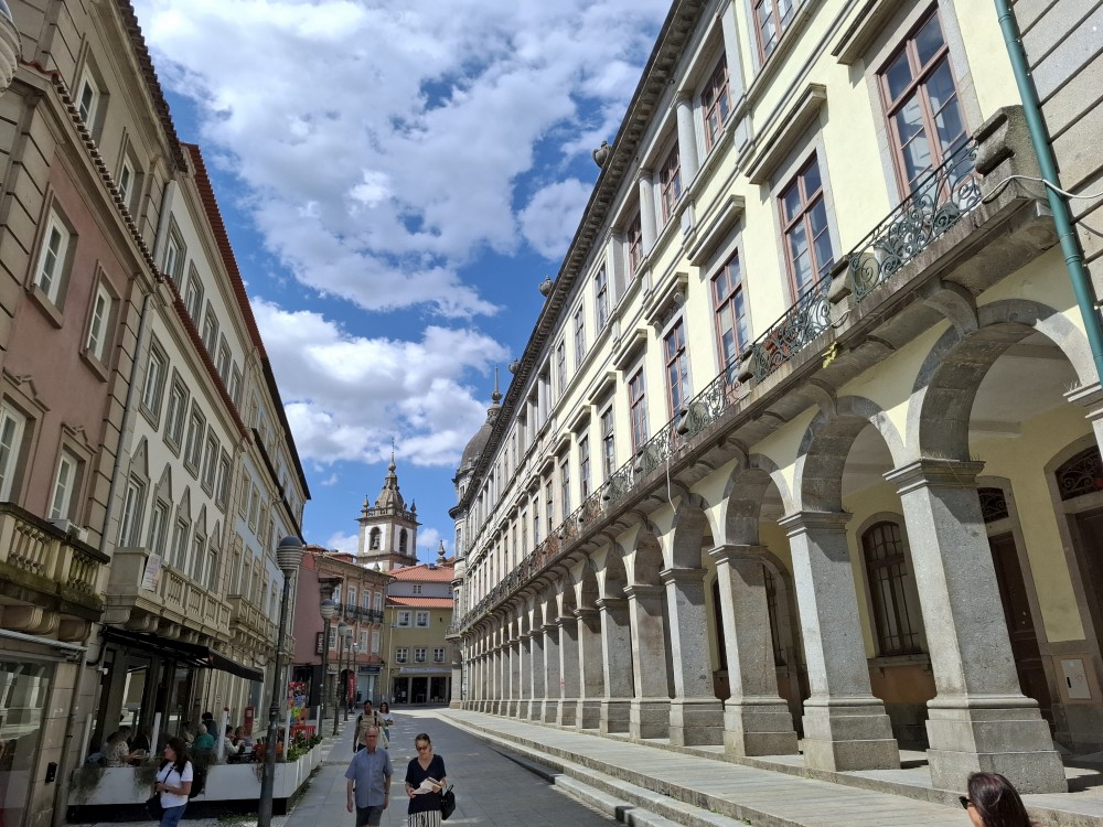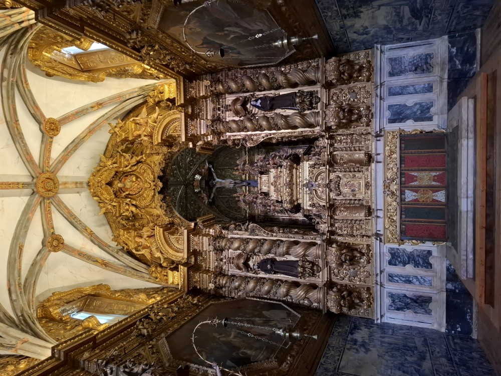 Pokračujeme kolem zahrady do centra na náměstí s kostelem Igreja de Nossa Senhora da Oliveira. Je tu hodně lidí sedících v restauracích. Pak se proplétáme uličkami starého města až ke klášteru Convento e Igreja de São Francisco. Ten je zvenku velmi malebný a je tomu tak i uvnitř. Tady za to drobný poplatek stál. Jdeme se podívat i do patra na varhany a také do zrcadlové zlaté místnosti.