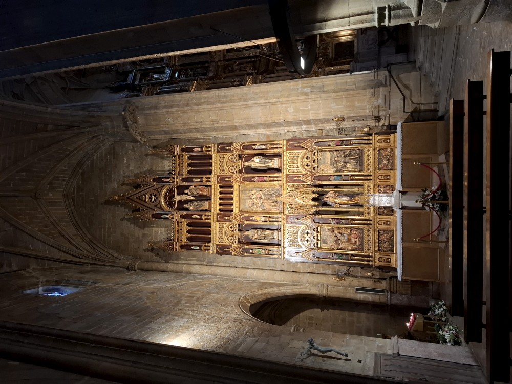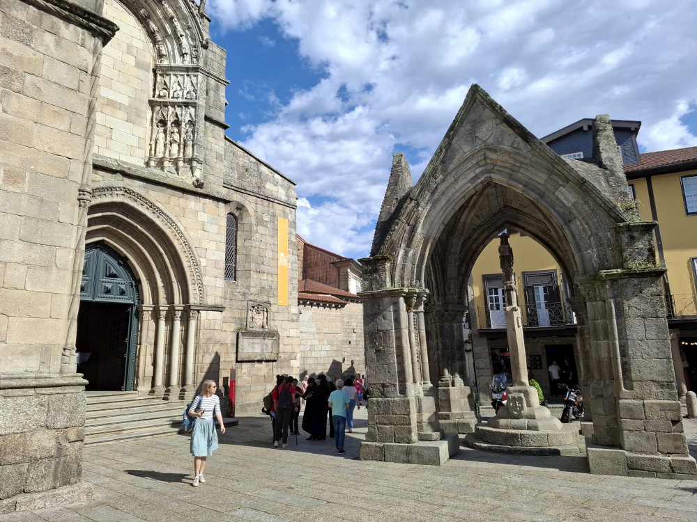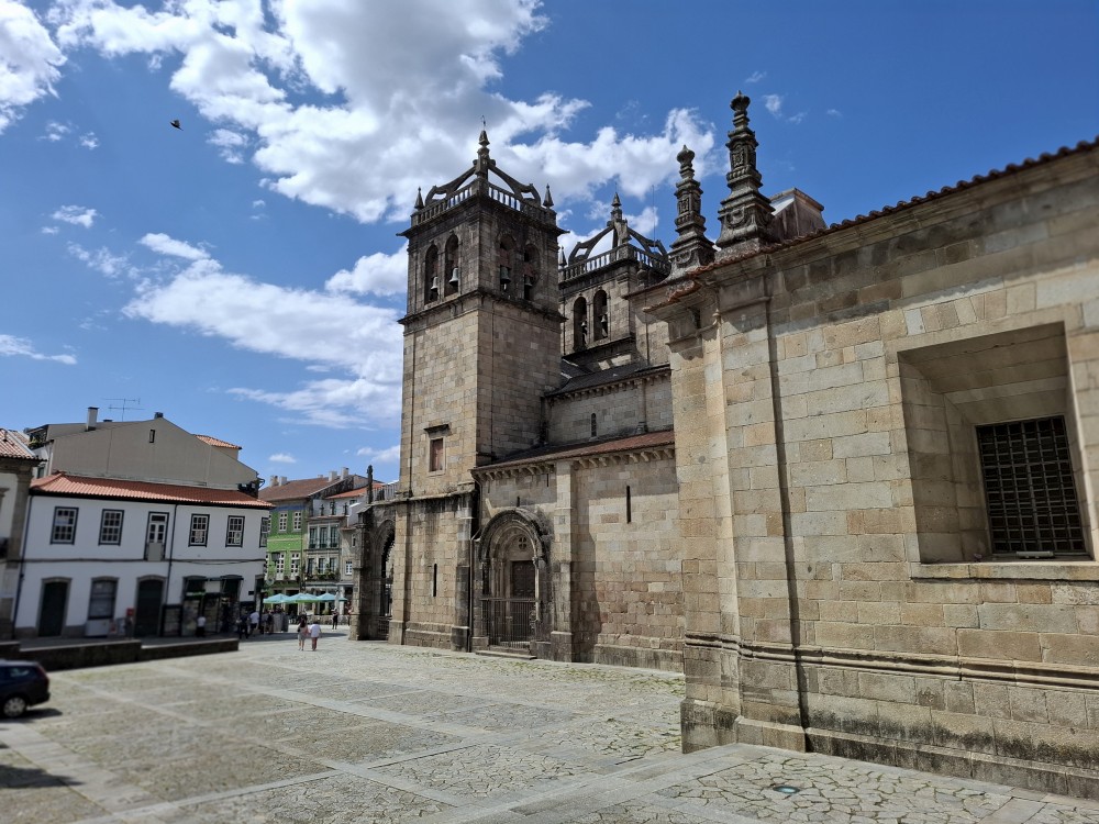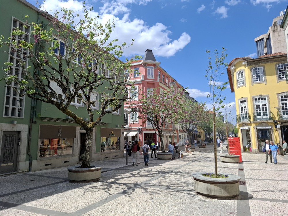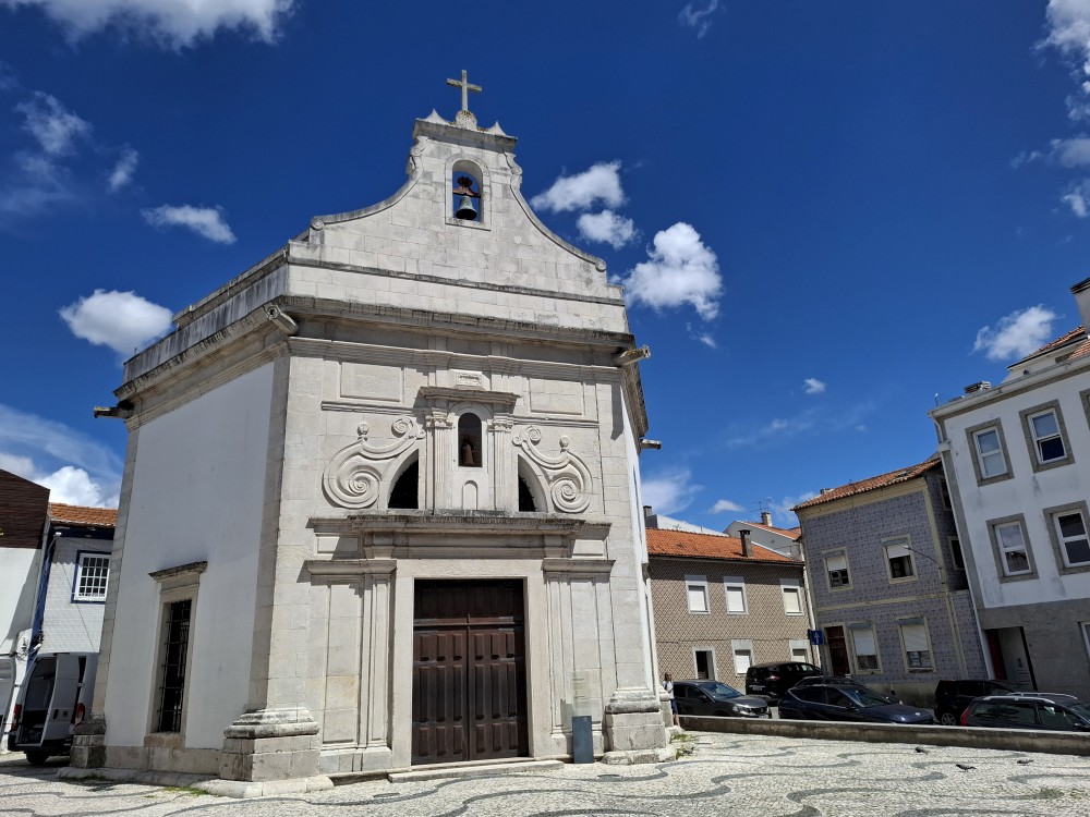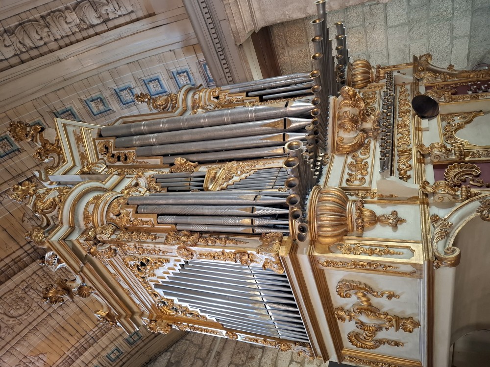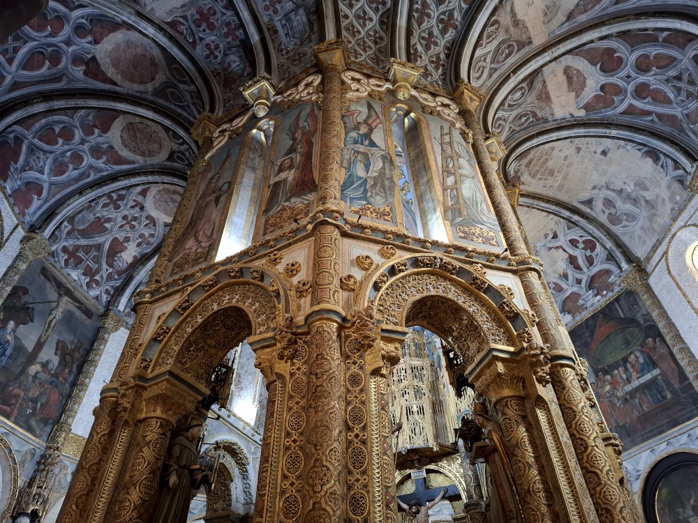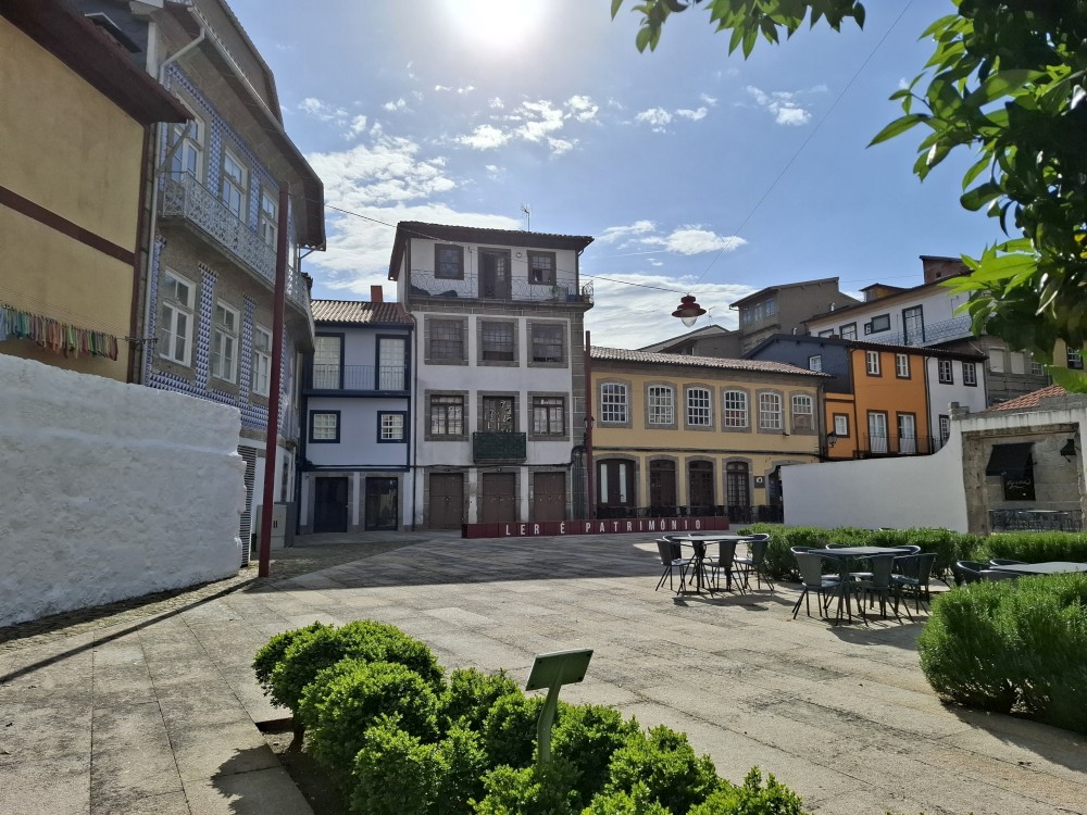 Pokračujeme kolem zahrady do centra na náměstí s kostelem Igreja de Nossa Senhora da Oliveira. Je tu hodně lidí sedících v restauracích. Pak se proplétáme uličkami starého města až ke klášteru Convento e Igreja de São Francisco. Ten je zvenku velmi malebný a je tomu tak i uvnitř. Tady za to drobný poplatek stál. Jdeme se podívat i do patra na varhany a také do zrcadlové zlaté místnosti.