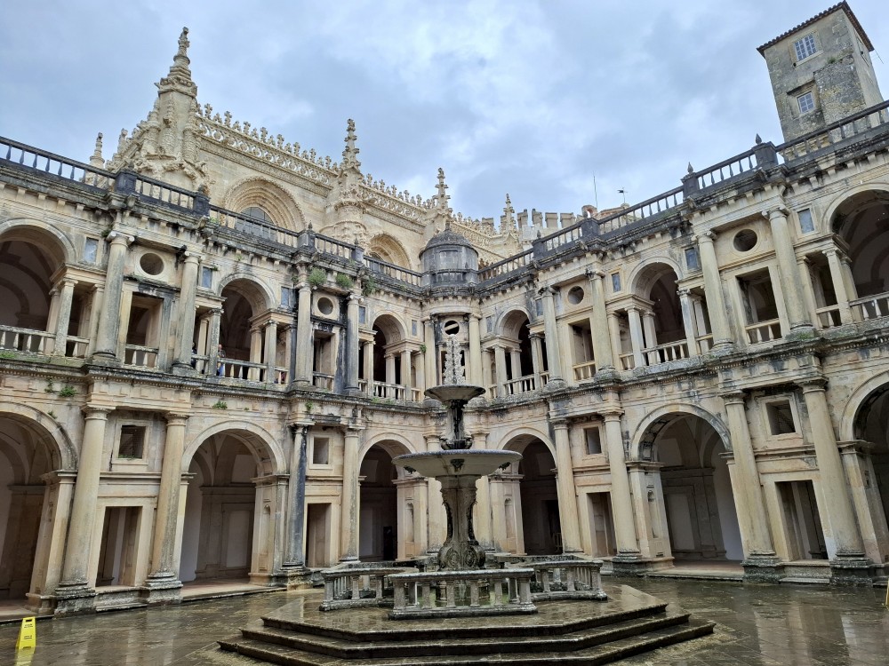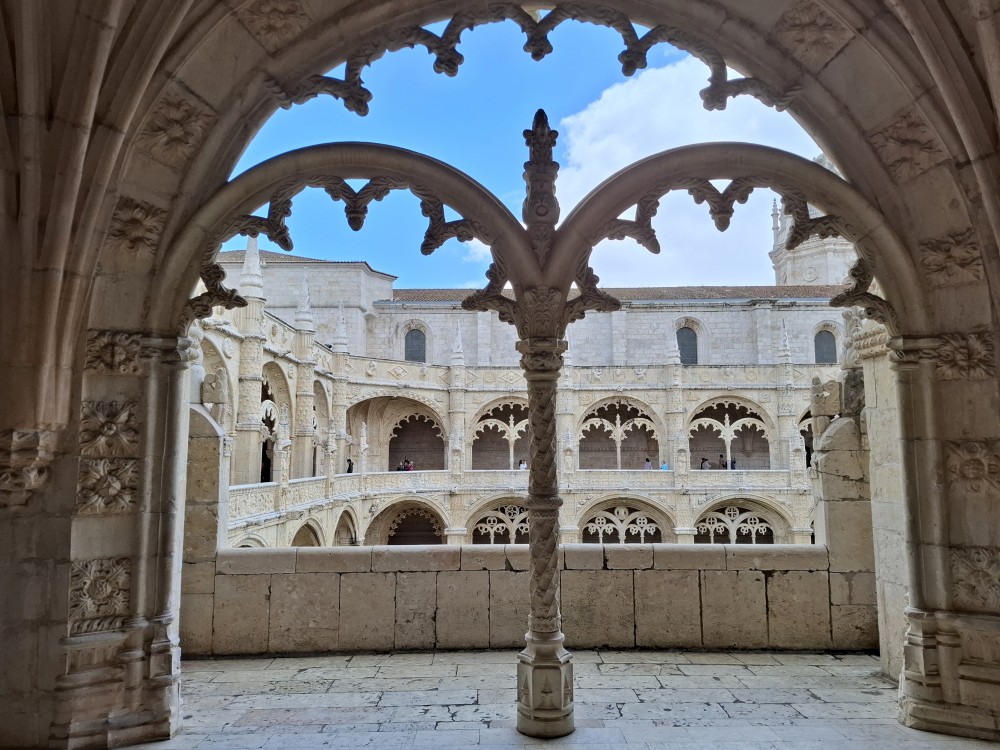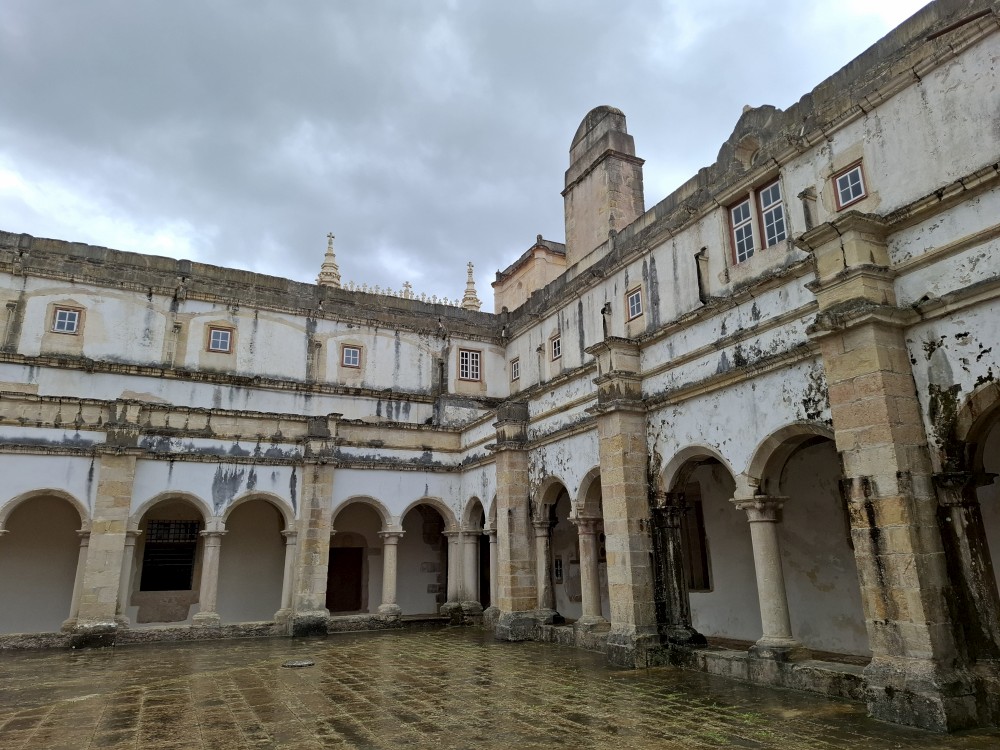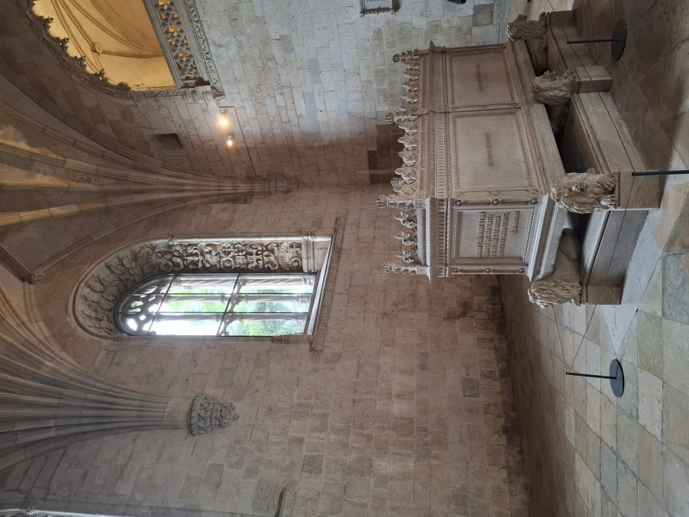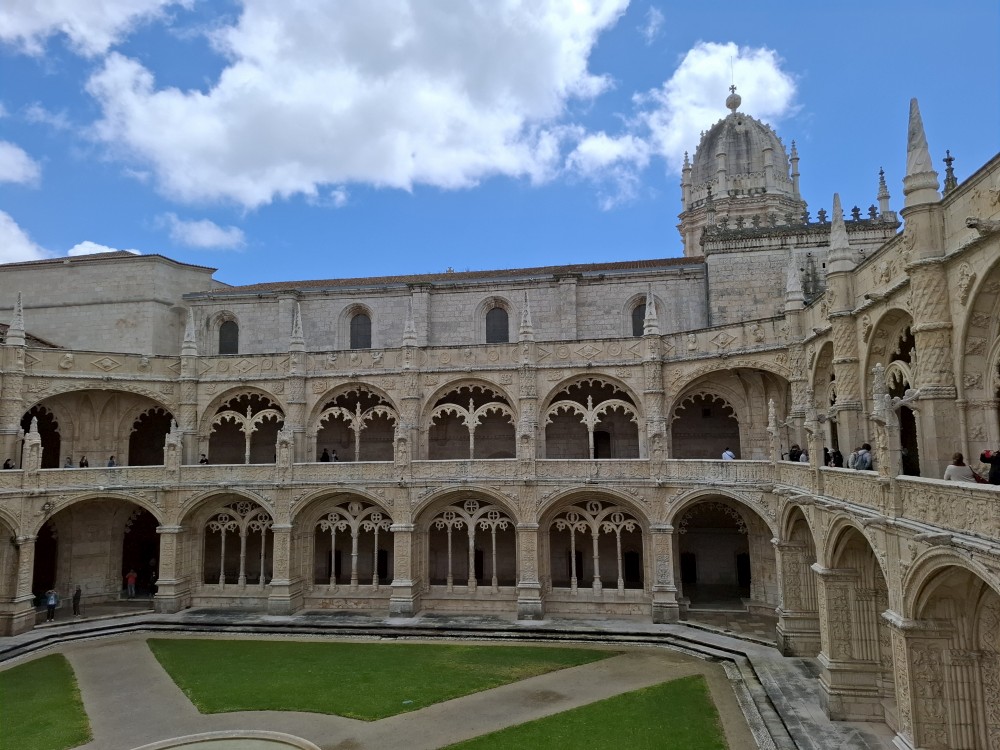 Dostáváme se na klášterní nádvoří, dvoupatrový arkádový prostor se zdobenými oblouky – jedna z nejkrásnějších manuelských staveb v zemi. Jdeme ven z kláštera. Nemůžeme se jít podívat do kaple s hrobem Vasco da Gammy. Není to součástí prohlídky kláštera. Sem je vstup zdarma, ale je zde hrozně dlouhá fronta. Čekat nebudeme. V nedalekém parku si dáváme svačinku, sedáme do auta a jedeme se ubytovat.