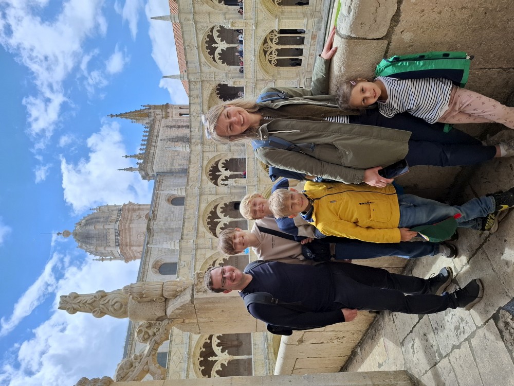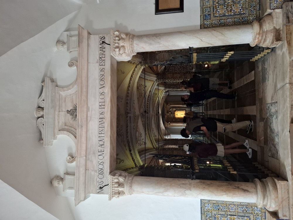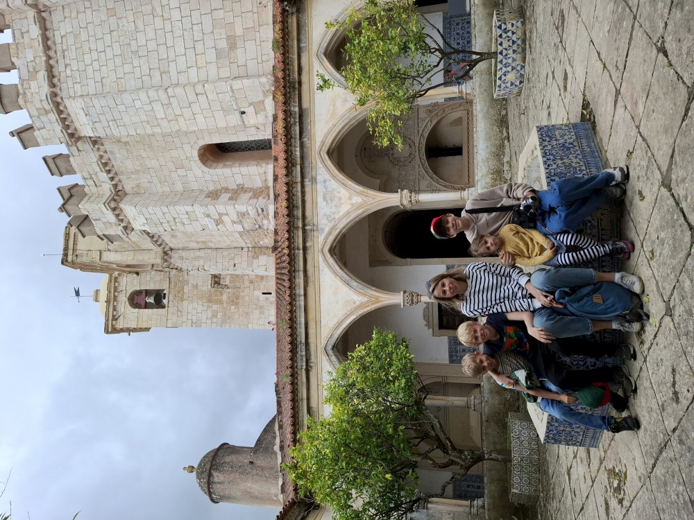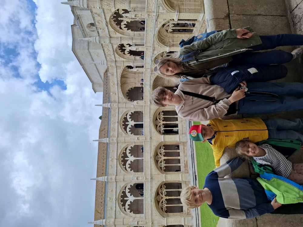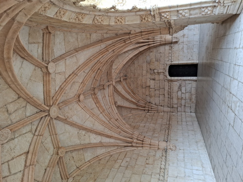 Dostáváme se na klášterní nádvoří, dvoupatrový arkádový prostor se zdobenými oblouky – jedna z nejkrásnějších manuelských staveb v zemi. Jdeme ven z kláštera. Nemůžeme se jít podívat do kaple s hrobem Vasco da Gammy. Není to součástí prohlídky kláštera. Sem je vstup zdarma, ale je zde hrozně dlouhá fronta. Čekat nebudeme. V nedalekém parku si dáváme svačinku, sedáme do auta a jedeme se ubytovat.