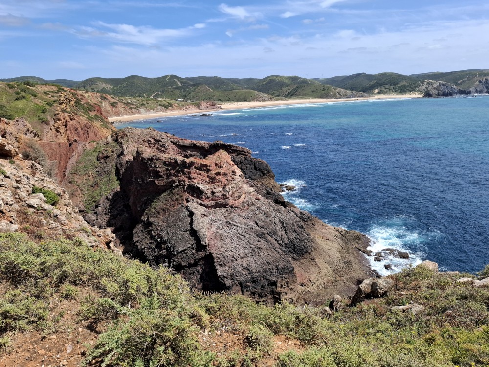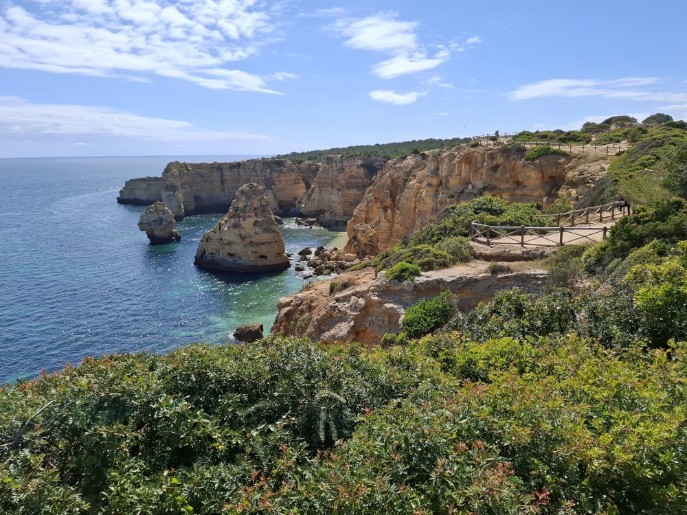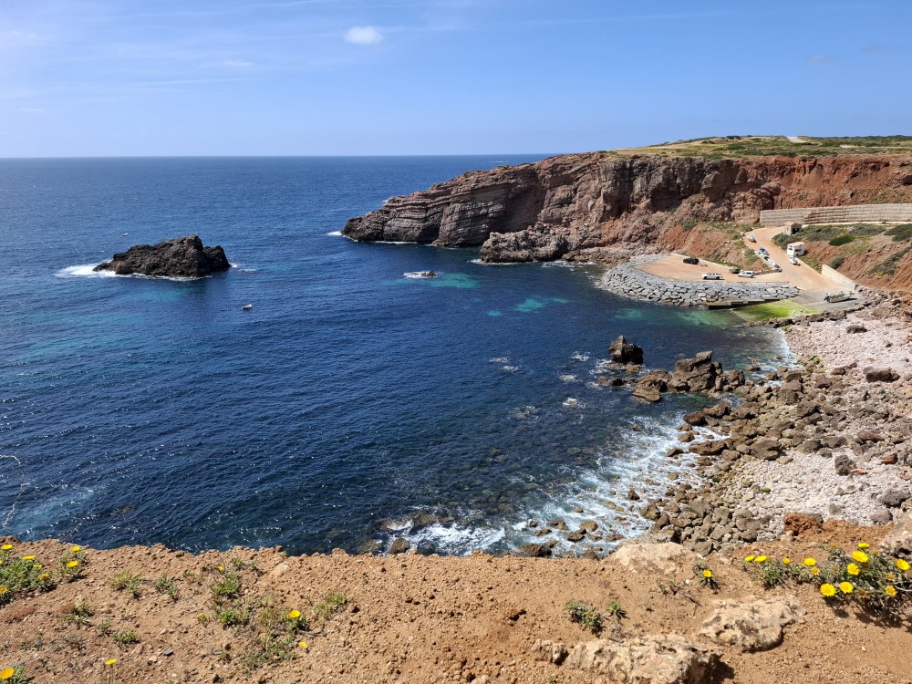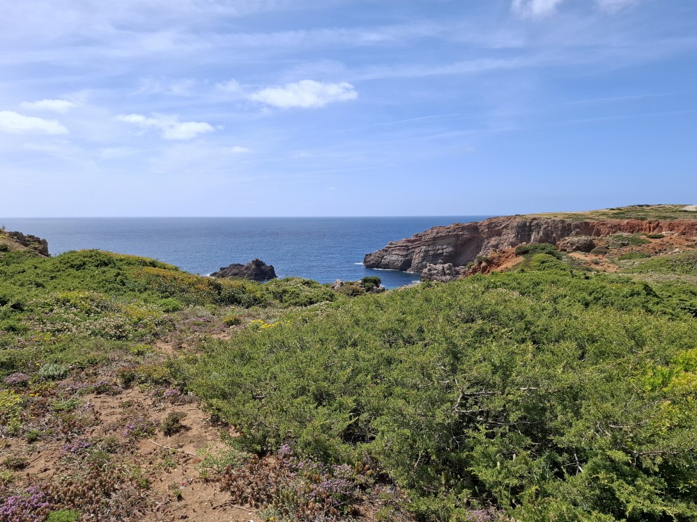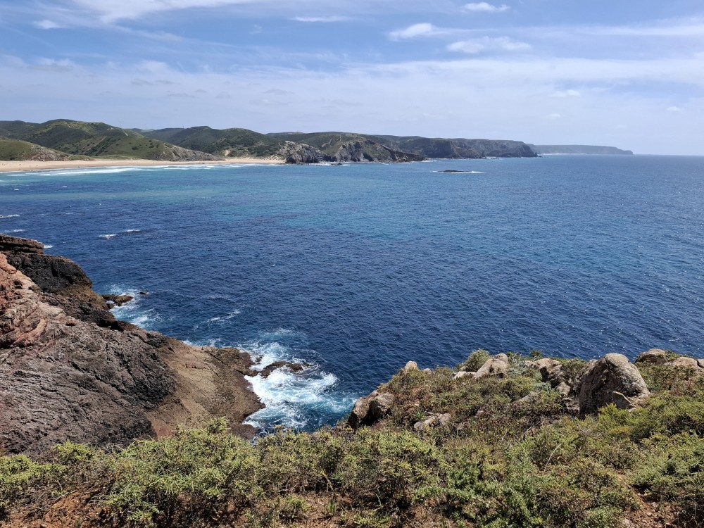 Ráno jdeme s Janou do obchodu v Olhos de Aqua. Obchod je skromný, ale na snídani nakoupíme. Snídáme na terase apartmáno a pak vyrážíme na výlet. Jedeme prozkoumat západní část Algarve. Počasí je dnes dobré, teplota sice není úplně vysoká, kolem 20°C, ale svítí sluníčko a pocitově je dost teplo.