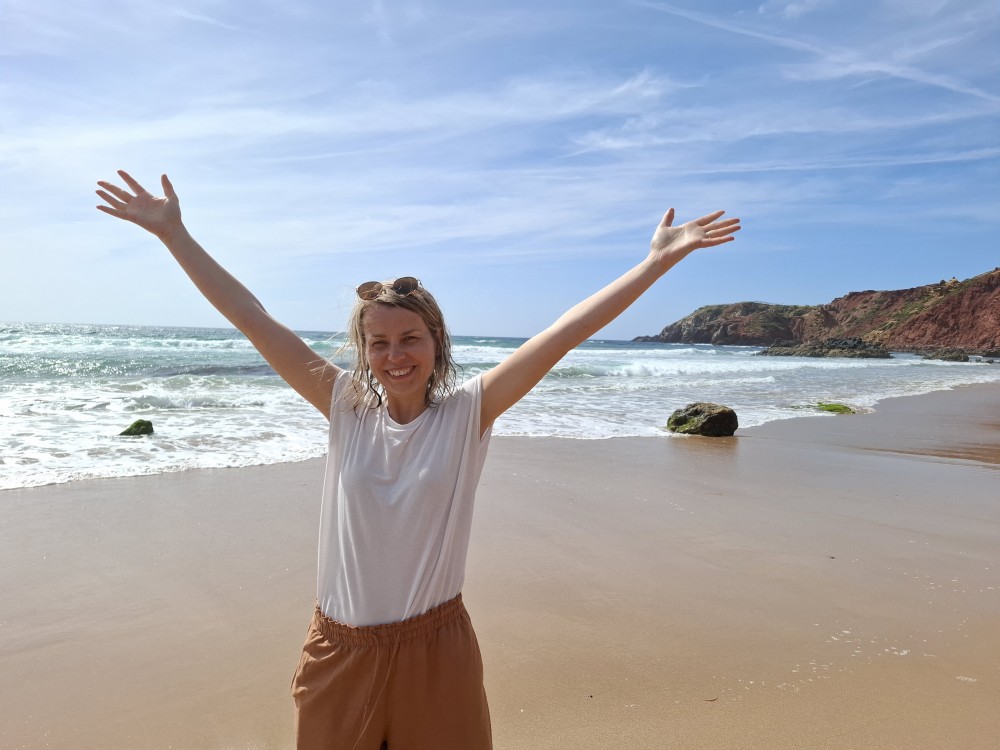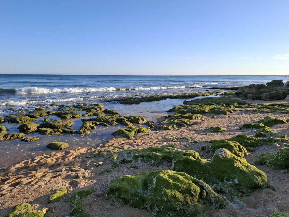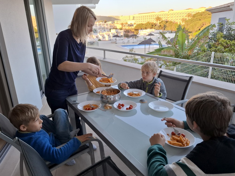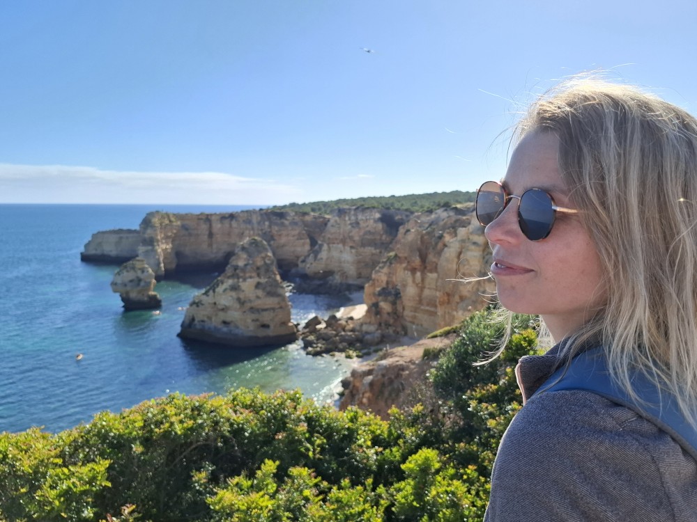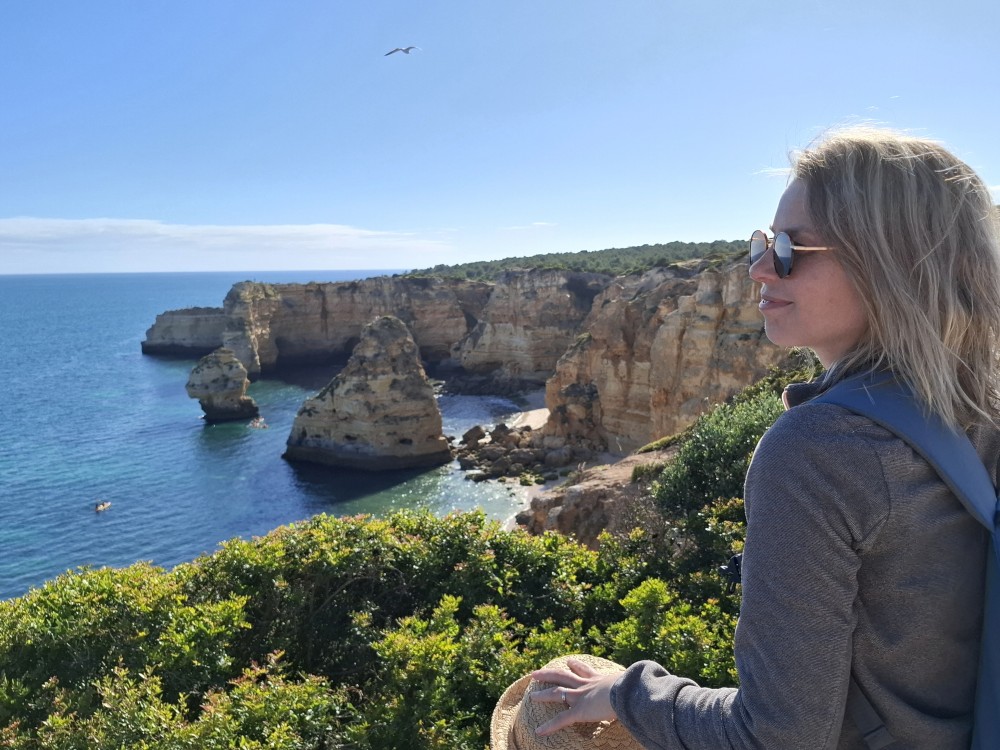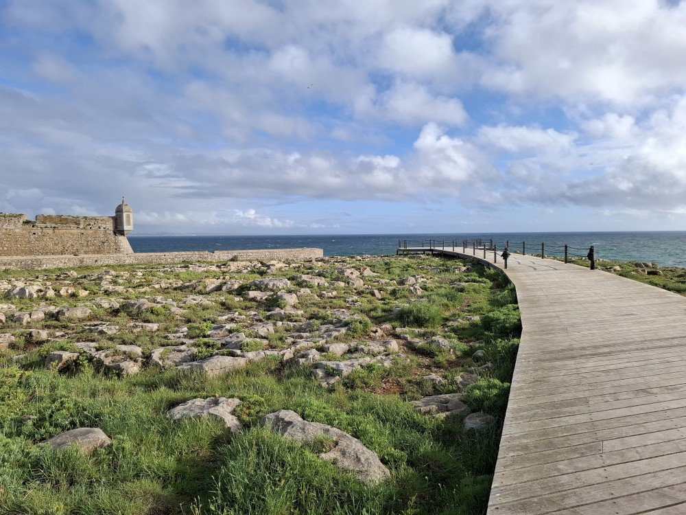 Ráno jdeme s Janou do obchodu v Olhos de Aqua. Obchod je skromný, ale na snídani nakoupíme. Snídáme na terase apartmáno a pak vyrážíme na výlet. Jedeme prozkoumat západní část Algarve. Počasí je dnes dobré, teplota sice není úplně vysoká, kolem 20°C, ale svítí sluníčko a pocitově je dost teplo.