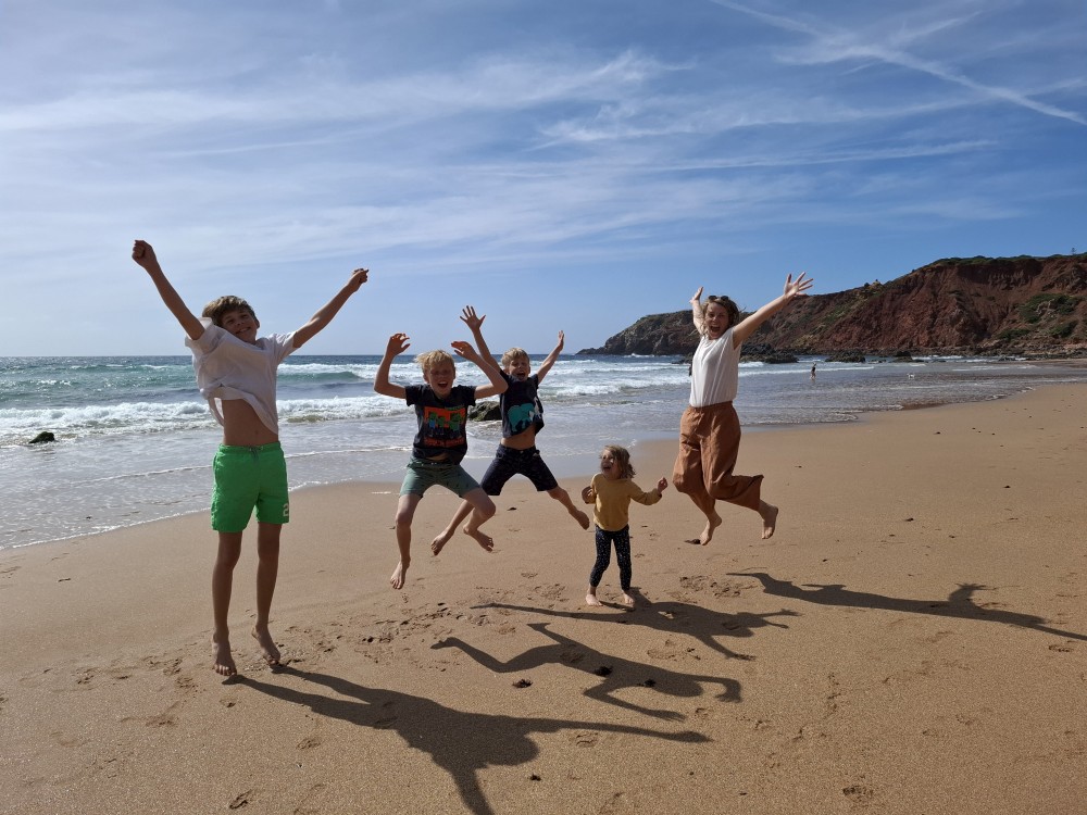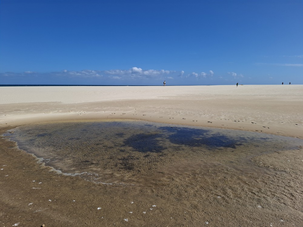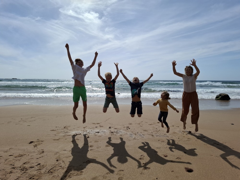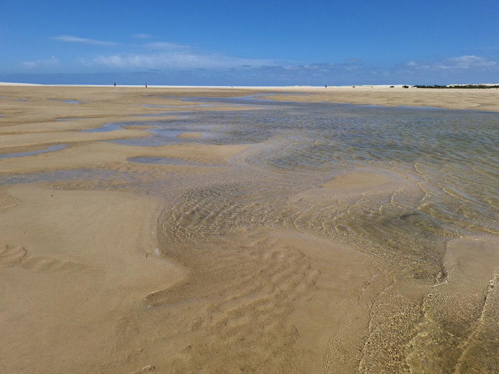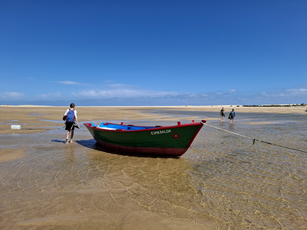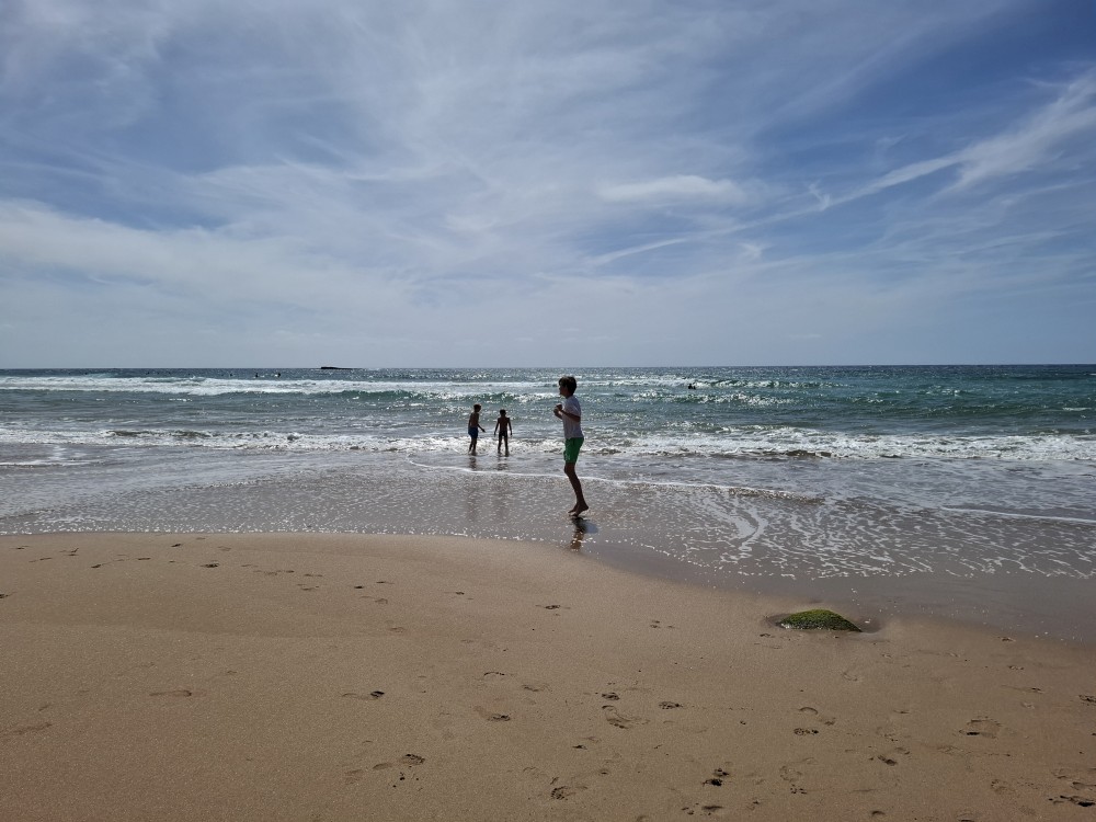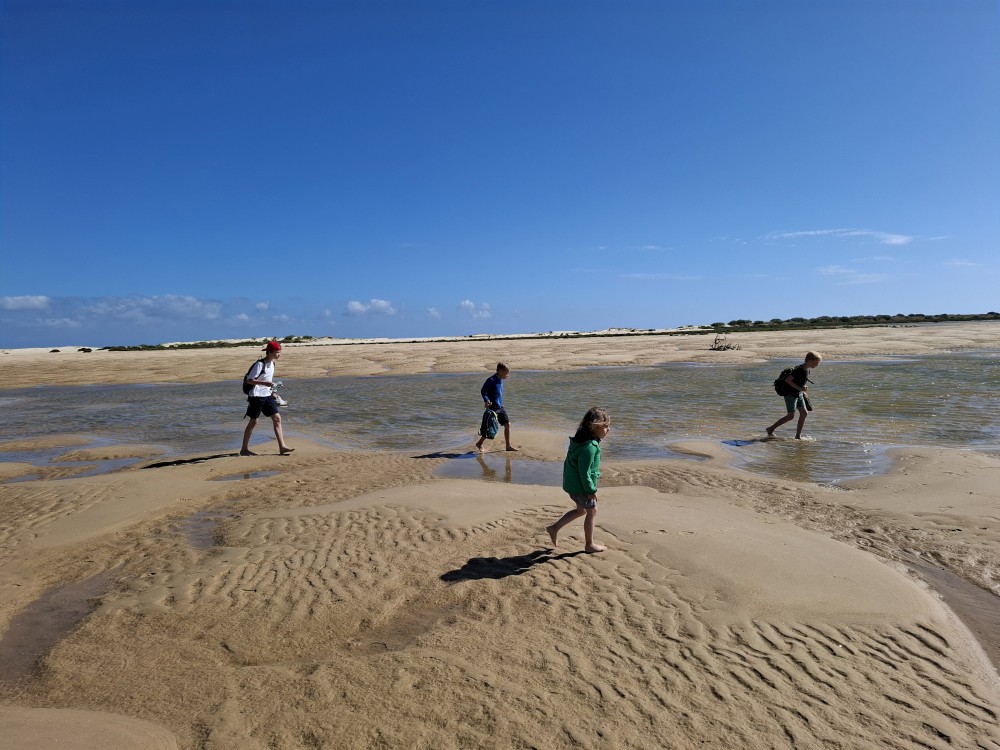 Scházíme dolů, prodíme se bosky lagunou, děti nahánějí ryby. Pokračujeme až k oceánu. Jsme tu úplně sami, koupeme se nazí v oceánu. Je to nádhera a svoboda. Už ale musíme spěchat zpět k autu, protože máme domluvený sraz s Ťoupalíky v Huelvě. Sedáme do auta, přejíždíme po velkém mostě do Španělska a za chvíli jsme v Huelvě.