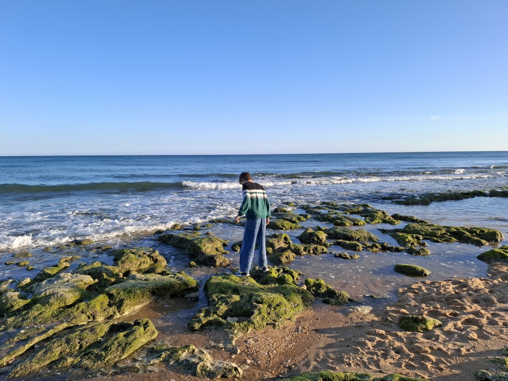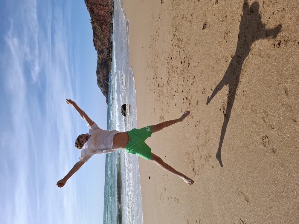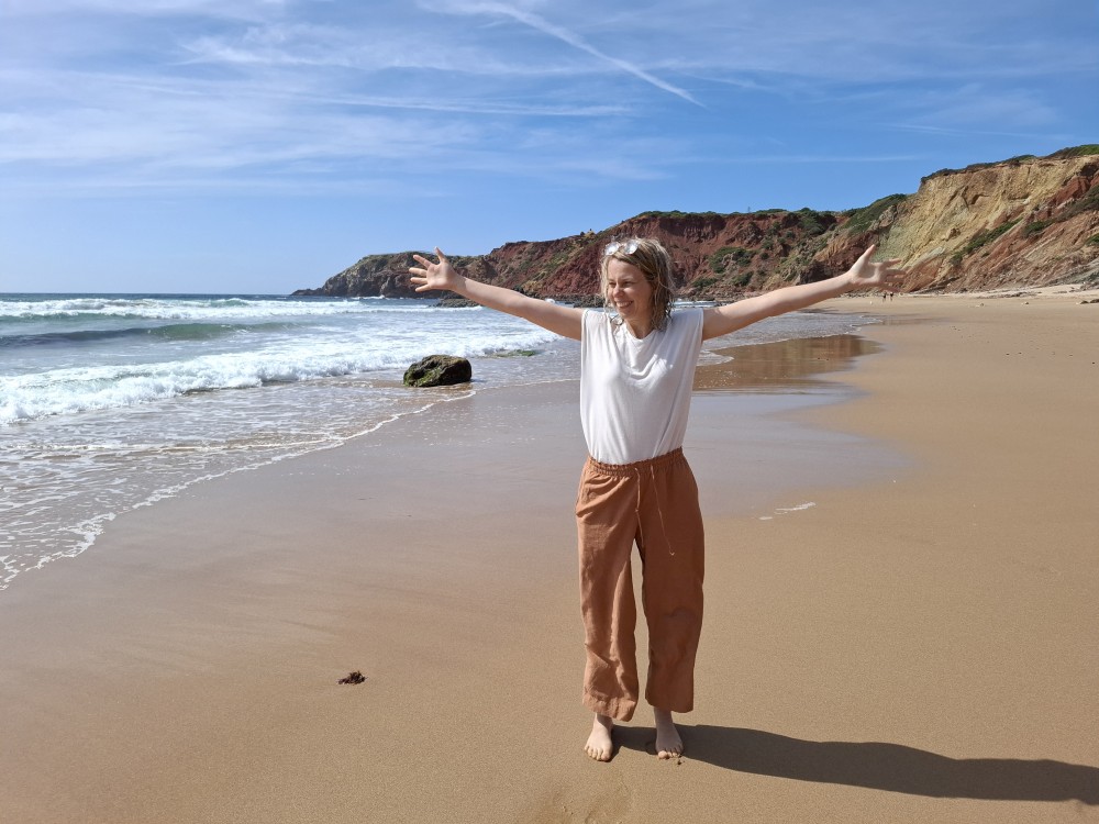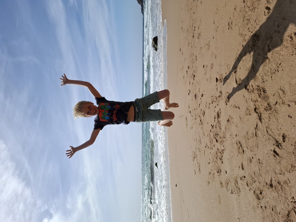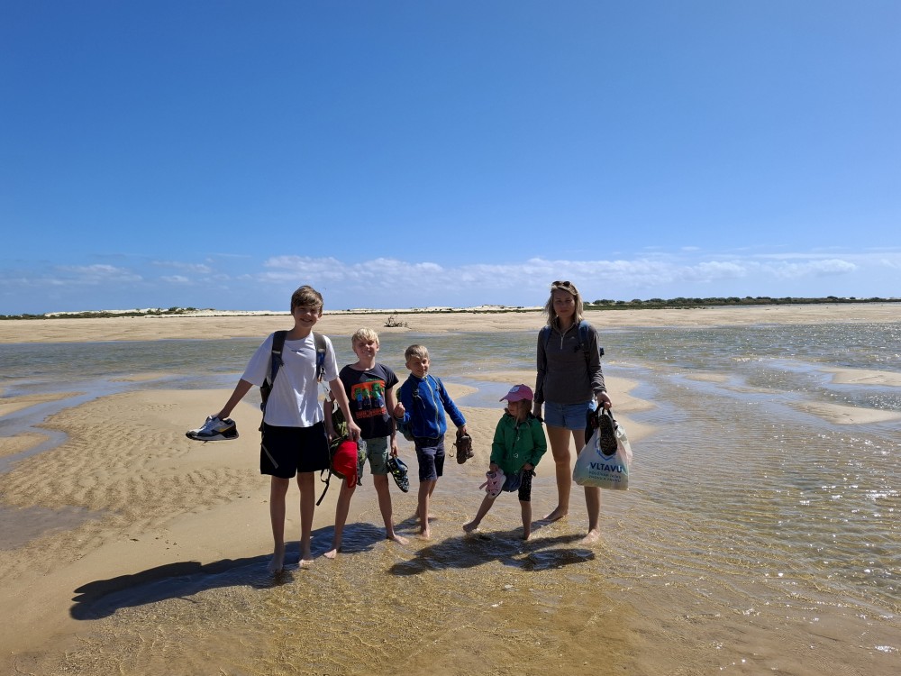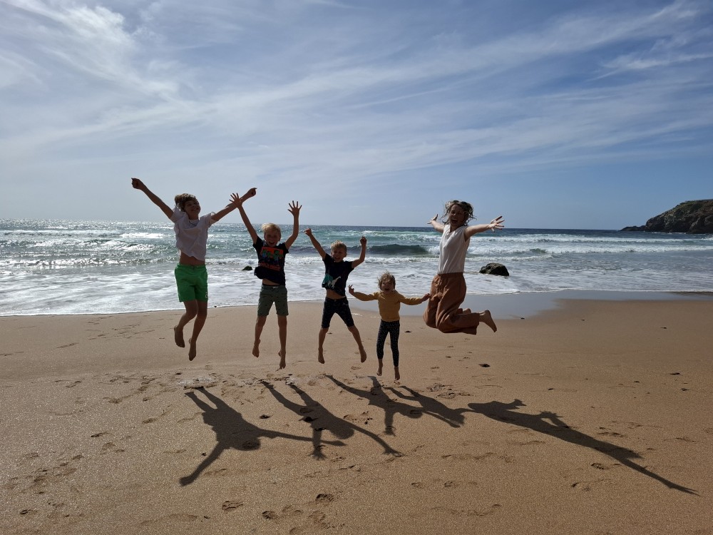 Scházíme dolů, prodíme se bosky lagunou, děti nahánějí ryby. Pokračujeme až k oceánu. Jsme tu úplně sami, koupeme se nazí v oceánu. Je to nádhera a svoboda. Už ale musíme spěchat zpět k autu, protože máme domluvený sraz s Ťoupalíky v Huelvě. Sedáme do auta, přejíždíme po velkém mostě do Španělska a za chvíli jsme v Huelvě.