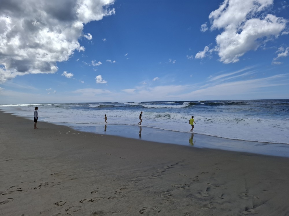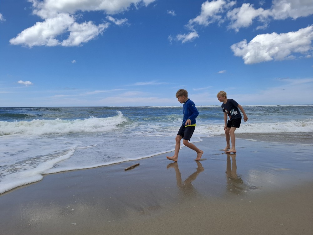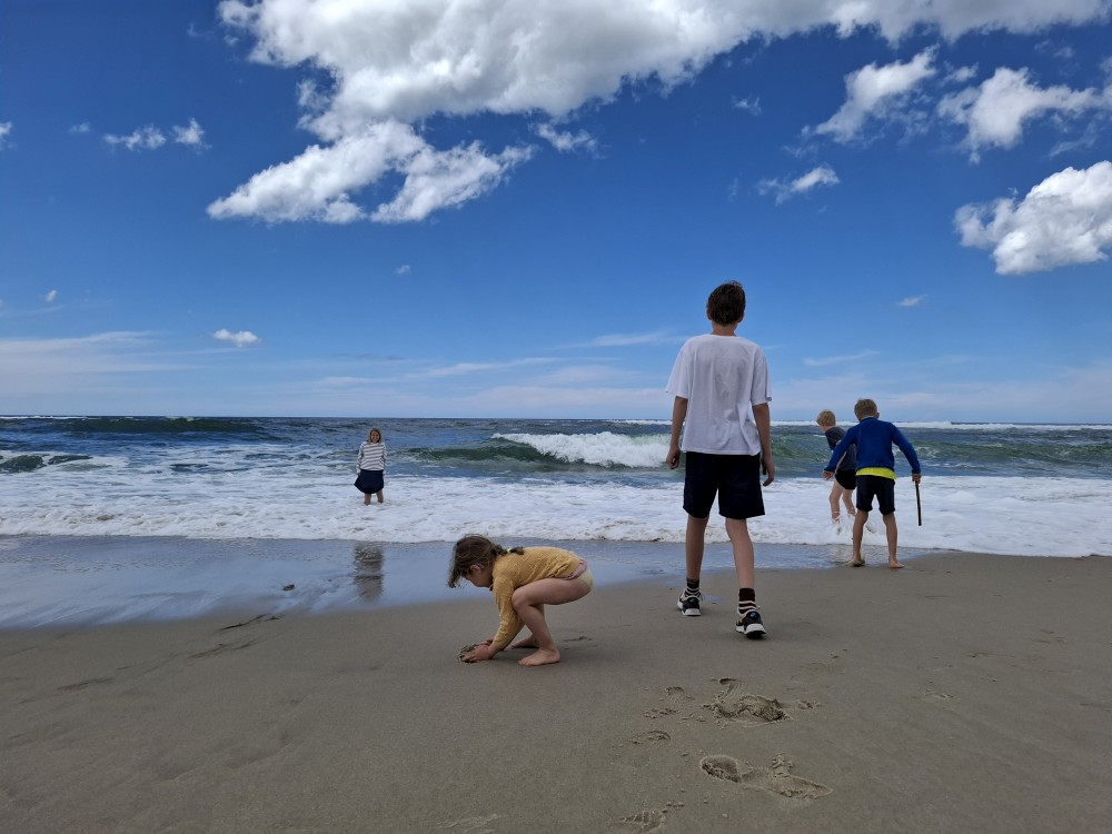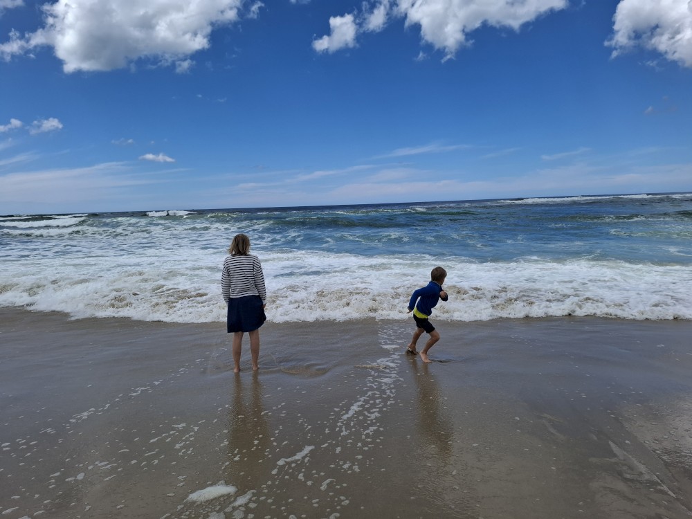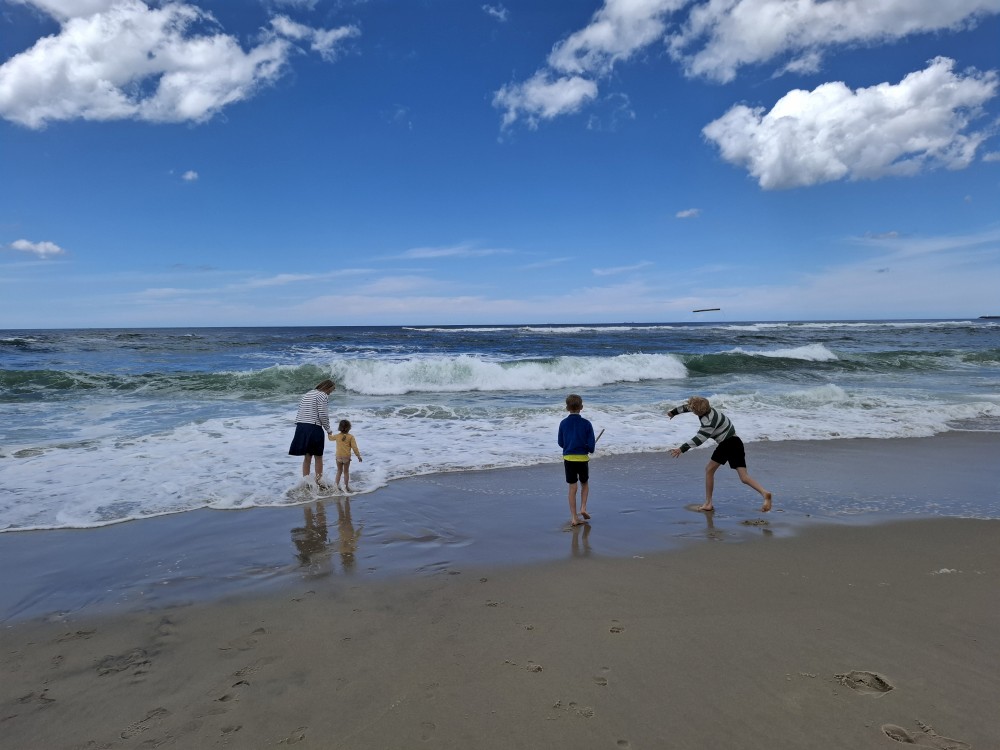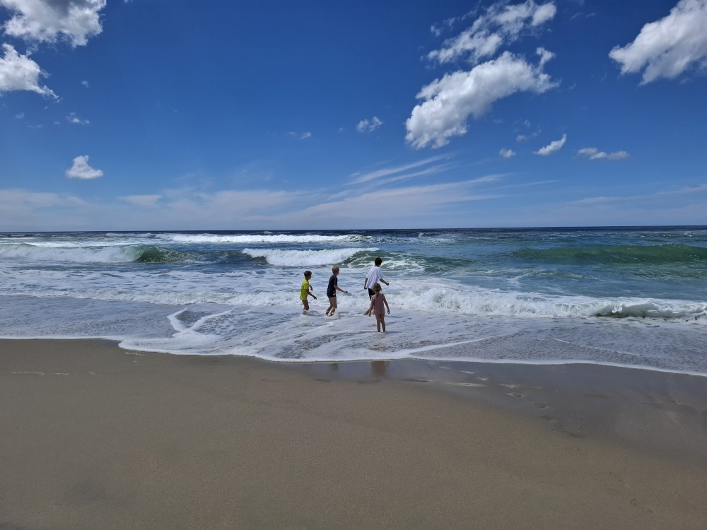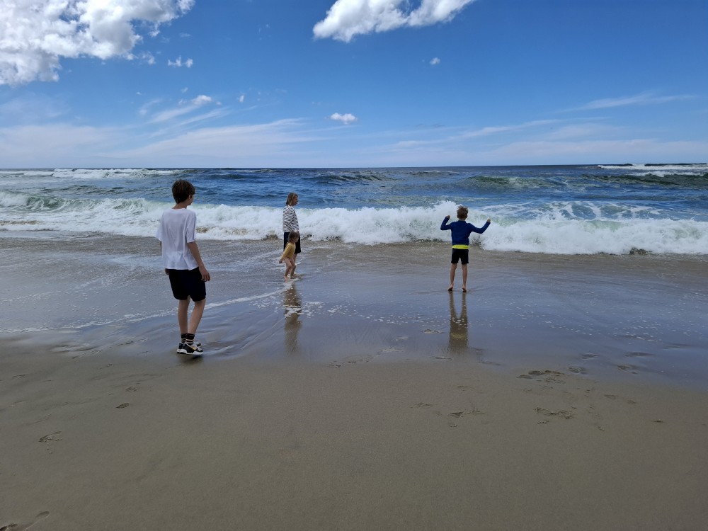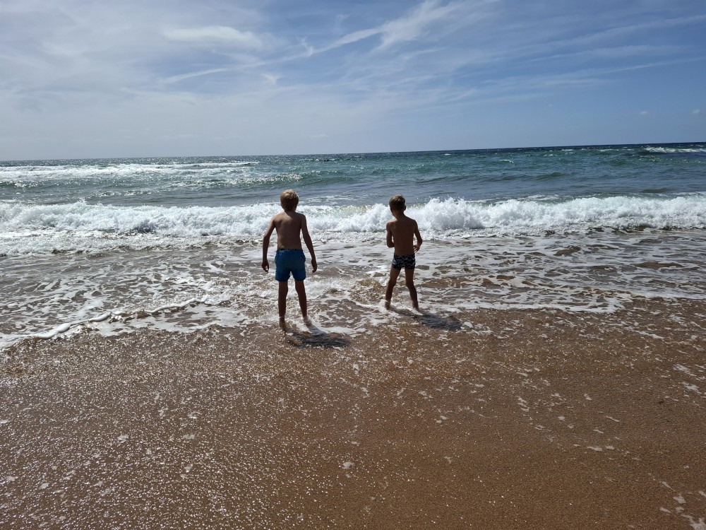 Koupeme se a je to nádhera. Kluci a Bětuška staví hrady a vlny jim je ničí. Asi po dvou hodinách jsme na pláži úplně sami. Ještě chvilku pobudeme a pak vyrážíme k autu a jedeme na ubytování.