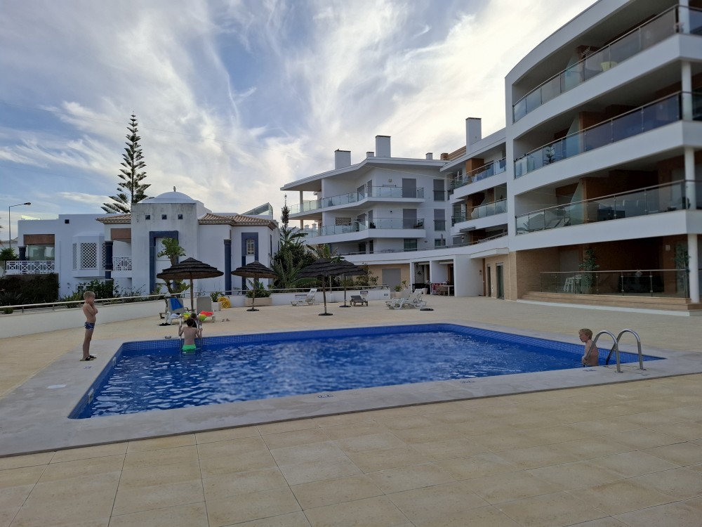 U katedrály fotíme žlutou Bětušku se žlutými domky a pak už se pomalu vracíme k autu. Čeká nás asi 200 km na ubytování do Algarve. Cestou zastavujeme na benzínce na Red Bull a další občerstvení. Přijíždíme na ubytování do Olhos de Aqua. Přes automatický check-in se dostáváme na apartmán. Nakonec se nám daří i zaparkovat na našem místě v místním podzemním parkovišti. Musel jsme zase sundat rakev, není to ale tak hektické jako v centru Lisabonu.