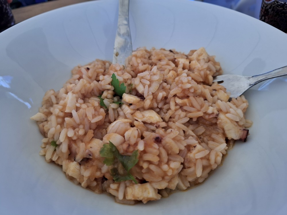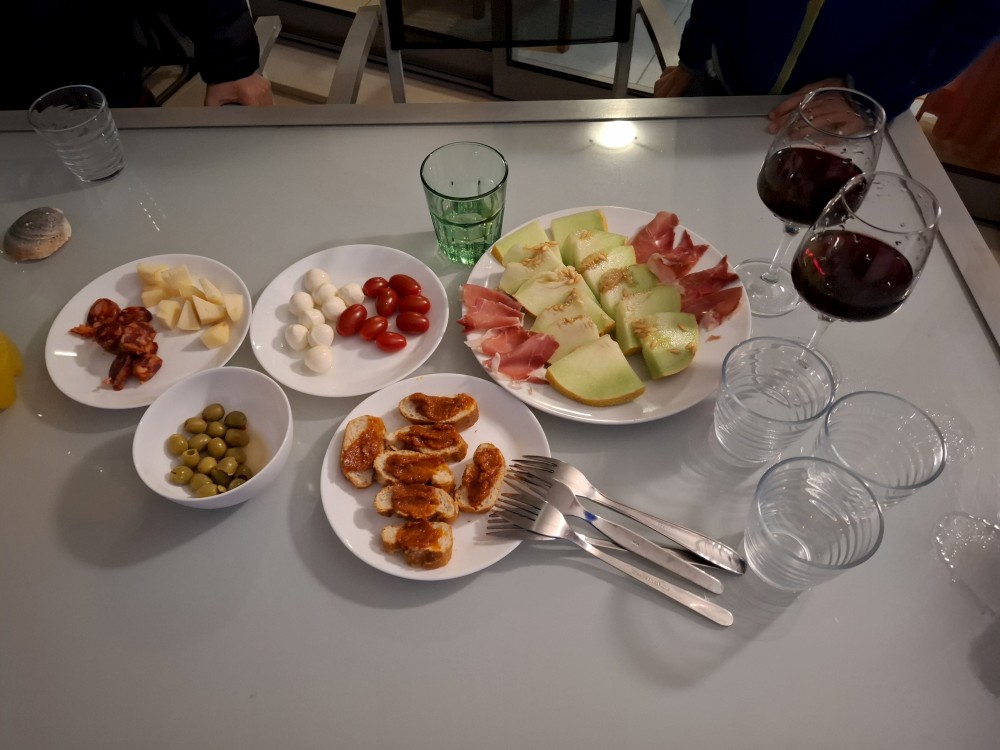 Pak jdeme na večeři. Dáváme si jí na terase apartmánu. Pak jdeme na prohlídku na kolonádu všichni. Chvilku jsme u moře, pak se jdeme ještě podívat na nedalekou vyhlídku na skalím útesu. Pak hledáme, am bychom si mohli sednout na něco k pití, případně na nějaký tapas.