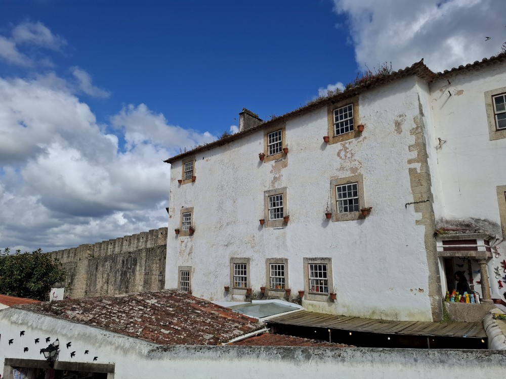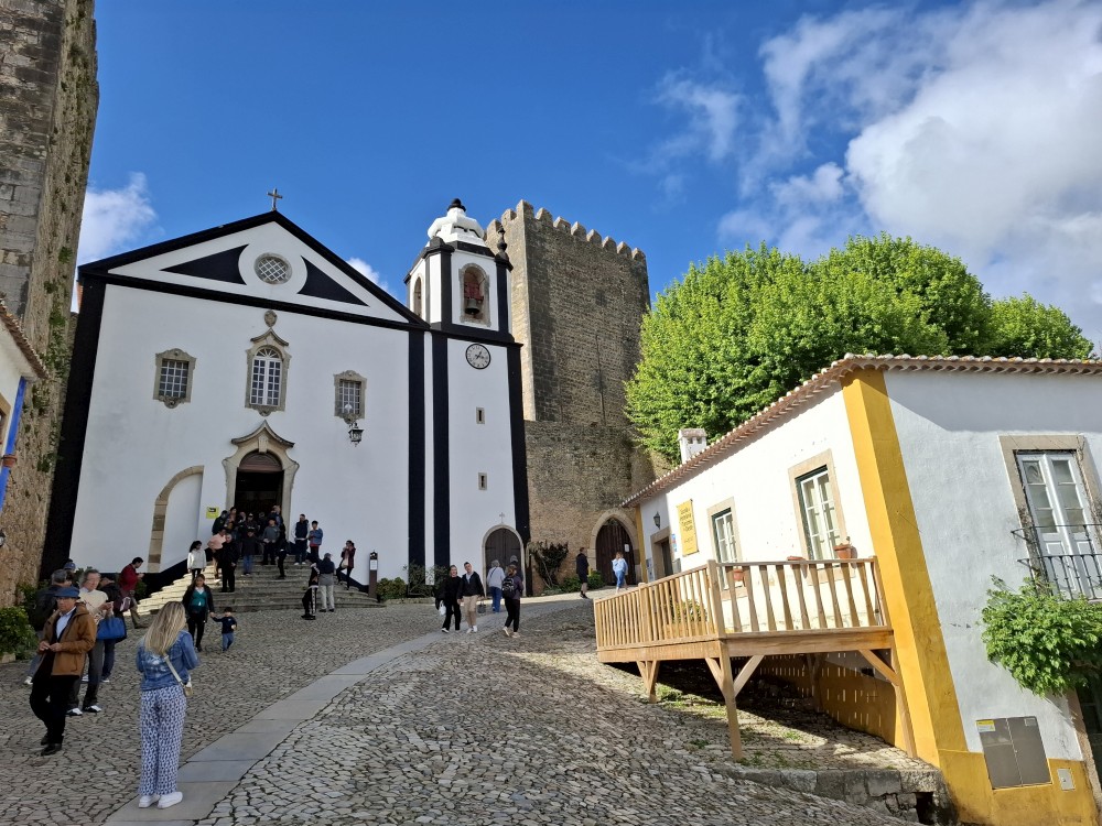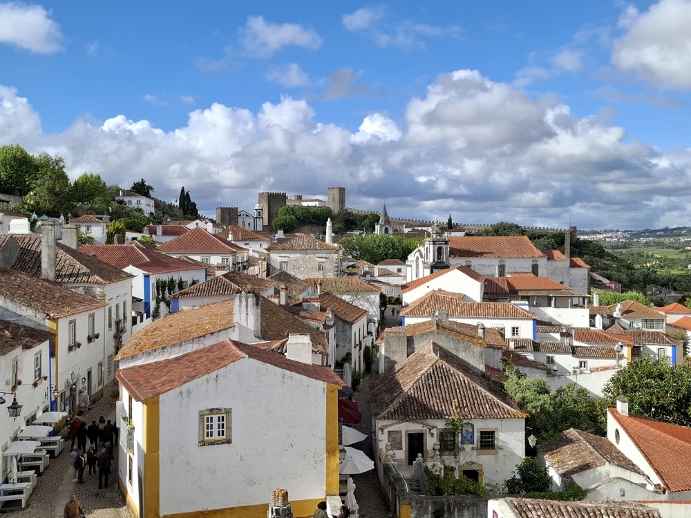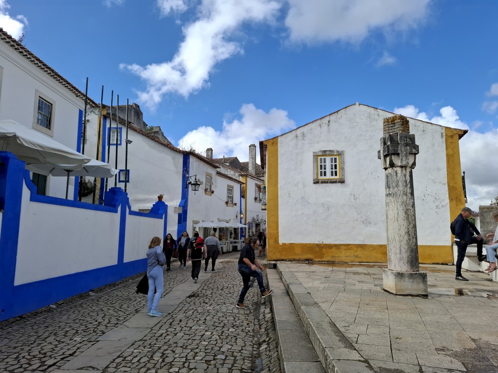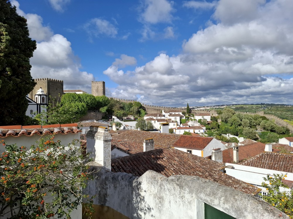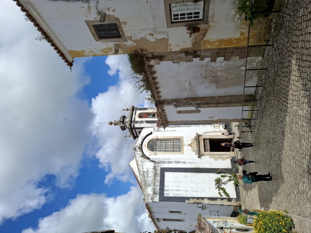 Pokračujeme do Obídosu, do městečka bílých domů, které je kompletně obehnáno vysokými středověkými hradbami. Je to nádhera. Procházíme nejprve po hlavní promenádě, kde je hodně lidí, ale pak i malými uličkami bez lidí. Na promenádě jdeme do jedné restaurace a dáváme si něco k jídlu - donner kebab a pizza margarita. Pak pokračujeme ke kostelu a také na hradby. Hradby se dají obejít kolem dokola, ale to by bylo na dlouho a ještě by to nebylo pro nás úplně bezpečné. Hradby jsou hodně vysoké a zábradlí zde není.