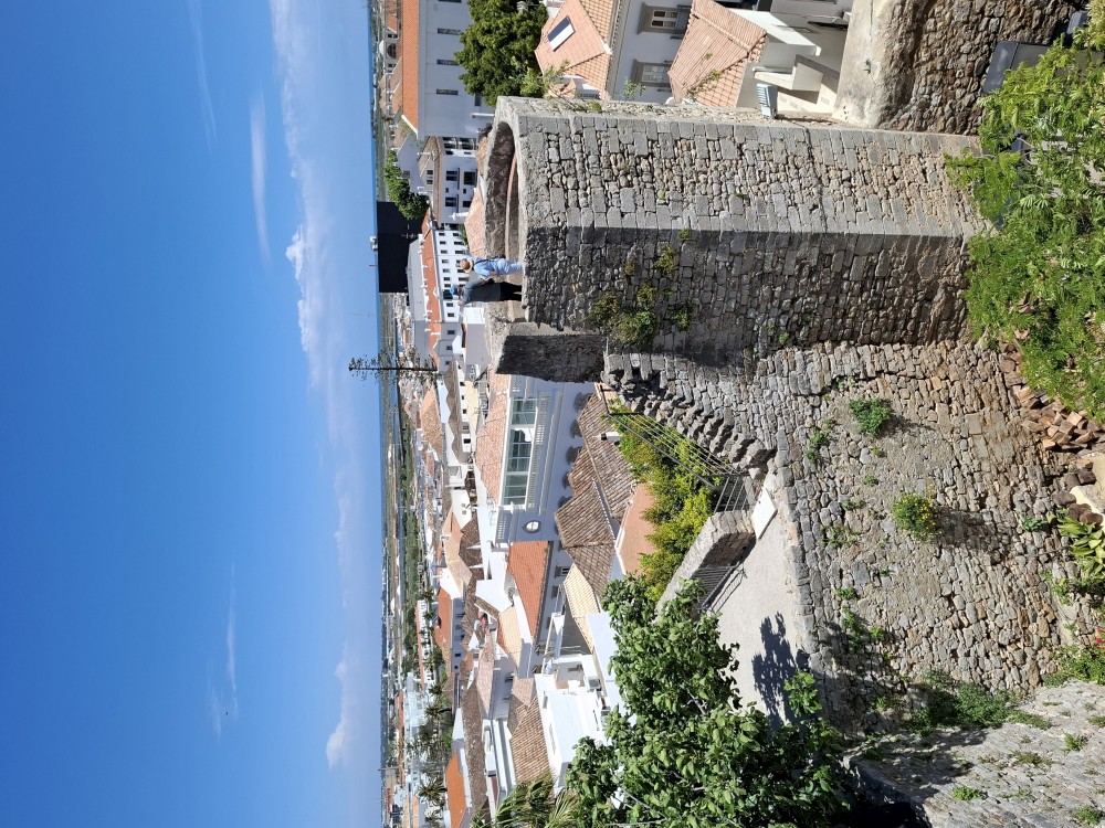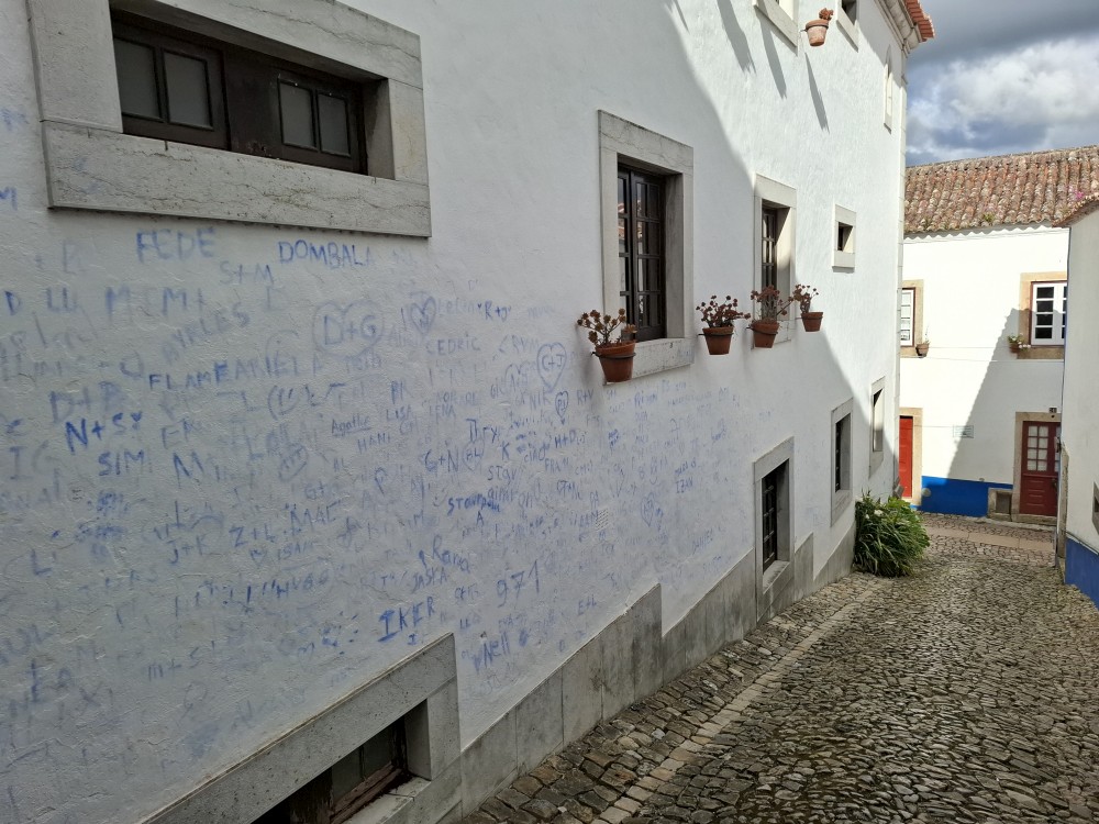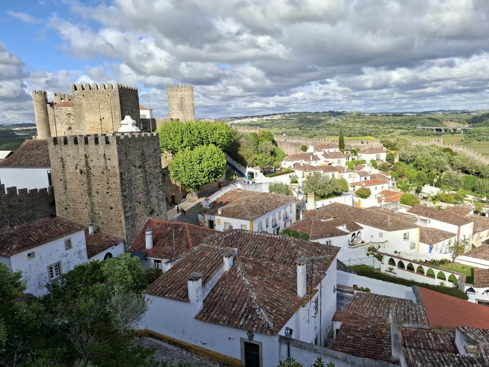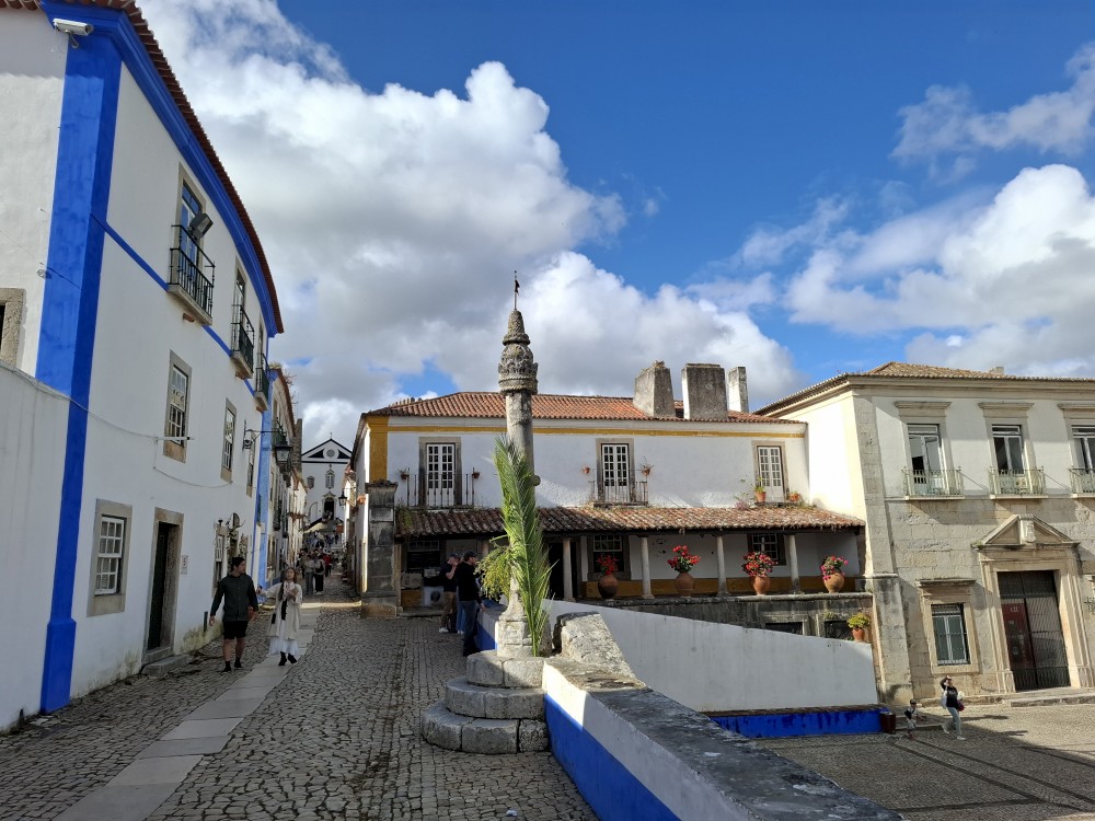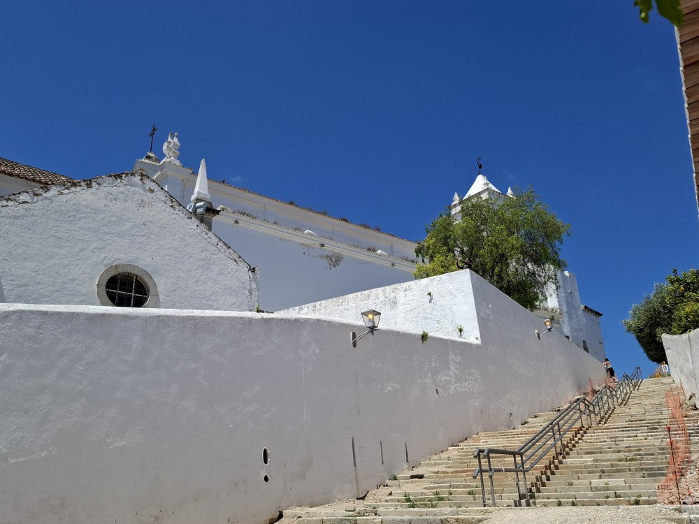Pokračujeme do Obídosu, do městečka bílých domů, které je kompletně obehnáno vysokými středověkými hradbami. Je to nádhera. Procházíme nejprve po hlavní promenádě, kde je hodně lidí, ale pak i malými uličkami bez lidí. Na promenádě jdeme do jedné restaurace a dáváme si něco k jídlu - donner kebab a pizza margarita. Pak pokračujeme ke kostelu a také na hradby. Hradby se dají obejít kolem dokola, ale to by bylo na dlouho a ještě by to nebylo pro nás úplně bezpečné. Hradby jsou hodně vysoké a zábradlí zde není.