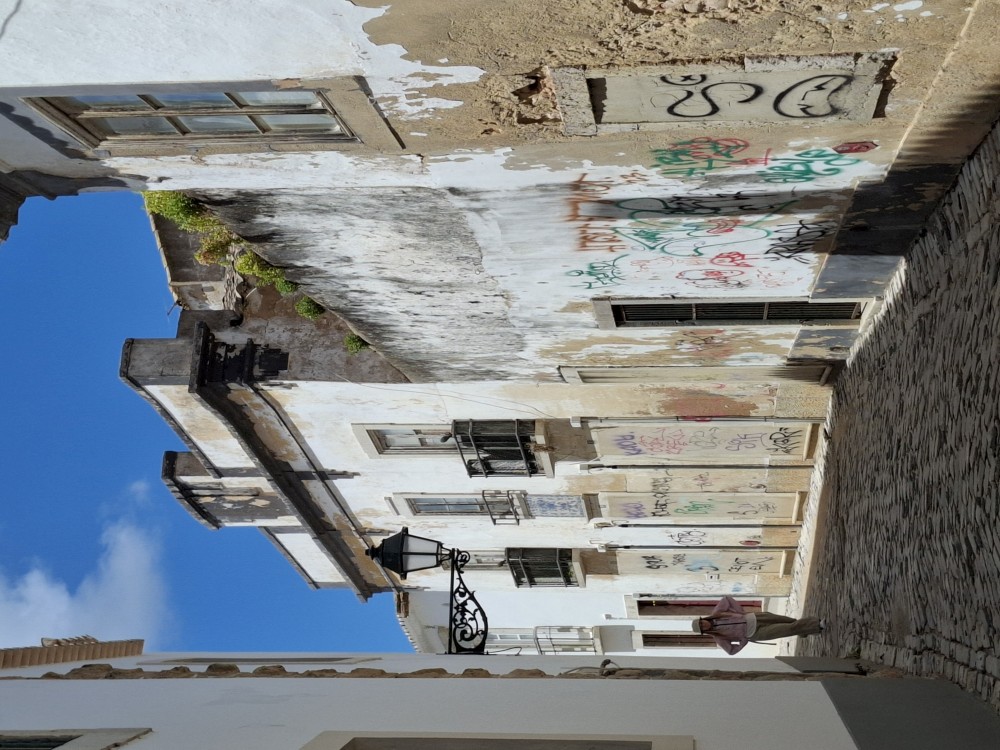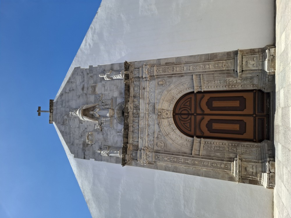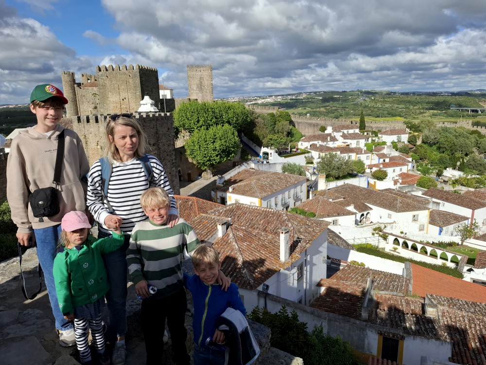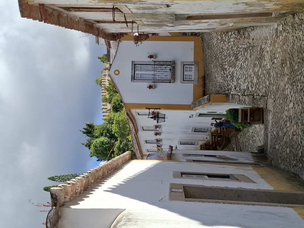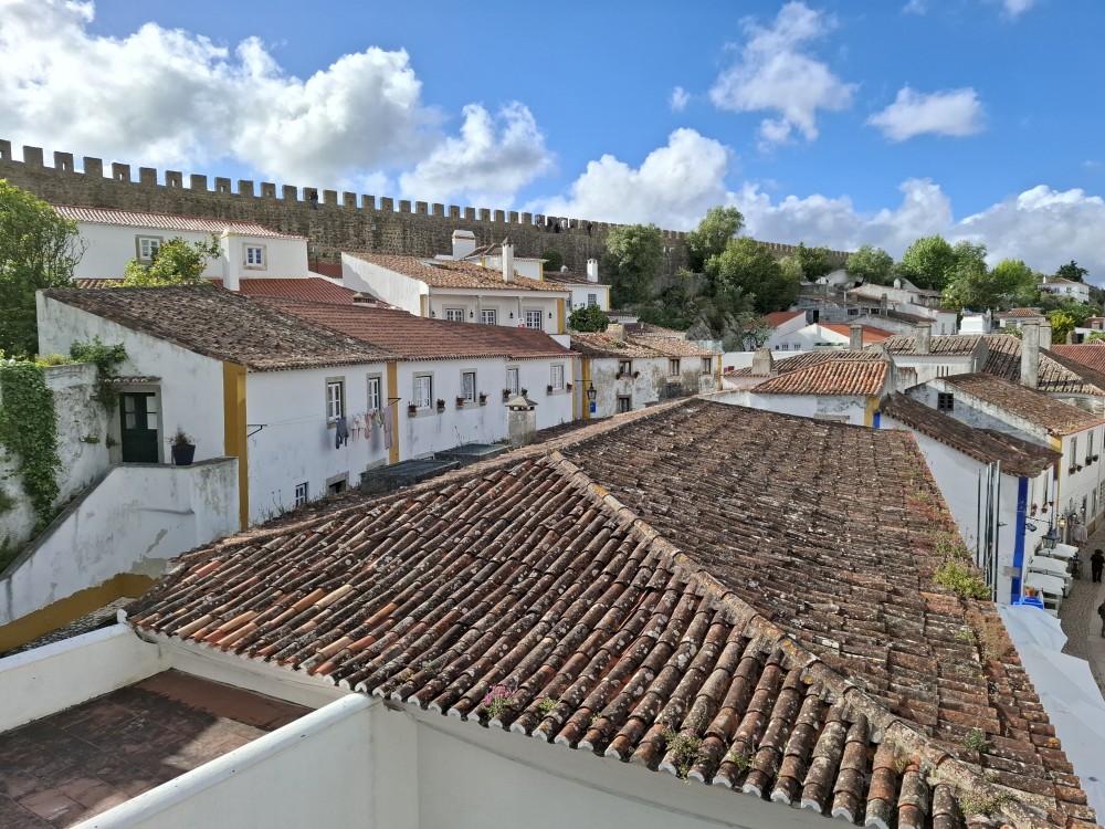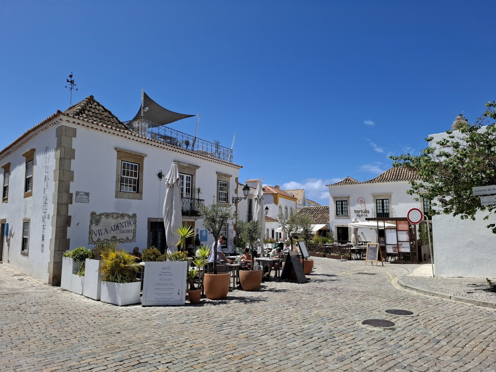 Pokračujeme do Obídosu, do městečka bílých domů, které je kompletně obehnáno vysokými středověkými hradbami. Je to nádhera. Procházíme nejprve po hlavní promenádě, kde je hodně lidí, ale pak i malými uličkami bez lidí. Na promenádě jdeme do jedné restaurace a dáváme si něco k jídlu - donner kebab a pizza margarita. Pak pokračujeme ke kostelu a také na hradby. Hradby se dají obejít kolem dokola, ale to by bylo na dlouho a ještě by to nebylo pro nás úplně bezpečné. Hradby jsou hodně vysoké a zábradlí zde není.