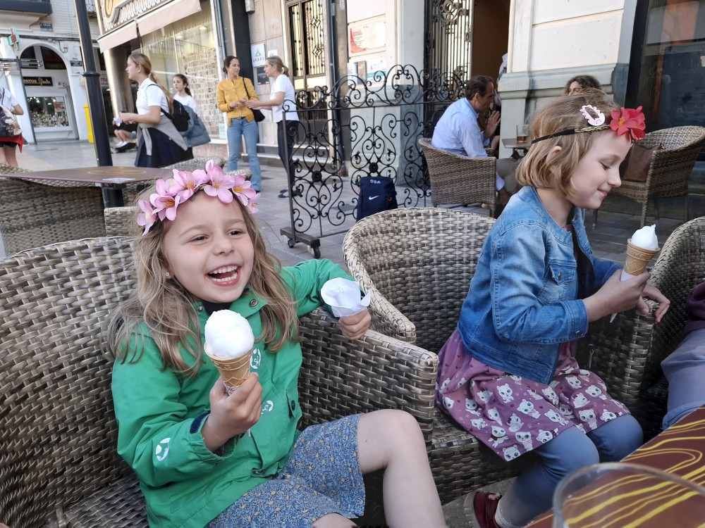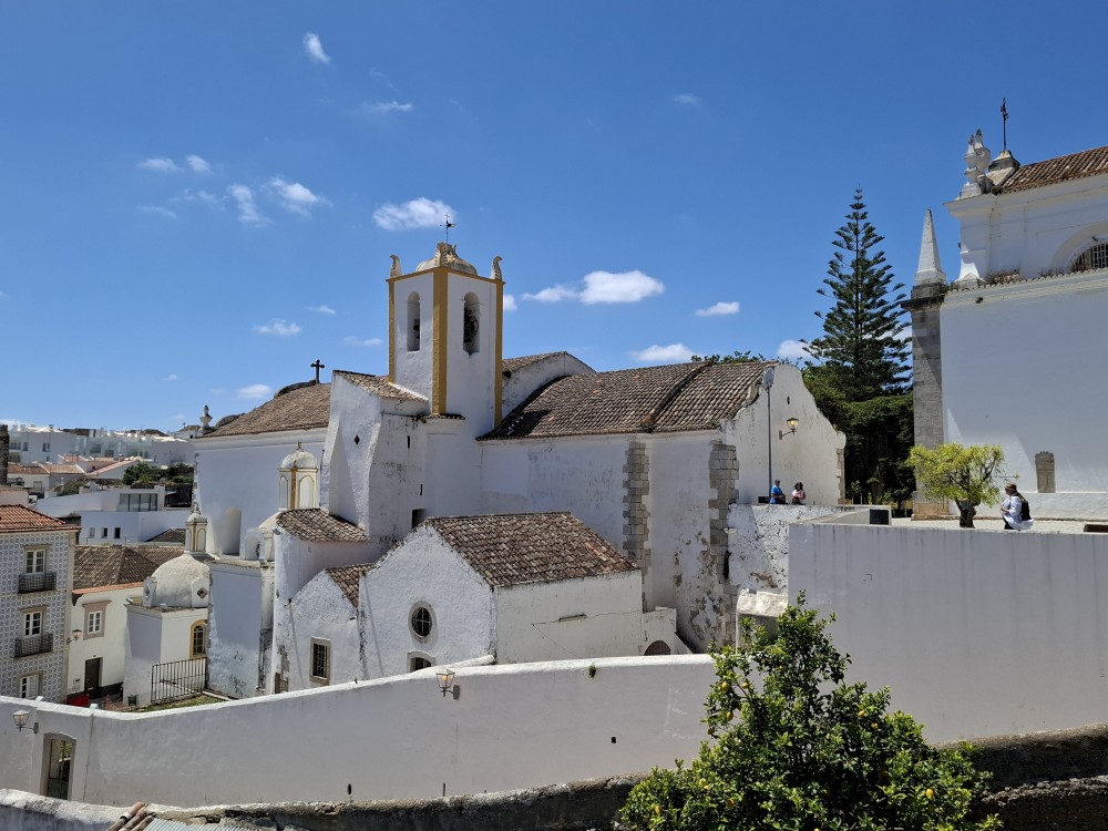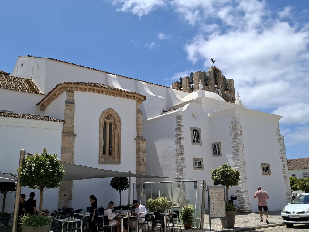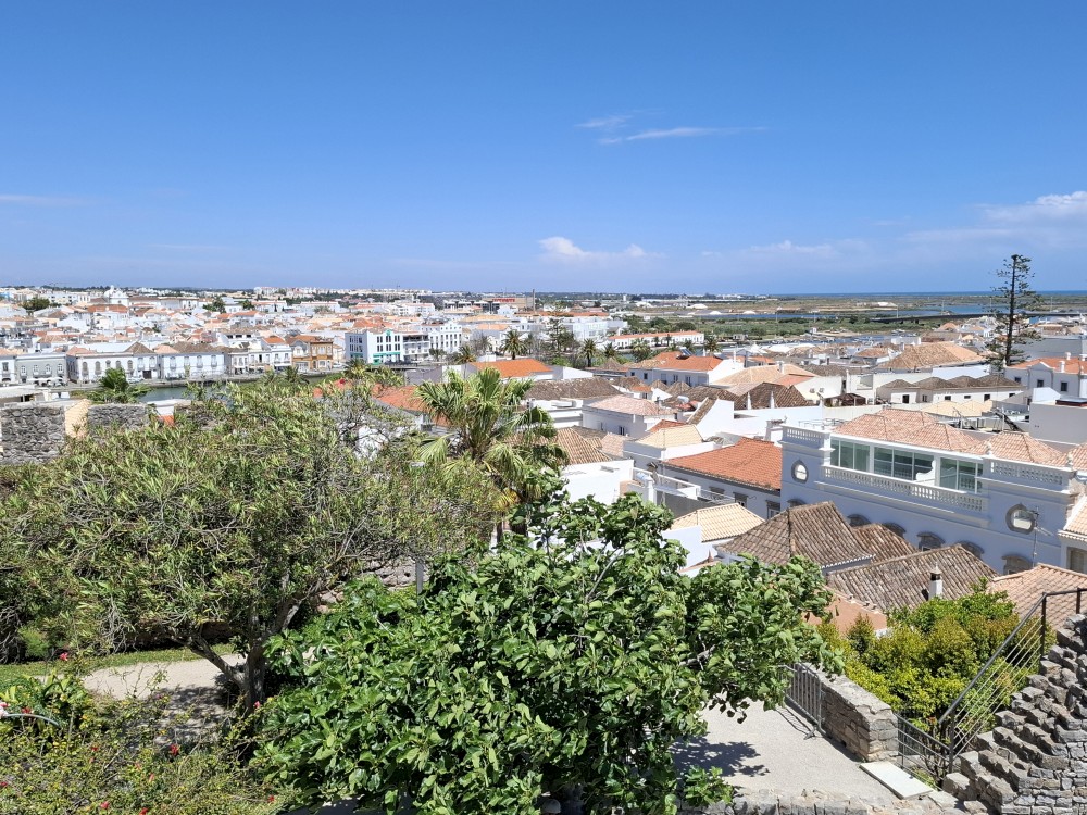 Procházíme starým městem, po schodech stoupáme kolem kostelů Igreja Paroquial de Santiago de Tavira a Igreja paroquial de Santa Maria k hradu Castelo de Tavira. Lezeme na hradby, jsou odtud hezké výhledy. Pak jdeme na náměstí Praça da República, kde kupujeme dětem zmrzlinu a my si s Janou dáváme kávu ve vedlejším podniku.
