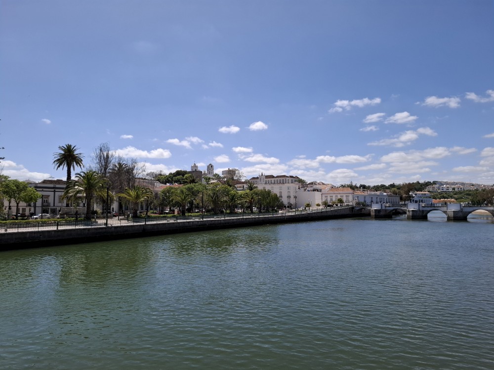 Pokračujeme do Fara. Auto necháváme u přístavu a jdeme se podívat na staré město. Přemýšlíme o plavbě lodí po místních mokřadech, ale nakonec se rozhodujeme, že plavbu lodí necháme až na jeskyni Benagil. Procházíme se starým městem, je tu hezké náměstí s katedrálou Sé de Faro. Stoupáme na hradby. Pak už sedáme do auta a přesouváme se do Taviry. Ta je moc pěkná, hezčí než Faro. Parkujeme na Rua 25 de Abril.