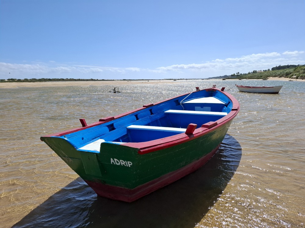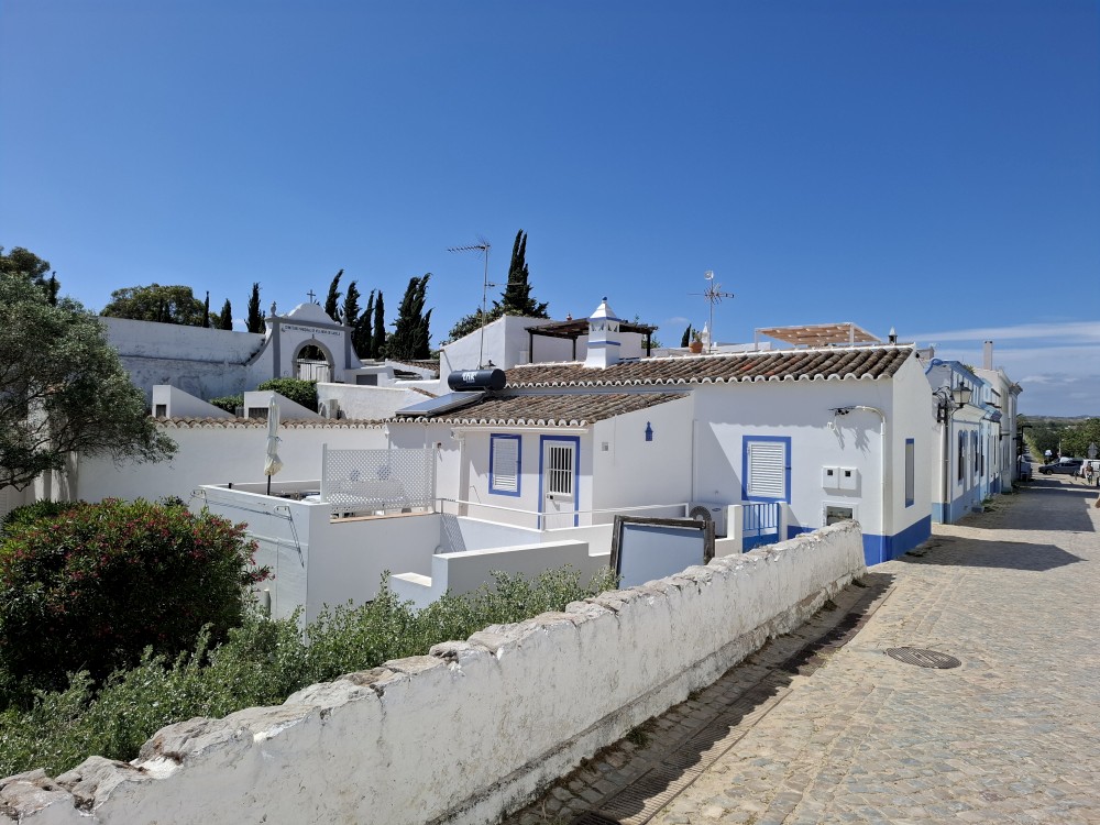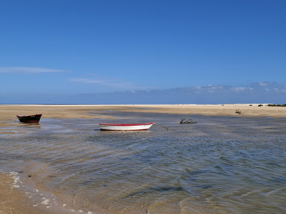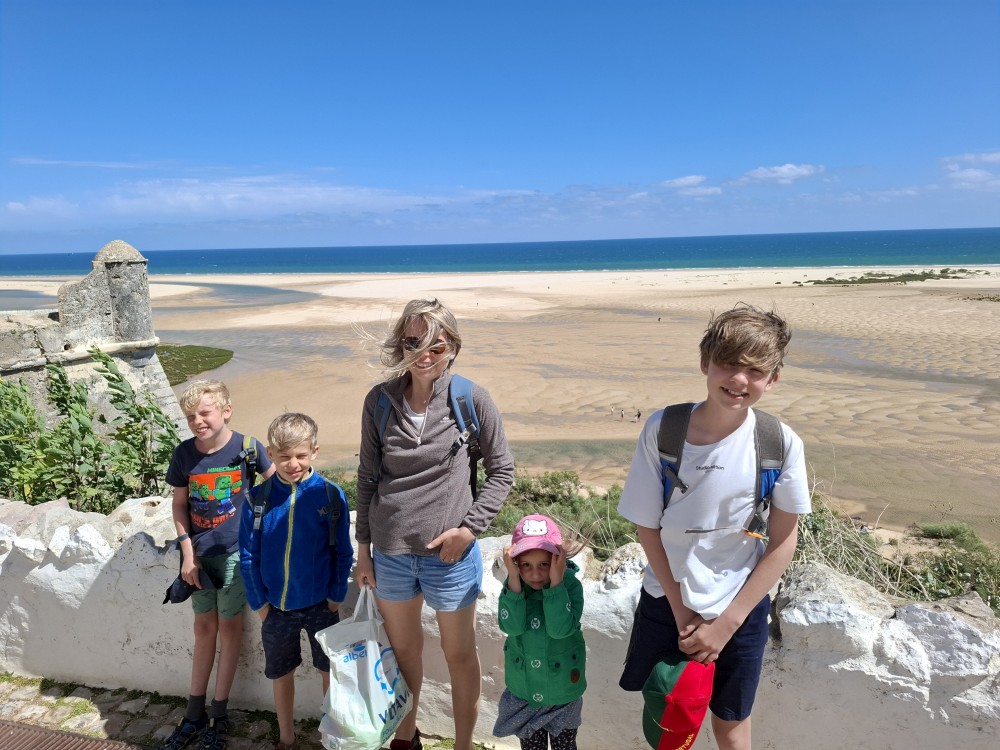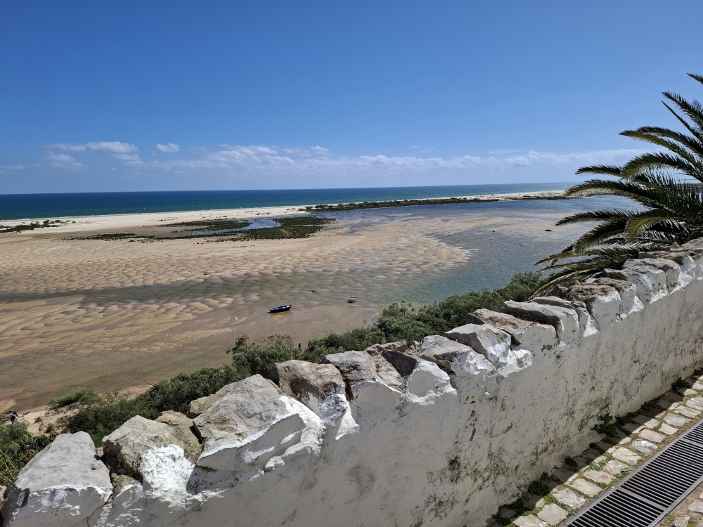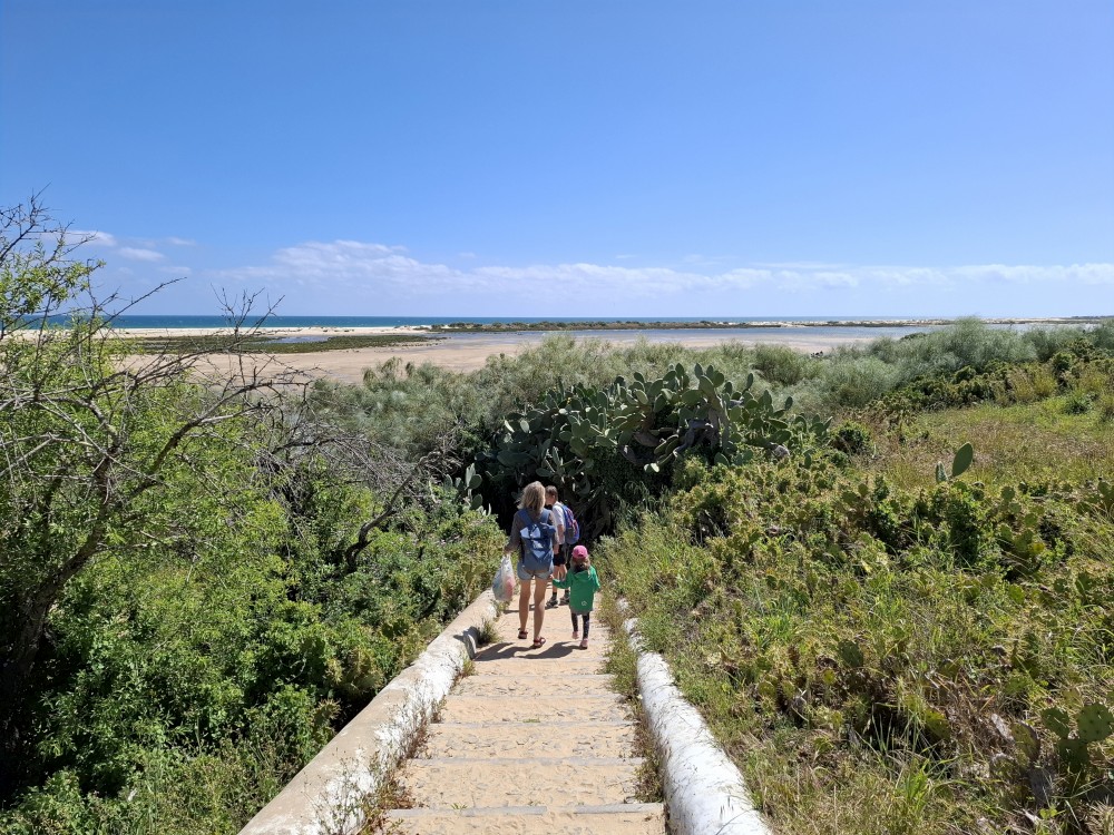 Po krátkém posezení jdeme k řece a na starý most. Děti jdou pak do obchdu se suvenýry, já jdu místo toho na rychlou procházku městem a zmrzlinu. Znovu se setkáváme, jdeme k autu a přejíždíme do Cacela Velha. Z tohoto místa jsme nadšeni. Z místní pevnosti jsou krásné výhledy na mokřady Ria Formosa a přilehlý oceán. Je zde písečná laguna s mělkými vodními jezírky.