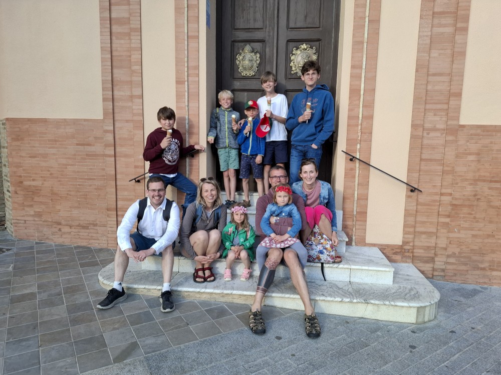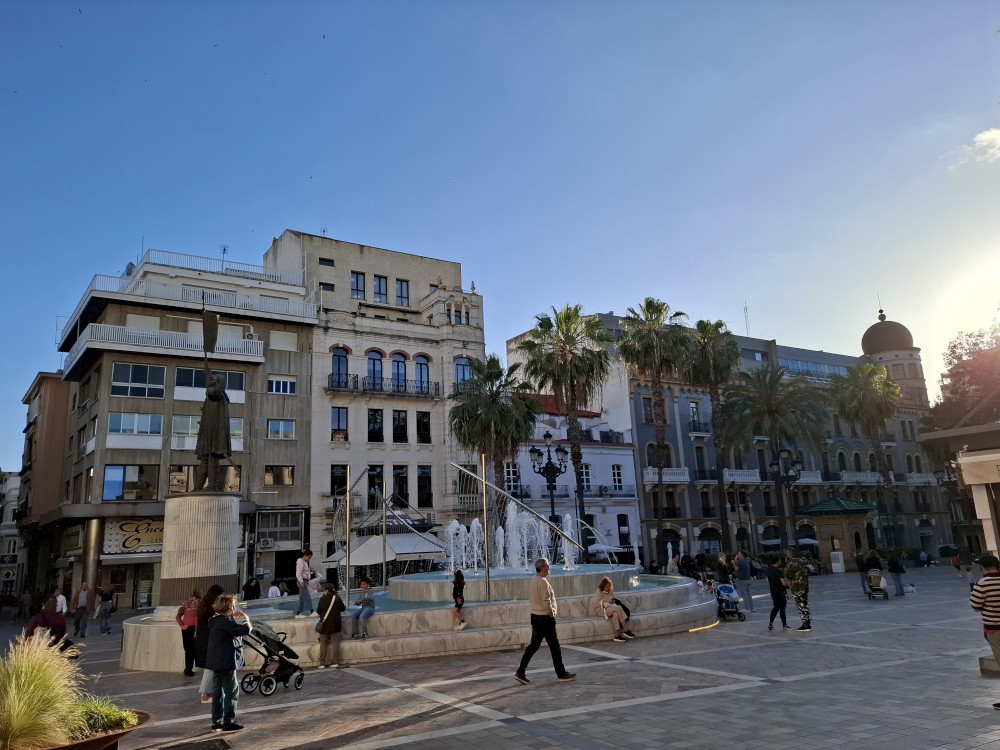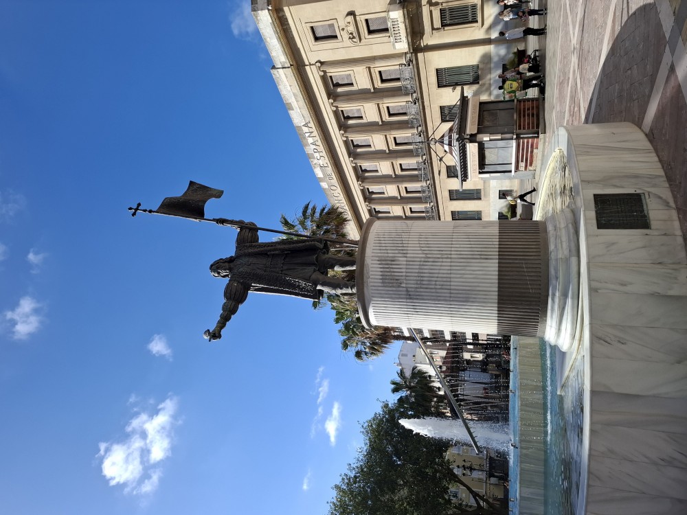 Parkujeme přímo v centru v podzemním parkovišti a je to velká divočina. Je extrémně úzké a rampy jsou extrémně prudké. Za chvíli se již setkáváme s Ťoupalíky. Potkáváme je hned vedle parkoviště. Jdeme na náměstí se sochou Kryštofa Kolumba. V jedné kavárně si dáváme občerstvení a kávu. Pak jdeme ještě na zmrzlinu. Povídáme si, děláme společnou fotku pro kamarády. Bylo to moc pěkné setkání.