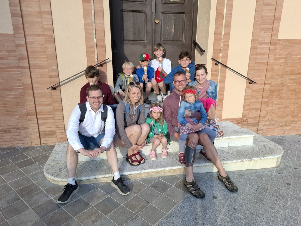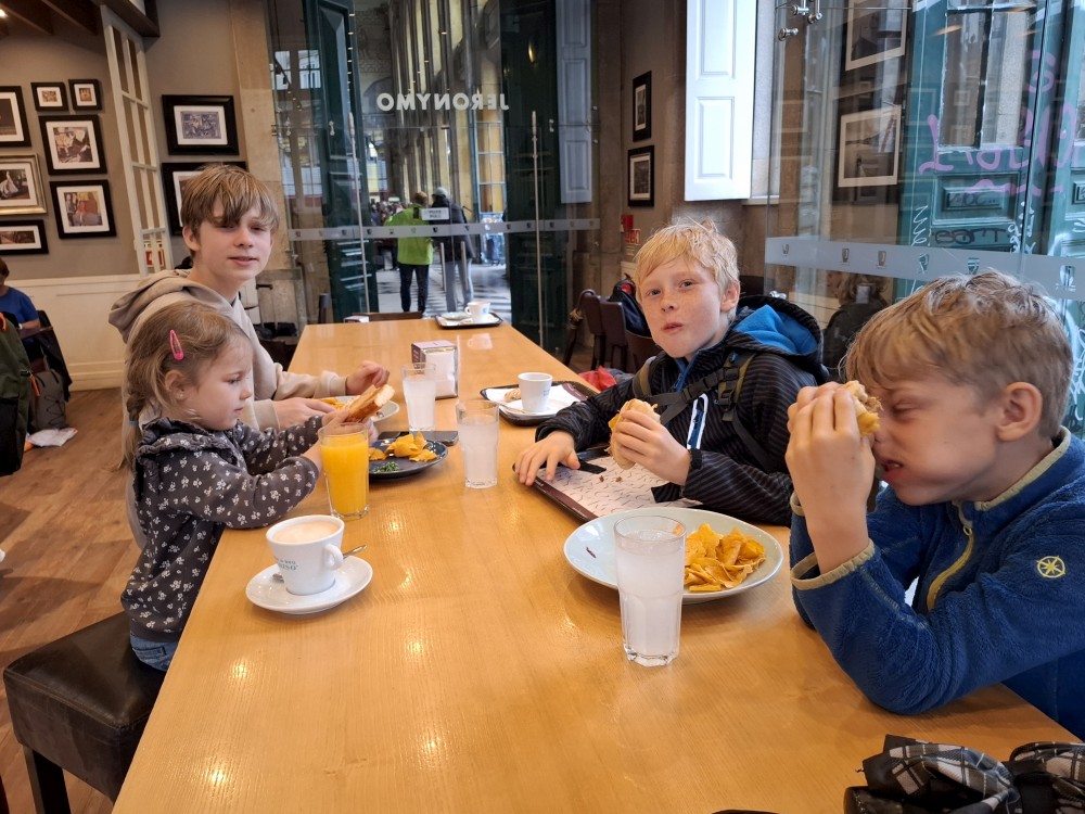 Ráno jdeme s Janou hledat obchod. Bětuška ještě spí. Nachodíme toho celkem dost, vystoupáme dost schodů, ale všechny obchody jsou zavřené. Daří se nám koupit jen něco málo pečiva a v jedné kavárně nějaké croissanty. Na skromnou snídani to ale stačilo. Venku hodně prší. Hrajeme kvízy na Kahoot. Pak bereme bundy a deštníky a jdeme do města.