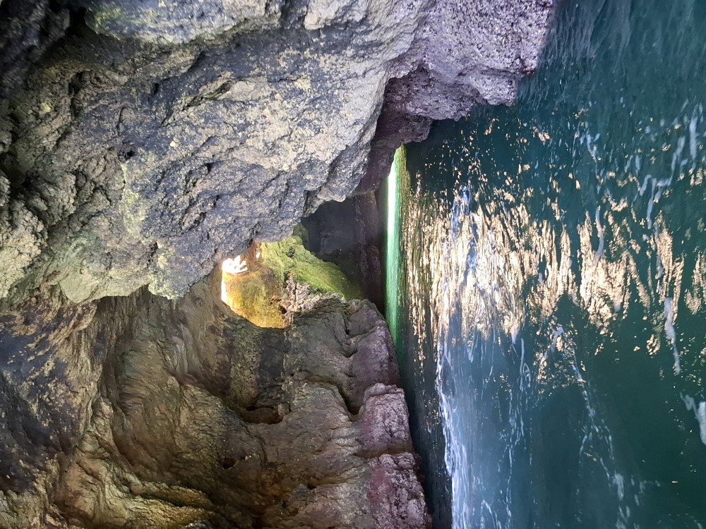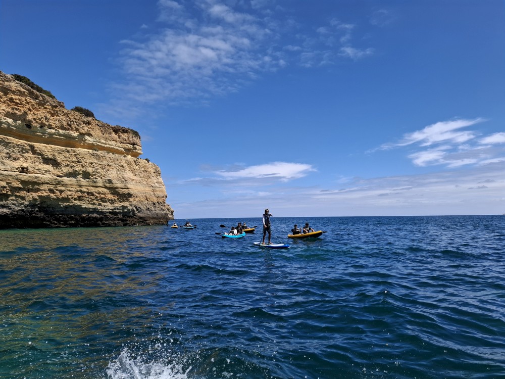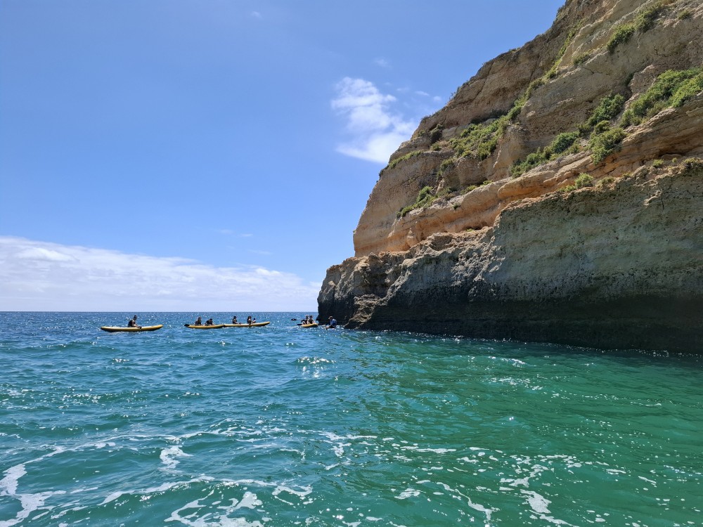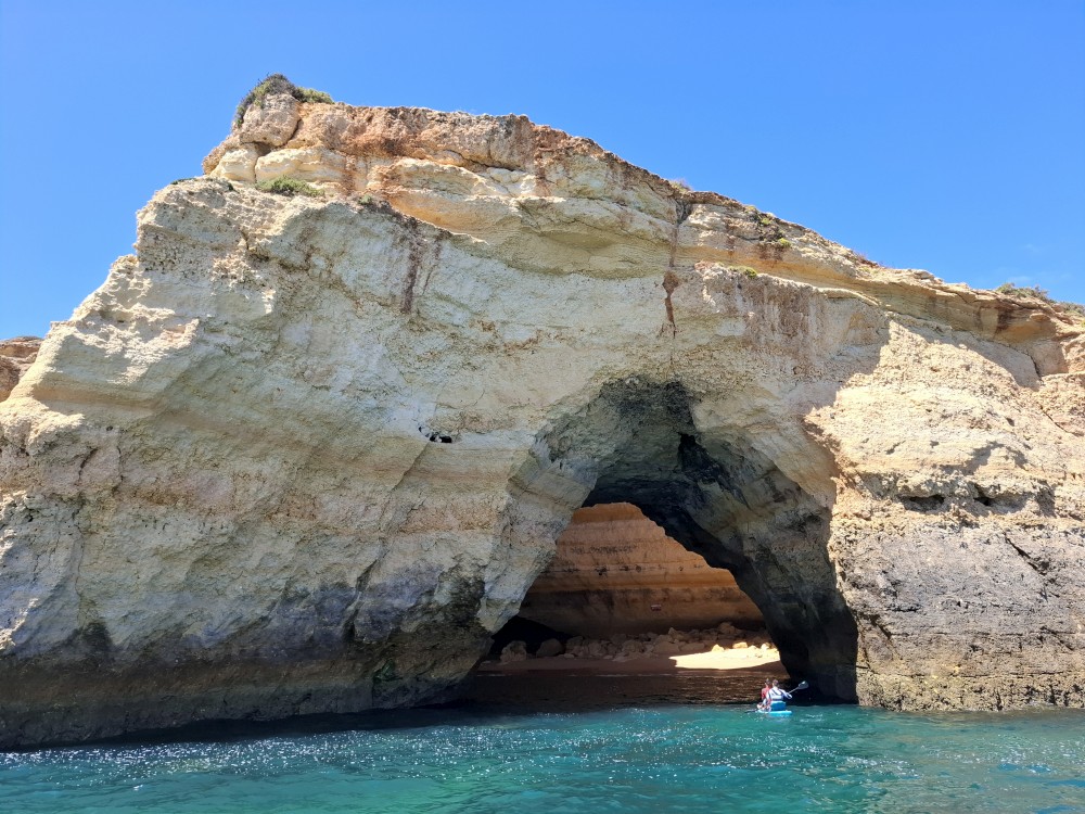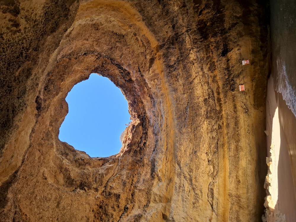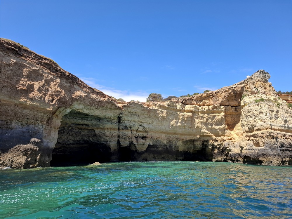Vyrážíme ve 14:30 a je to velký zážitek. Dostáváme se asi do pěti jeskyní, jeskyně Benagil, jeskyně Krokodýl, jeskyně Paradise, jeskyně Želva atd. Plujeme až k pláži Marinha, prý nejkrásnější pláži v Portugalsku a v TOP 10 evropských pláží dle Nacional Geographic.