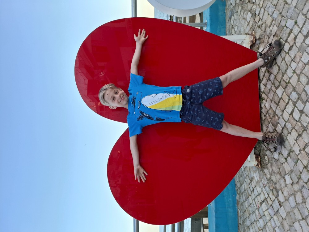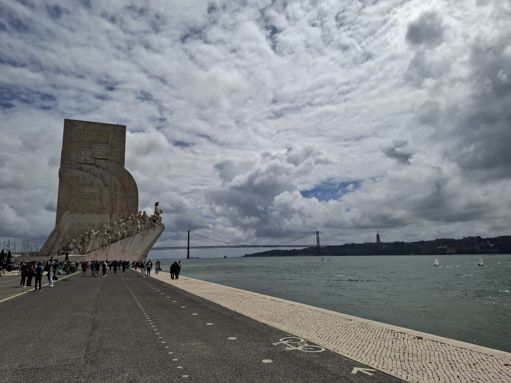 Ráno jdu nakoupit na snídani. Snídáme ve společné jídelně s výhledem na oceán. Balíme a dáváme věci do auta. Jdeme se ještě podívat na pláž. Pak už vyrážíme do Lisabonu. Zastavujeme ve čtvrti Belém, na placeném parkovišti kousek od kláštera Jeronýmů. Procházíme parkem směrem k nábřeží, jdeme podchodem pod silnicí a jsme u památníku objevitelů - Miradouro do Padrão dos Descobrimentos.