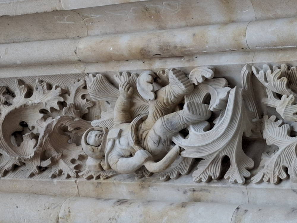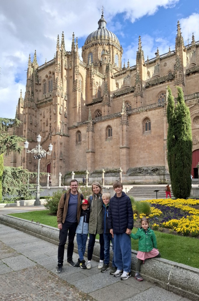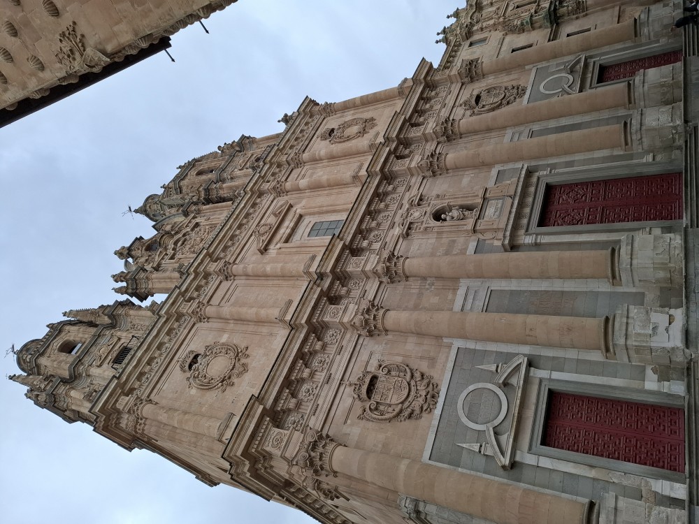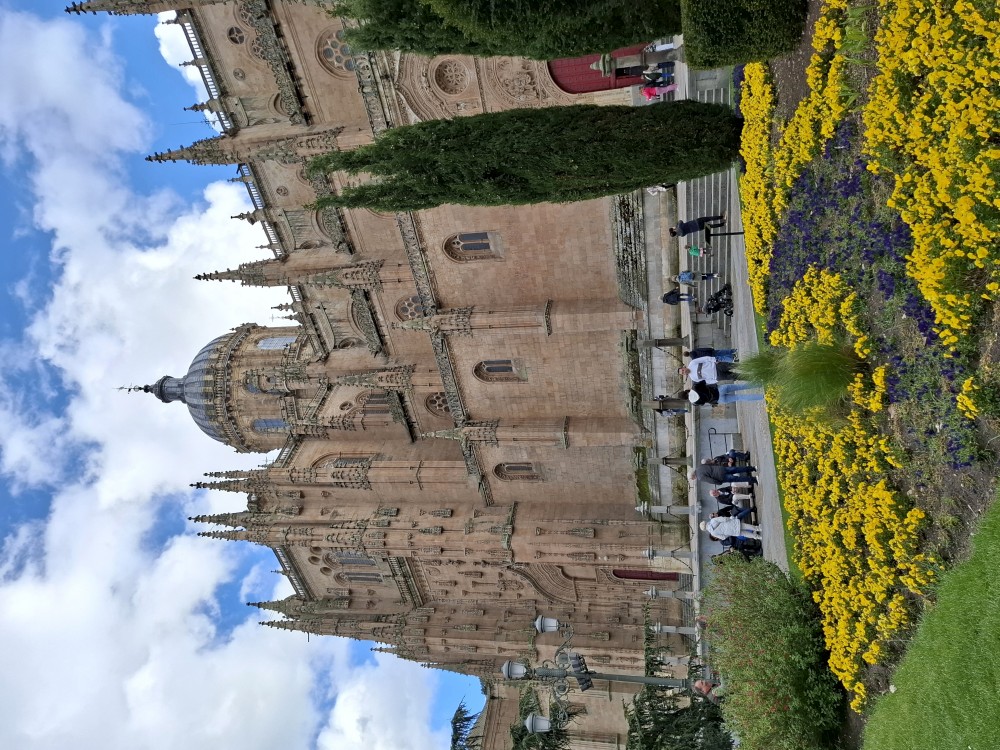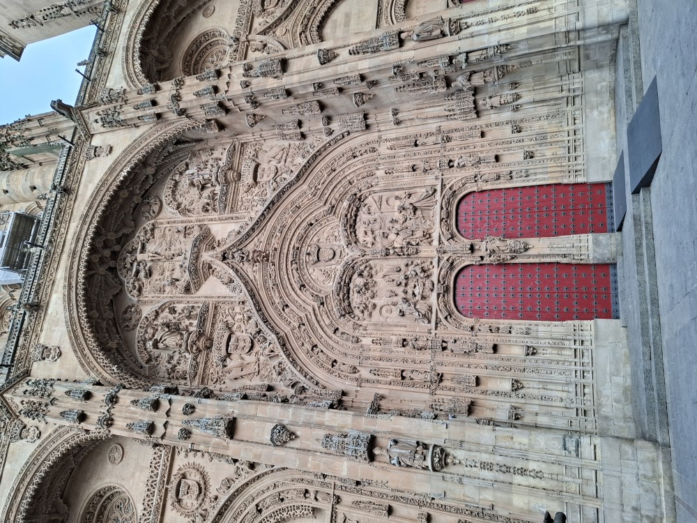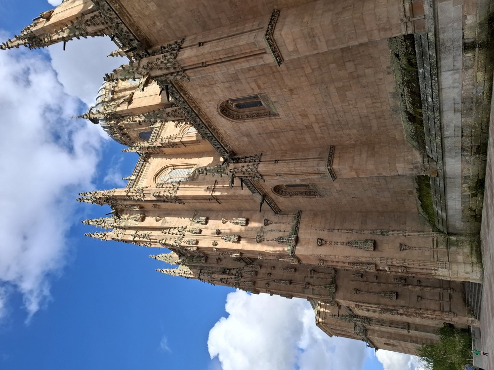 Odtud pokračujeme k impozantní katedrále Catedral Nueva de Salamanca (nová katedrála). U hlavního vstupu do katedrály nacházíme místní architektonický vtípek, kosmonauta vytesaného do kamenného portálu - vtípek restaurátorů portálu. Pokračujeme kolem staré katedrály Catedral Vieja na kamenný most Puente romano.