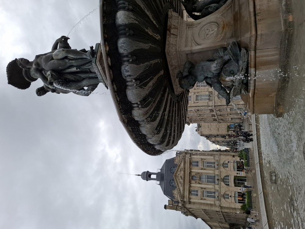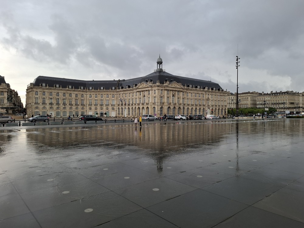 Pokračujeme po nábřeží na náměstí Place de la Bourse, kde je kašna Les Trois Grâces a klasicistní domy. Je zde velká plocha posetá malými fontánkami, které stříkají vodu a z plochy tak vtváří velké zrcadlo, ve kterém se odrážejí budovy na náměstí. V jednu chvíli přestávají fontánky stříkat, Bětuška s Martínkem se procházejí po ploše. Najednou se začíná ze spar vylévat voda. Než stihnou opustit plochu, mají úplně mokré boty.
