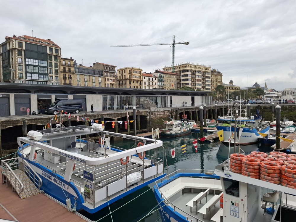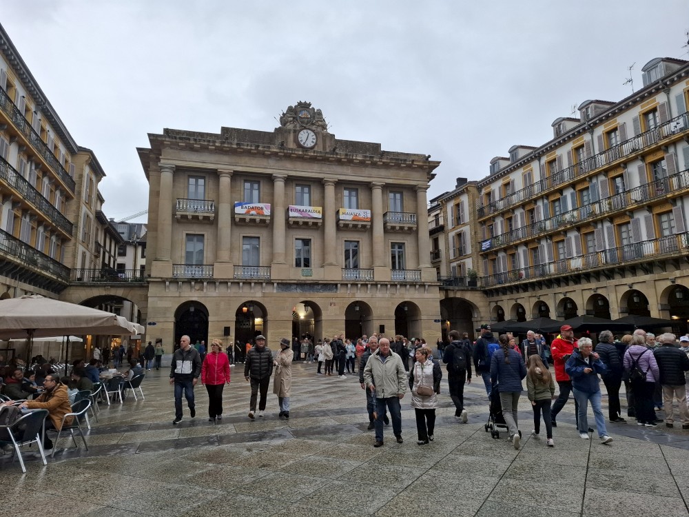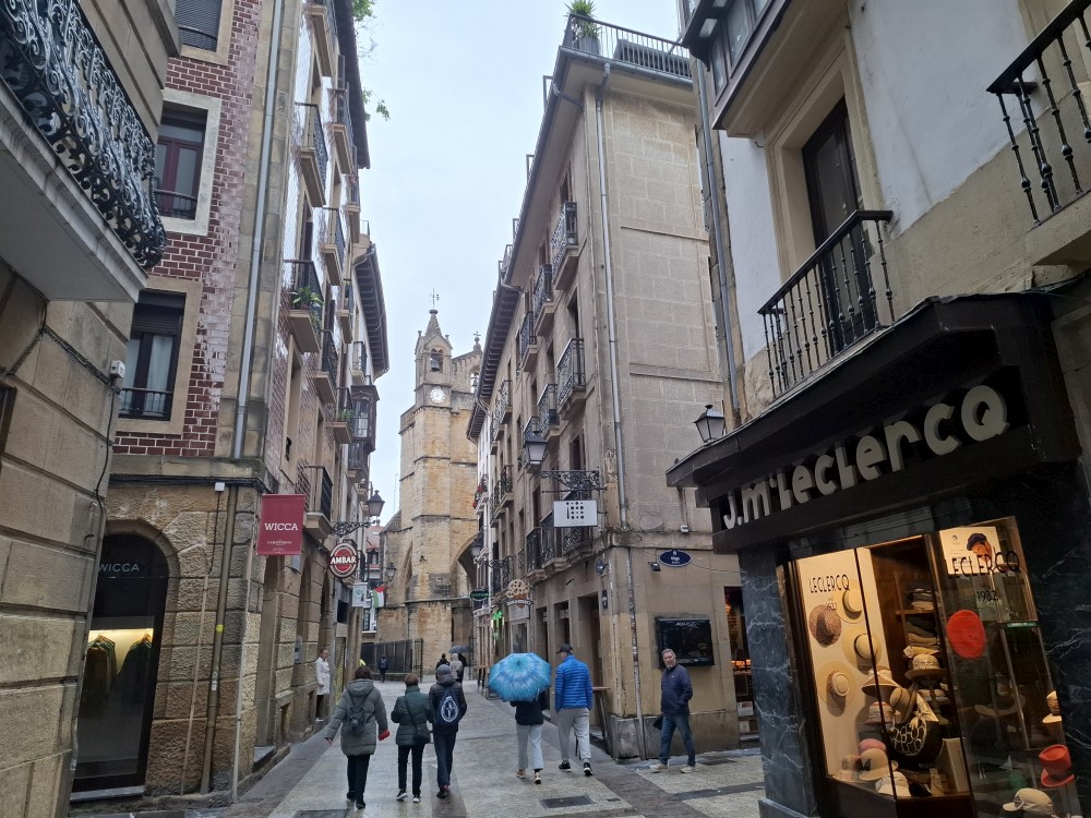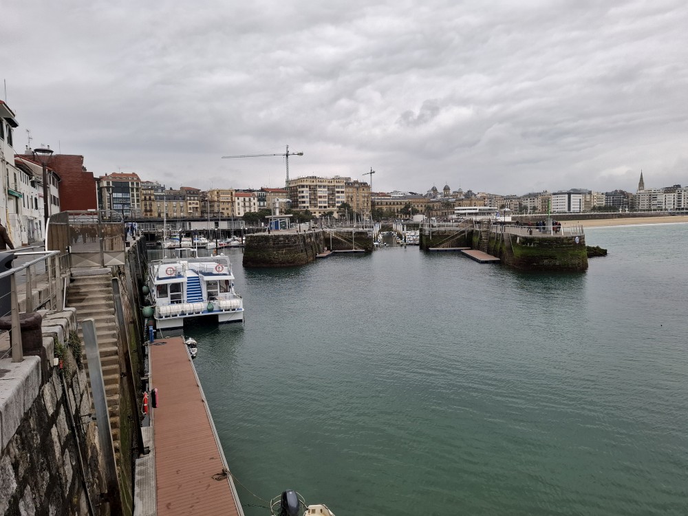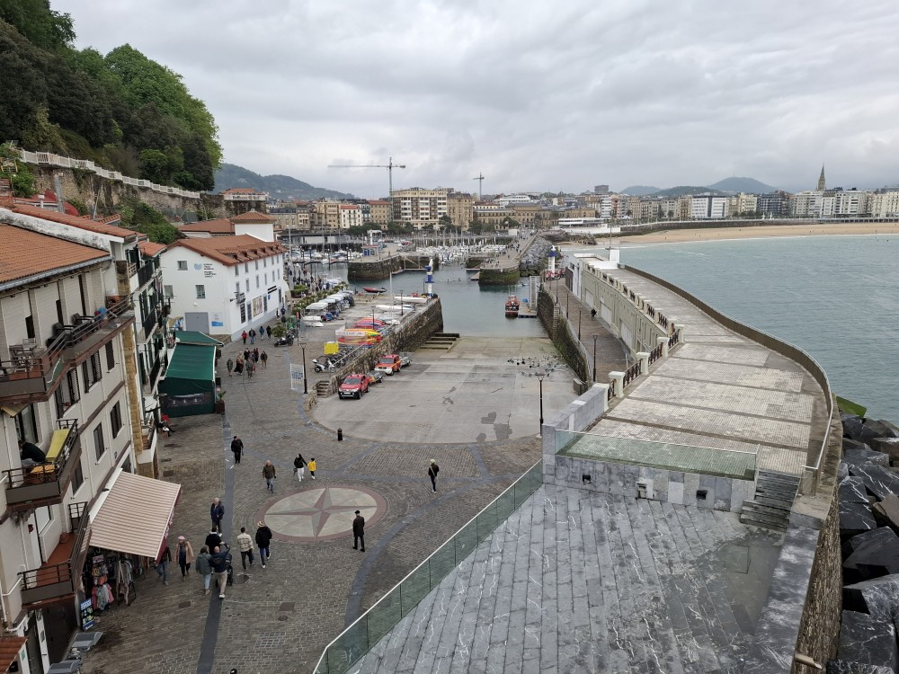 Obcházíme po promenádě celý poloostrov okolo vrcholu Urgull. Dostáváme se do přístavu, kde se nám otevírají výhledy na slavnou městskou pláž ve tvaru podkovy, která se skrývá před vlnami v široké zátoce, a také na ostrov Santa Klara. Jedeme výtahem do centra. Procházíme uličkami, navštěvujeme baziliku Saint Mary of the Chorus. Pak zastavujeme v jedné restauraci, tapasárně. Každý vybíráme jeden tapas. Máme třeba houstičku s chobotnicí, houstičku s vinnými klobáskami, s nakládanou rybou a sardinkami.