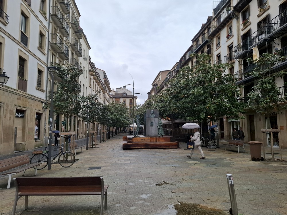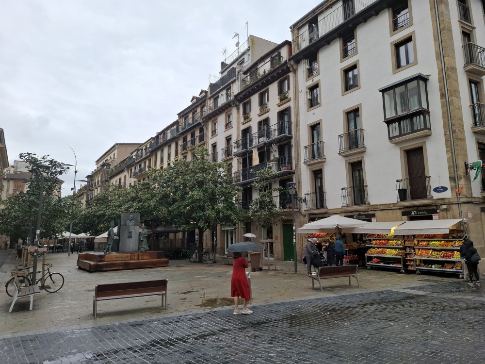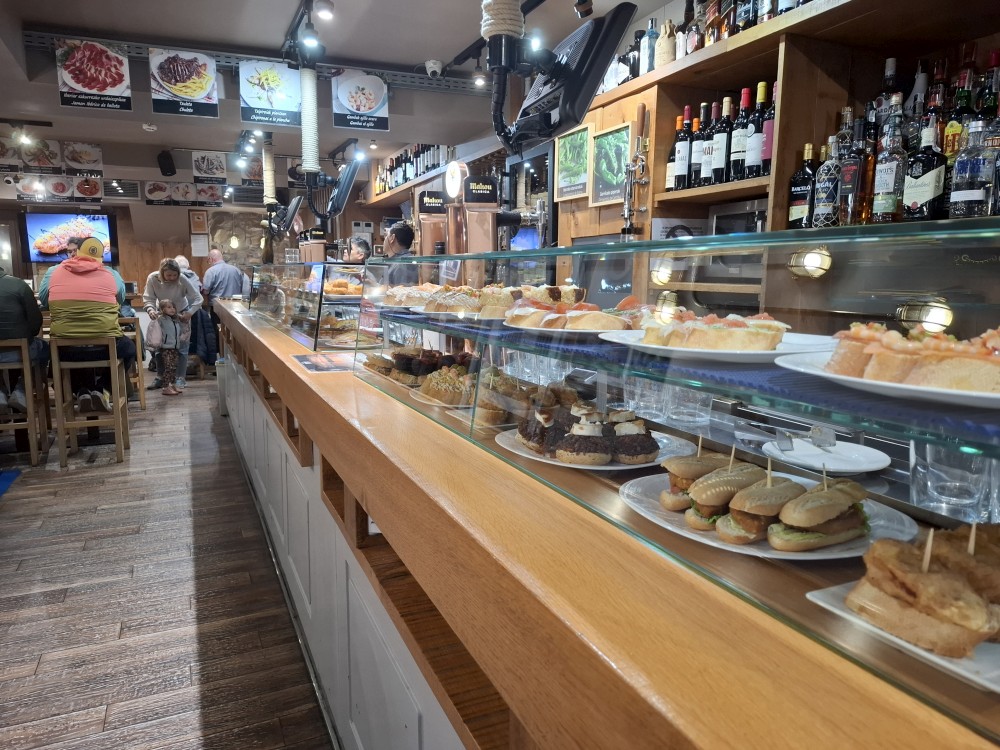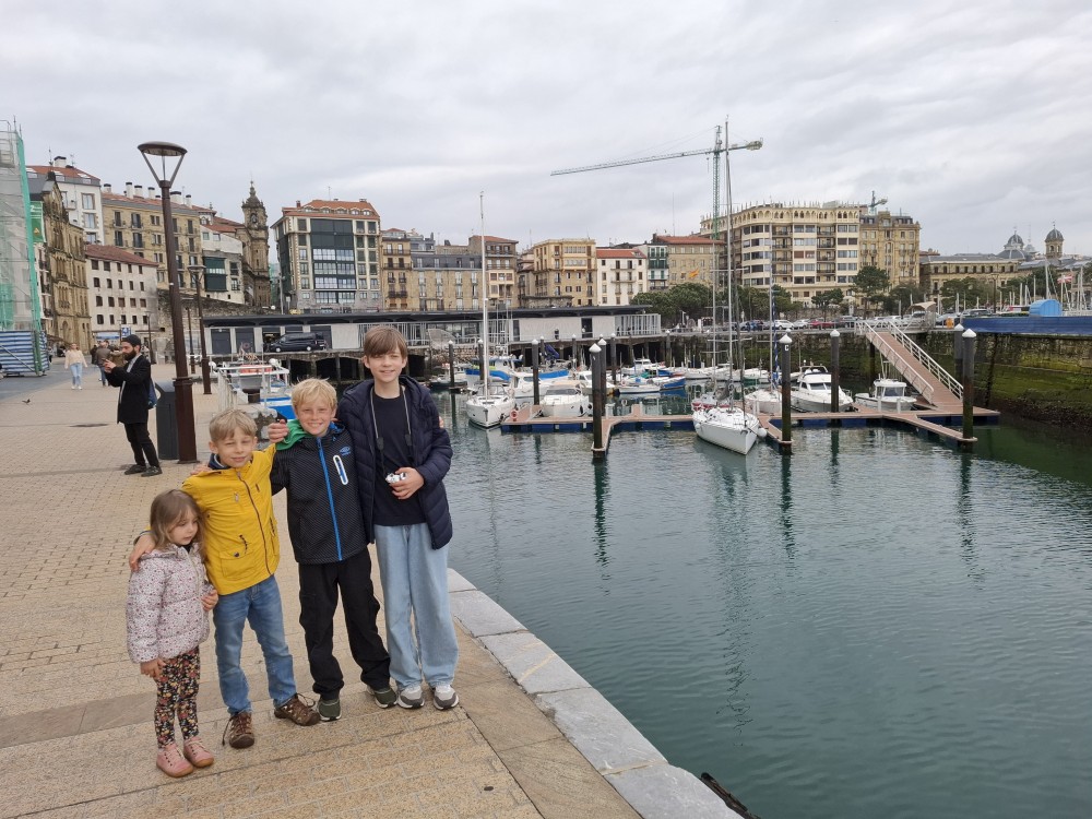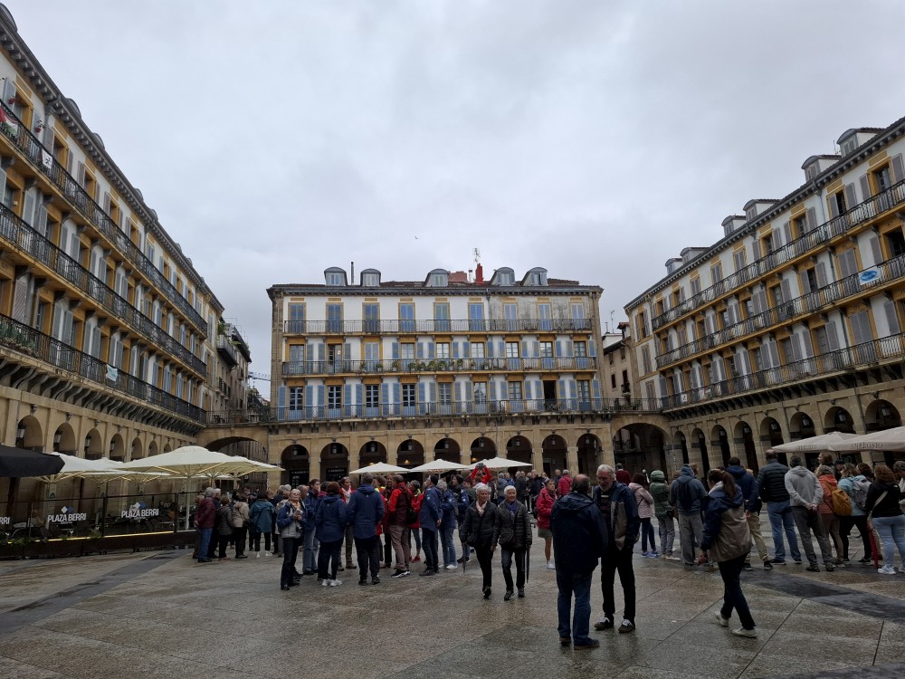 Obcházíme po promenádě celý poloostrov okolo vrcholu Urgull. Dostáváme se do přístavu, kde se nám otevírají výhledy na slavnou městskou pláž ve tvaru podkovy, která se skrývá před vlnami v široké zátoce, a také na ostrov Santa Klara. Jedeme výtahem do centra. Procházíme uličkami, navštěvujeme baziliku Saint Mary of the Chorus. Pak zastavujeme v jedné restauraci, tapasárně. Každý vybíráme jeden tapas. Máme třeba houstičku s chobotnicí, houstičku s vinnými klobáskami, s nakládanou rybou a sardinkami.