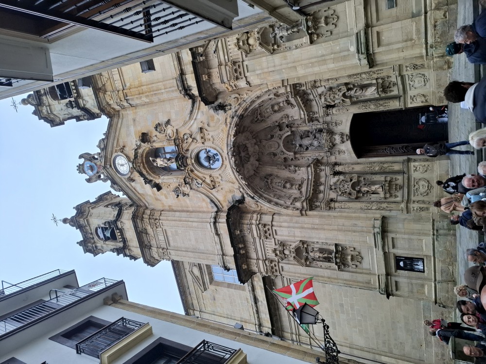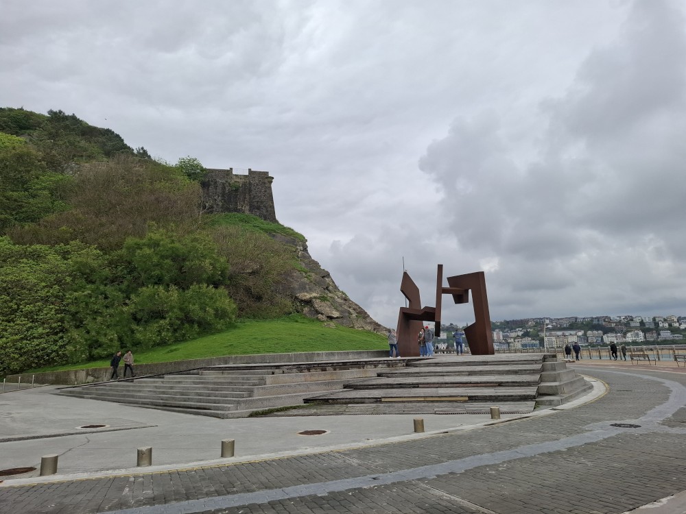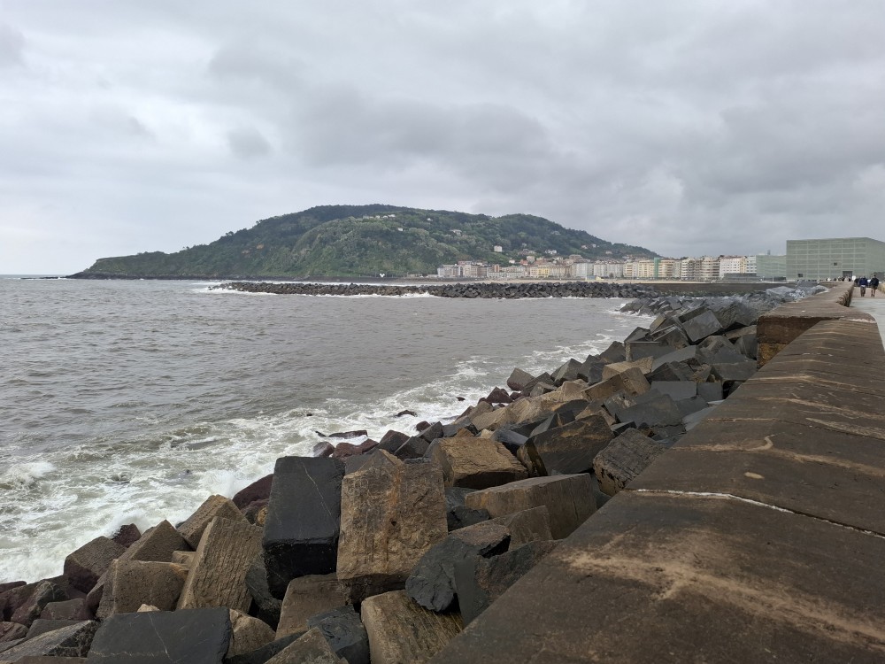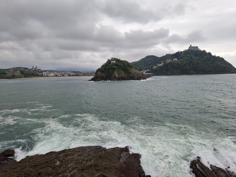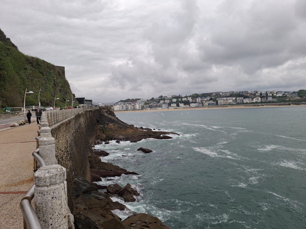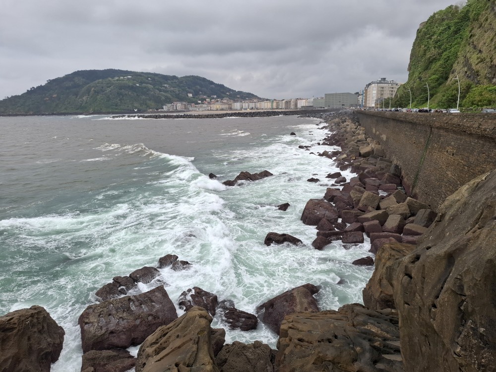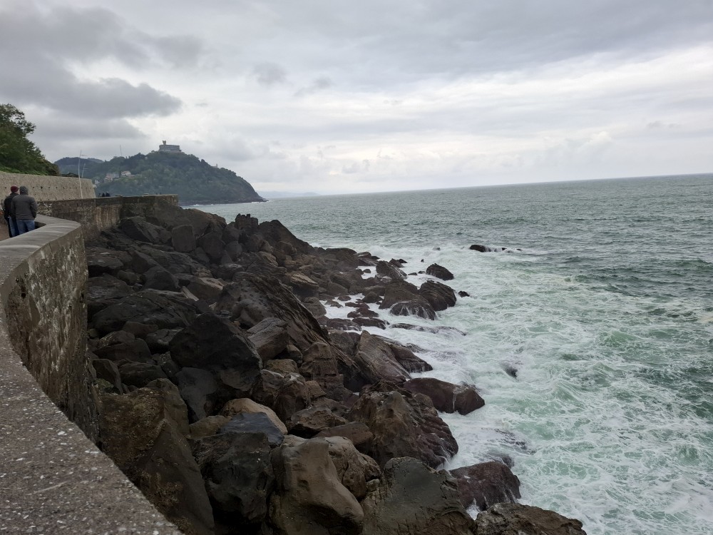 Ráno se probouzíme kolem 8 (já spíš kolem 6), balíme, sedáme do auta. Asi po dvou hodinách opouštíme Francii a vjíždíme do Španělska. Zastavujeme v San Sebastianu na rychlou prohlídku. Auto necháváme v podzemní garáži Boulevard, jen tak tak jsme se tam s rakví vešli. Vyrážíme do ulic centra. Prohlížíme si hezký kostel San Bizente Martiria-San Vicente Mártir a přicházíme k oceánu. Jsou tu velké vlny a masívní vlnolamy z obrovských kamených bloků.