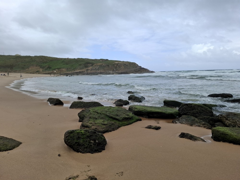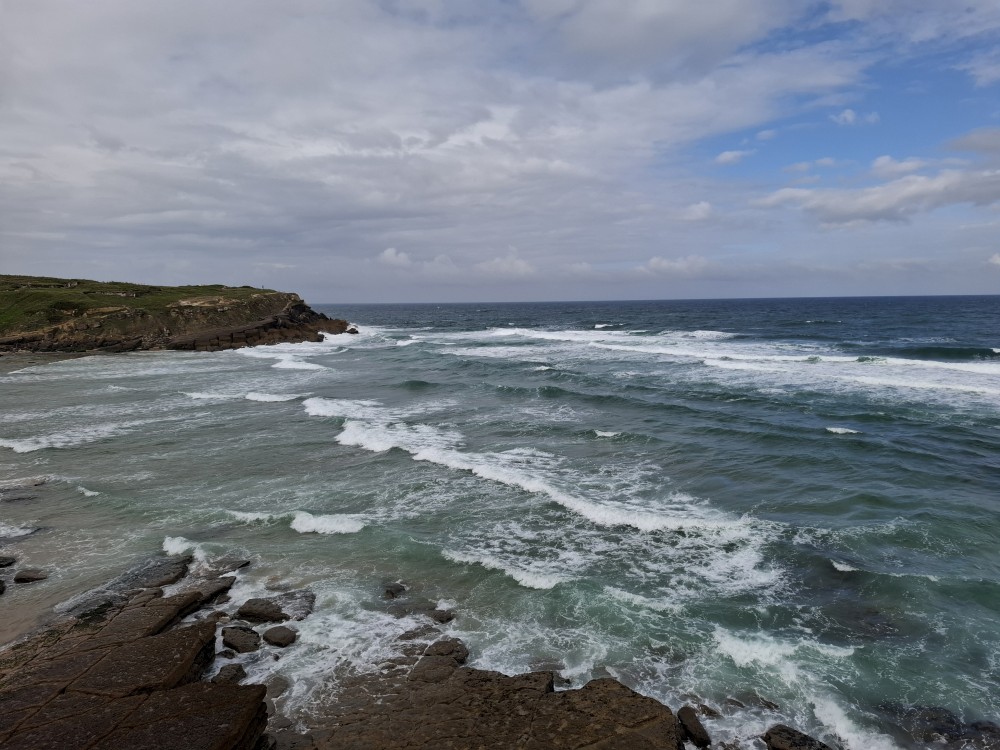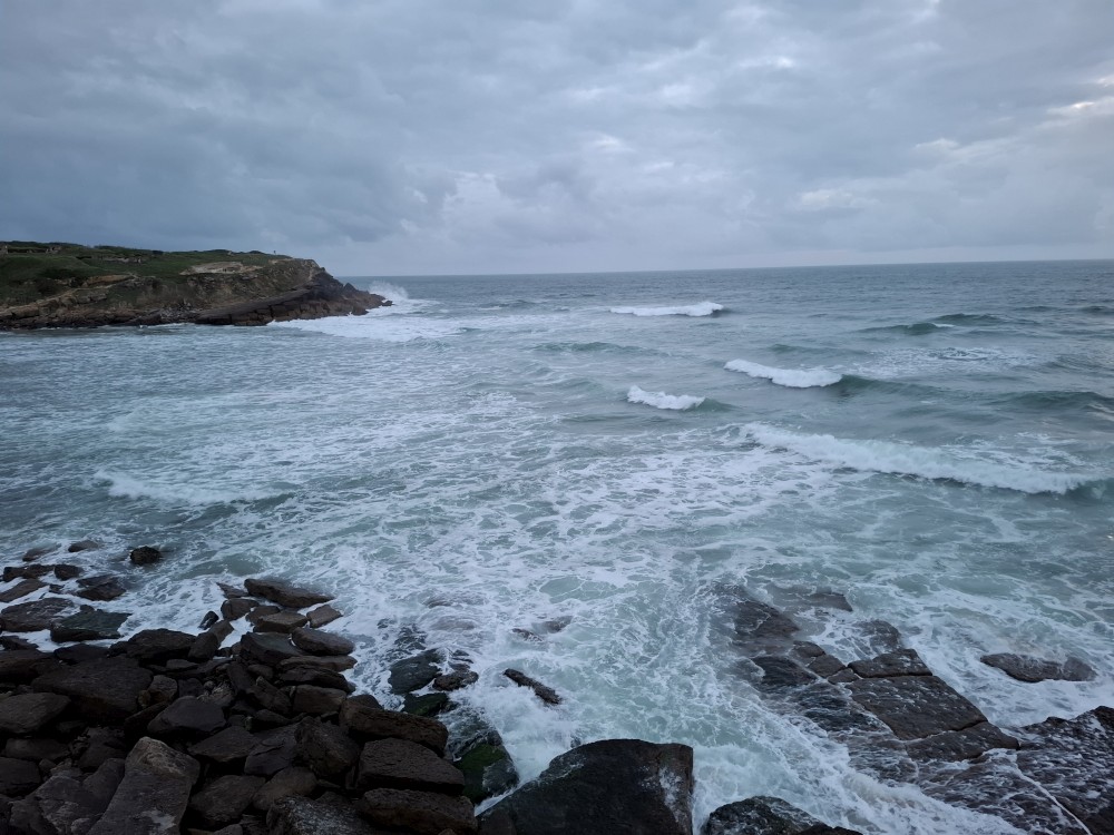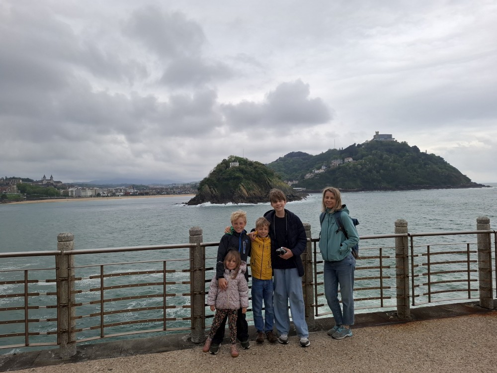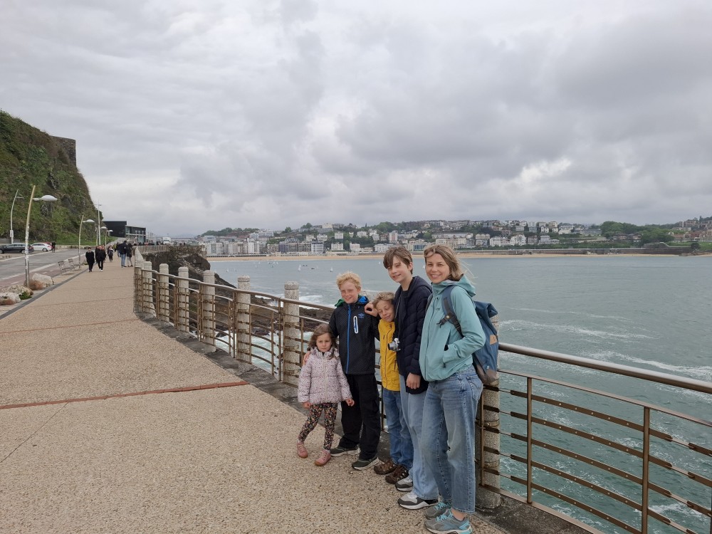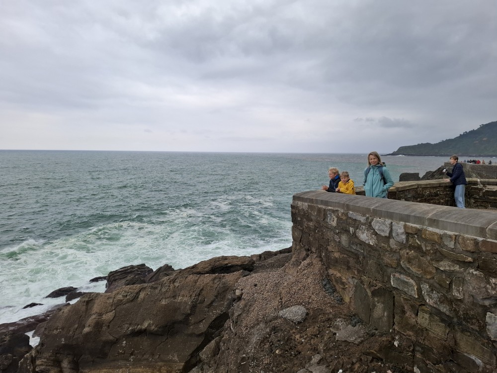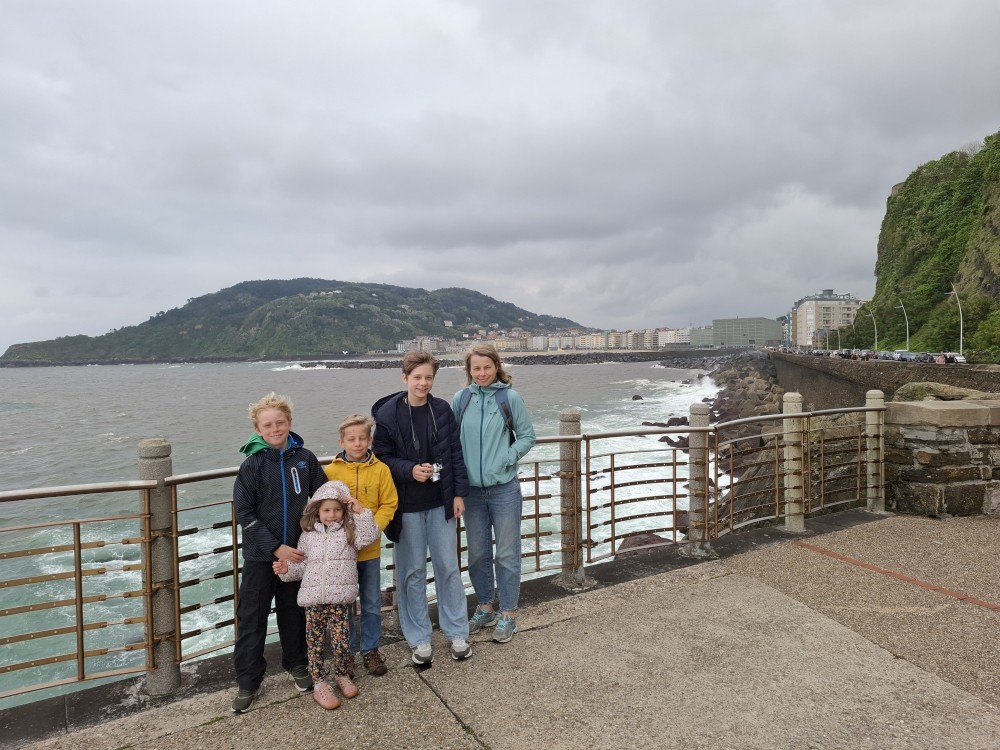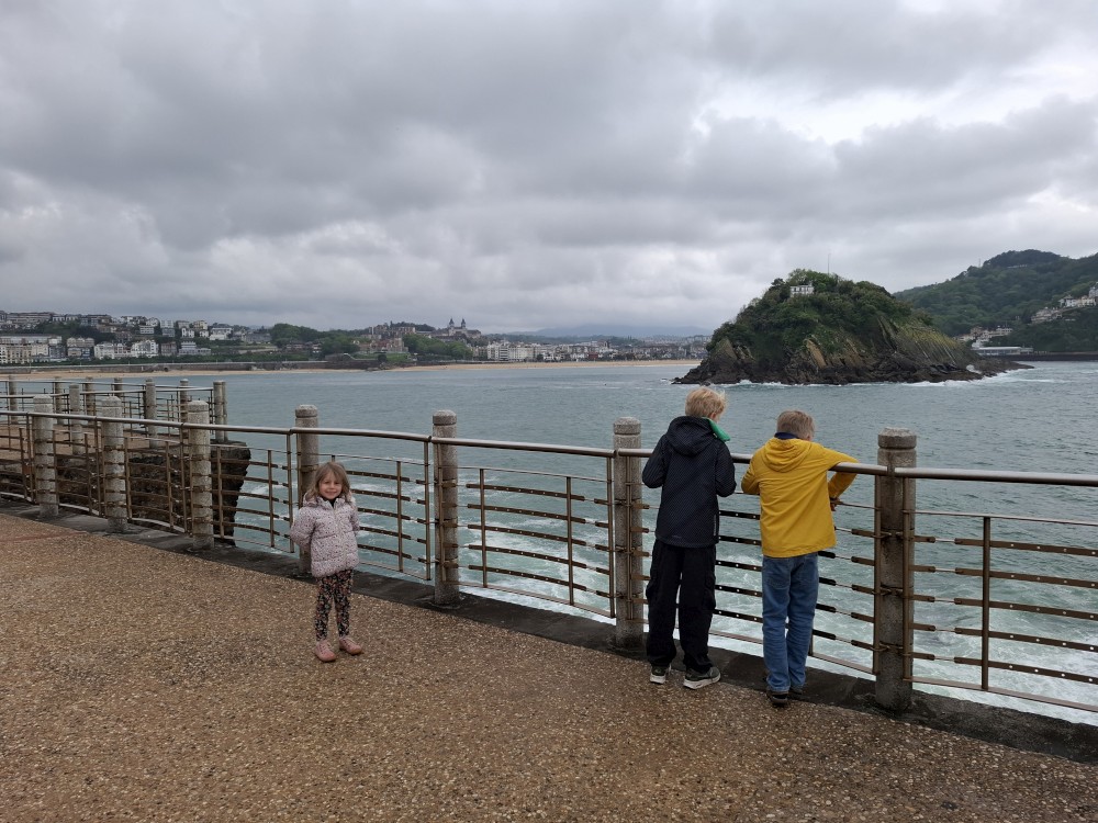 Ráno se probouzíme kolem 8 (já spíš kolem 6), balíme, sedáme do auta. Asi po dvou hodinách opouštíme Francii a vjíždíme do Španělska. Zastavujeme v San Sebastianu na rychlou prohlídku. Auto necháváme v podzemní garáži Boulevard, jen tak tak jsme se tam s rakví vešli. Vyrážíme do ulic centra. Prohlížíme si hezký kostel San Bizente Martiria-San Vicente Mártir a přicházíme k oceánu. Jsou tu velké vlny a masívní vlnolamy z obrovských kamených bloků.
