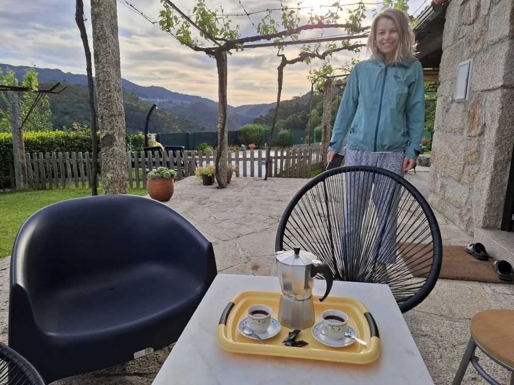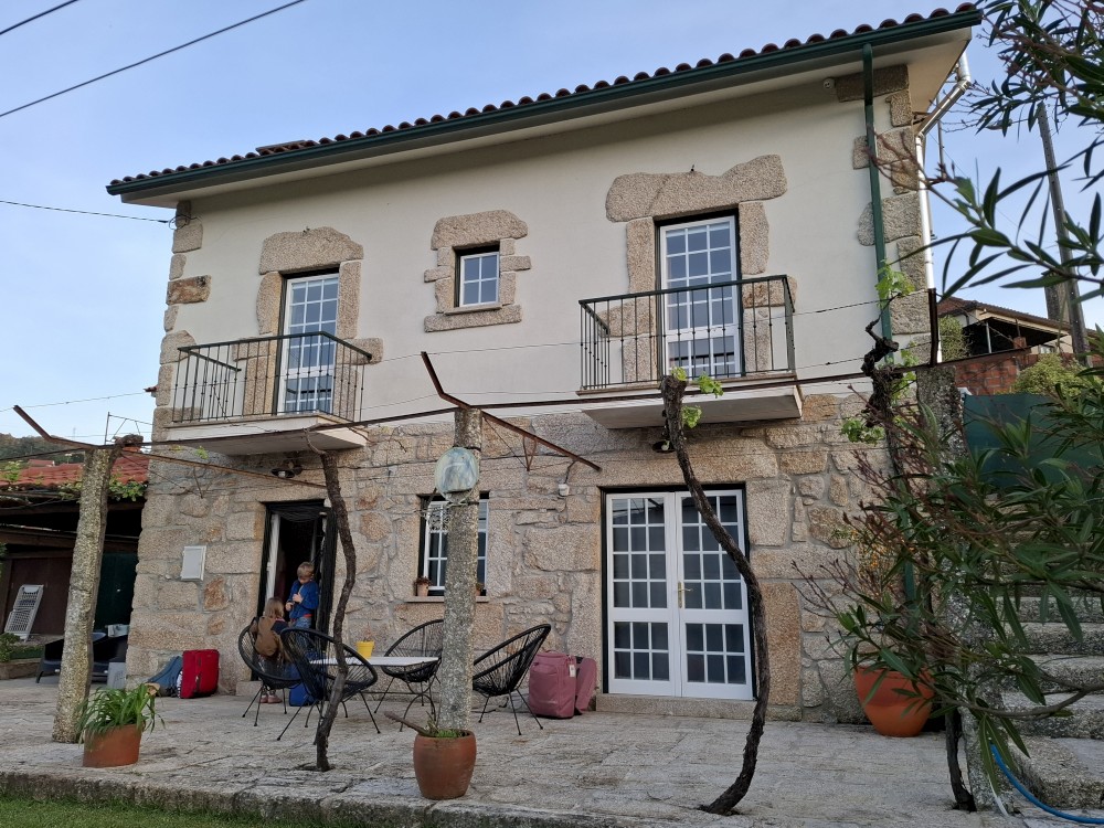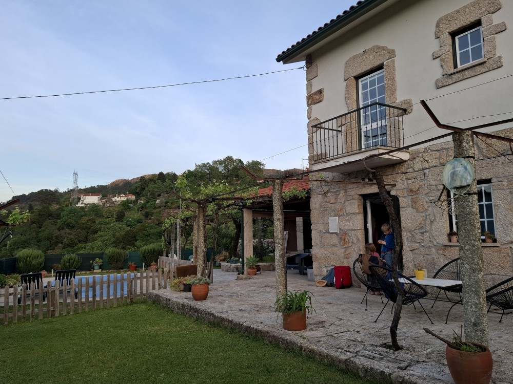 Zajíždíme podle směrovek přímo k domu, ale cesta je extrémně úzká a navíc slepá. Na konci cesty se nám nakonec pomocí složitého popojíždění po centimentech dopředu a dozadu daří otočit a opustit tuto past. Mezitím přijíždí portugalská paní, která nám předává ubytování. Umí jen portugalsky, takže základy španělštiny se celkem hodily.