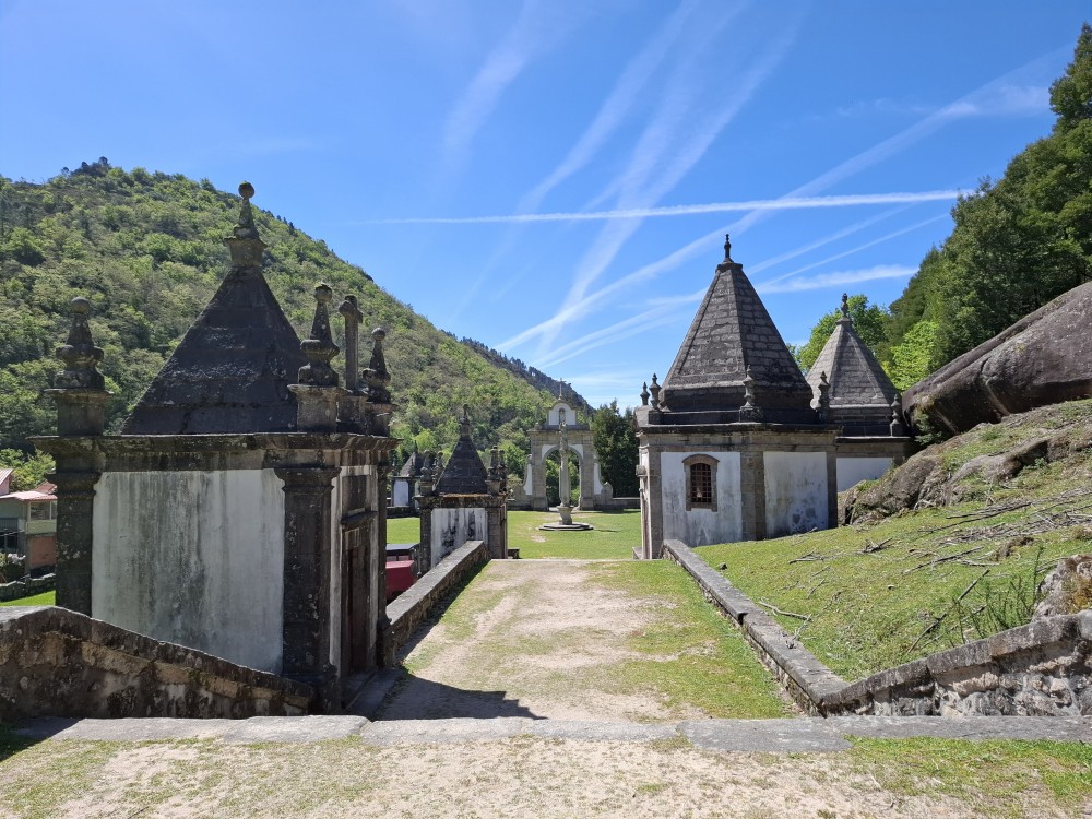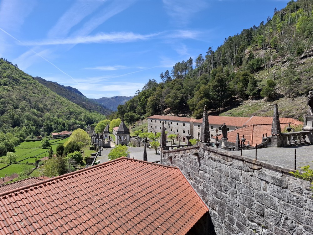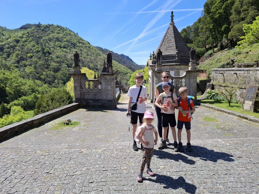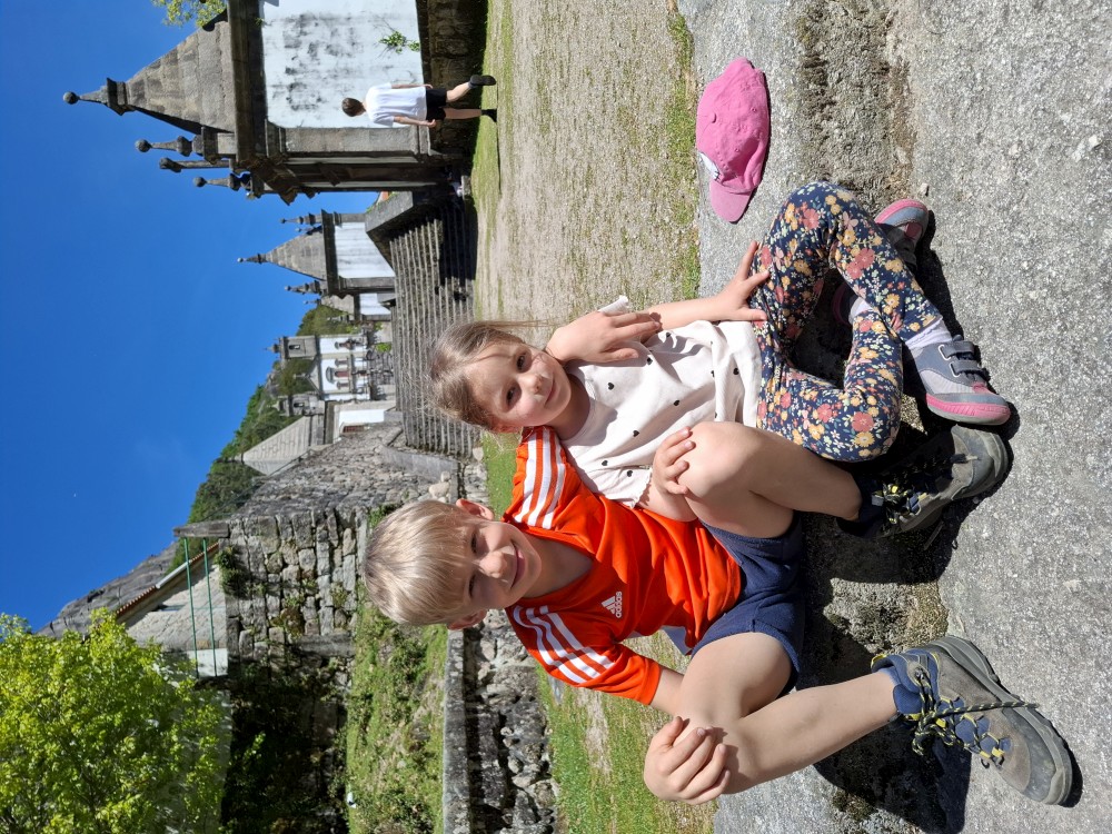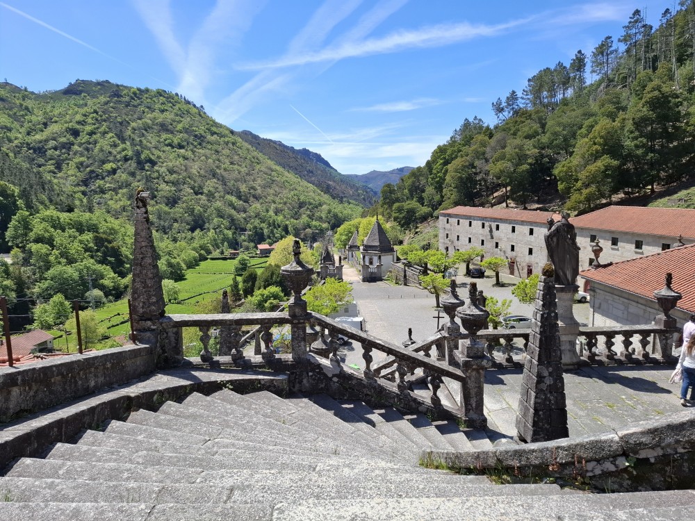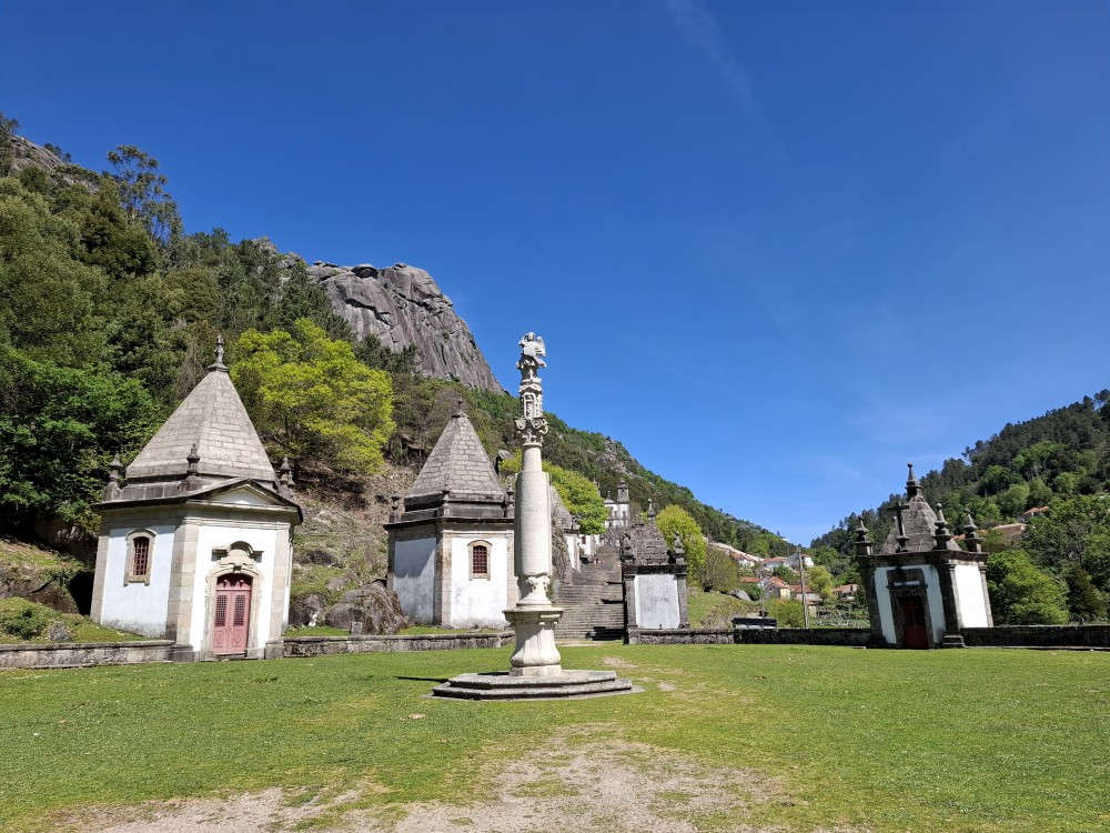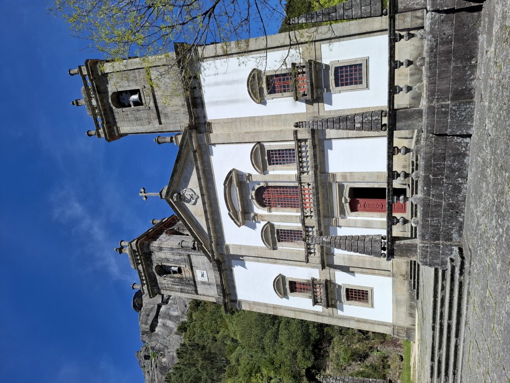 Parkujeme v Penedě hned u poutního kostela. Je to zmenšenina Bom Jesus u Bragy. Nejprve jdeme dolů od kostela po křížové cestě a pak zase zpět. V obchůzku před kostelem kupujeme Jiříkovi a Martínkovi portugalské fotbalové míče. Dáváme je do auta. Občerstvení vedle auta, kde jsme si plánovali dát nějaký oběd je bohužel zavřené. Škoda. Oběd si tedy dáme až po výletě do hor, který máme naplánován.