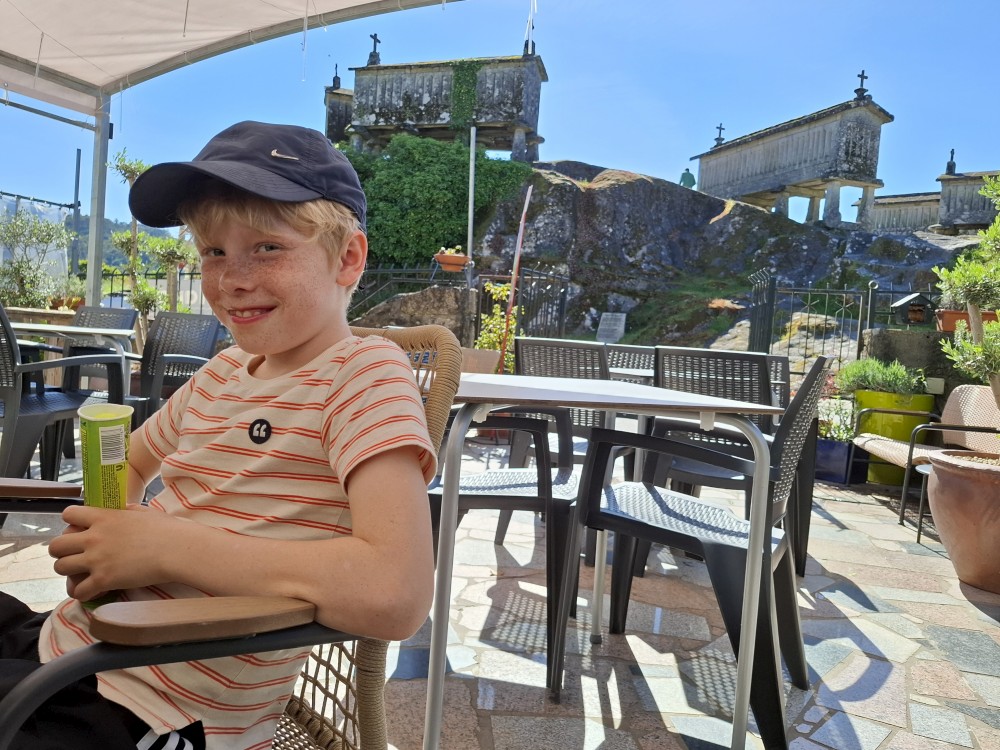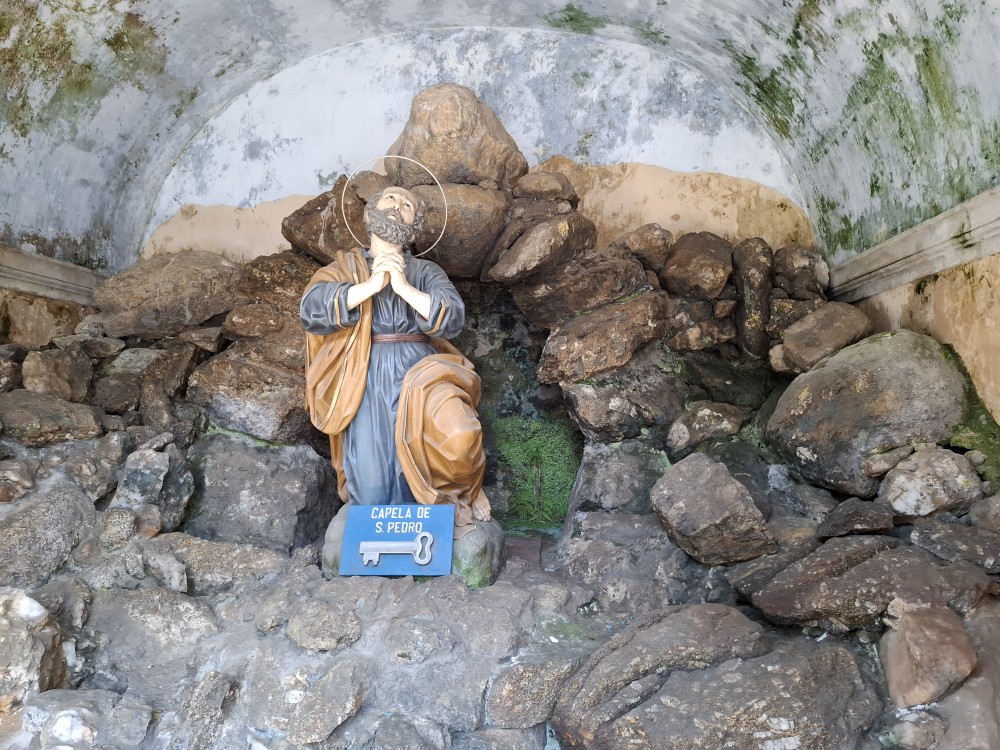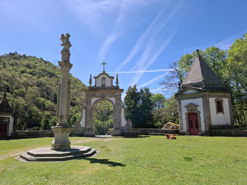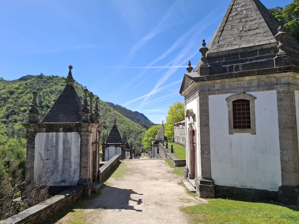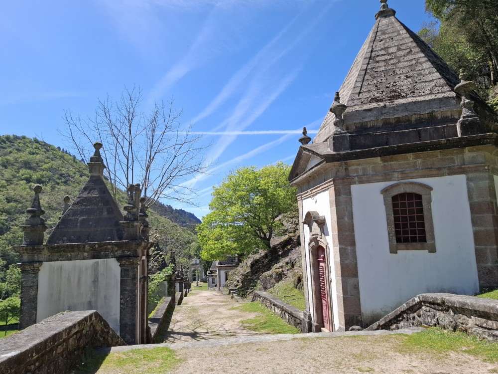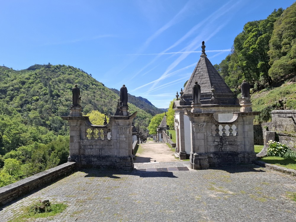 Parkujeme v Penedě hned u poutního kostela. Je to zmenšenina Bom Jesus u Bragy. Nejprve jdeme dolů od kostela po křížové cestě a pak zase zpět. V obchůzku před kostelem kupujeme Jiříkovi a Martínkovi portugalské fotbalové míče. Dáváme je do auta. Občerstvení vedle auta, kde jsme si plánovali dát nějaký oběd je bohužel zavřené. Škoda. Oběd si tedy dáme až po výletě do hor, který máme naplánován.