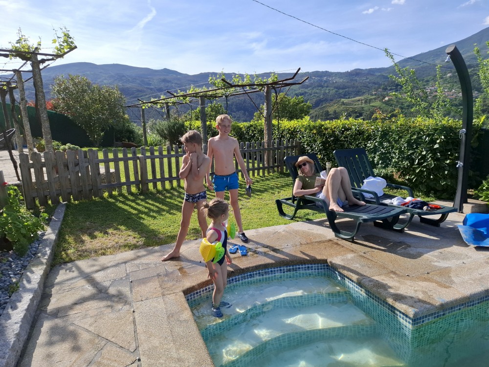 Kolem 20:30 (resp. 19:30 portugalského času) přijíždíme do Portugalska. Jedeme kolem velké vodní nádrže, kde přistávají na hladině letadla a nabírají vodu k hašení nějakého požáru, v dálce jsme viděli velký kouř. Pokračujem přes hory Peneda-Geres do Paradamontes, kde máme zamluvené ubytování v domě Casa Velha.
