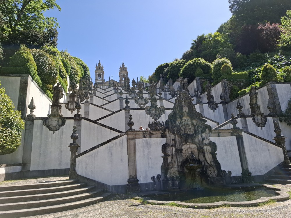 Probouzíme se v Casa Velha s dobrou náladou. Black-out skončil, takže můžeme bezstarostně pokračovat v naší cestě. Balíme, dáváme si snídani na terase, nosíme věci do auta. Opouštíme Paradamonte a jedeme směr Braga navštívit Bom Jesus de Monte. Cesta trvá hodinu. Zastavujeme na dolním parkovišti pod Bom Jesus. Na parkovišti je stánek, kde si dáváme toasty , zmrzlinu a nanuky.