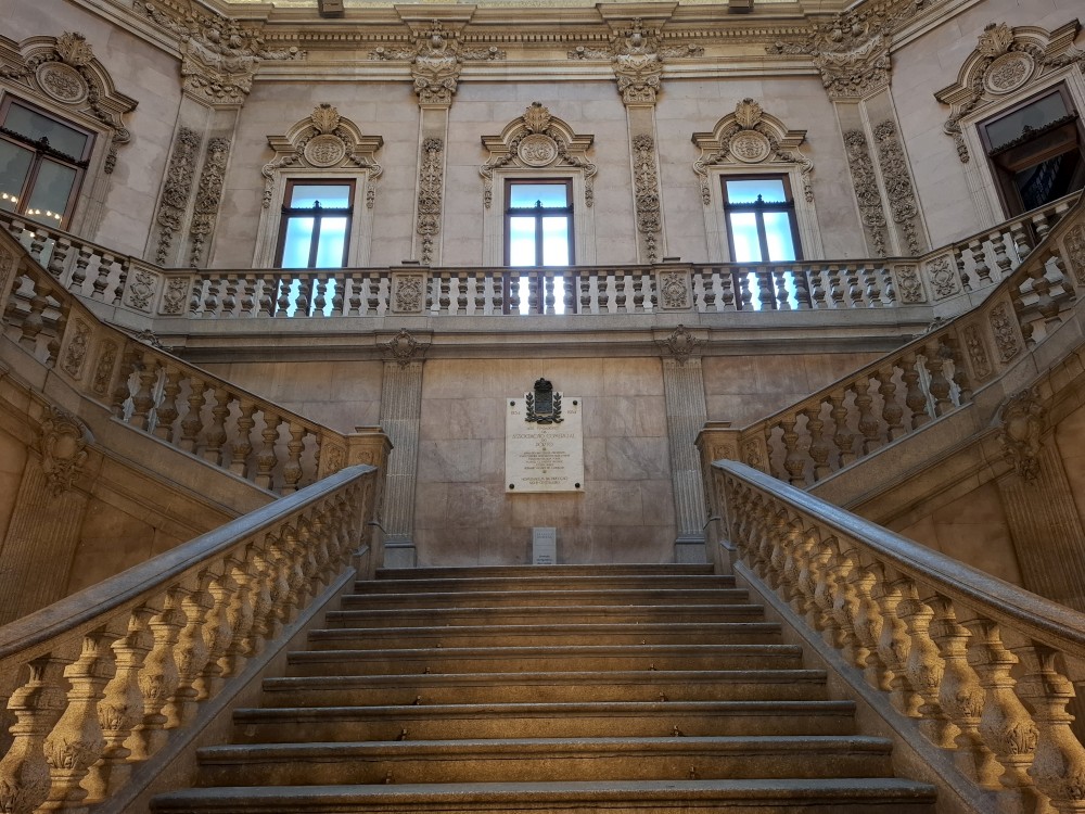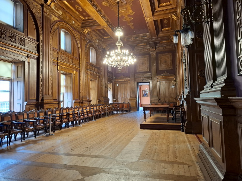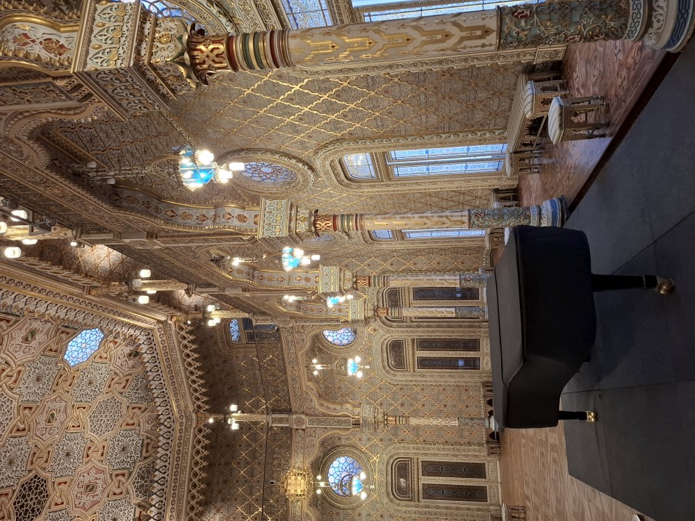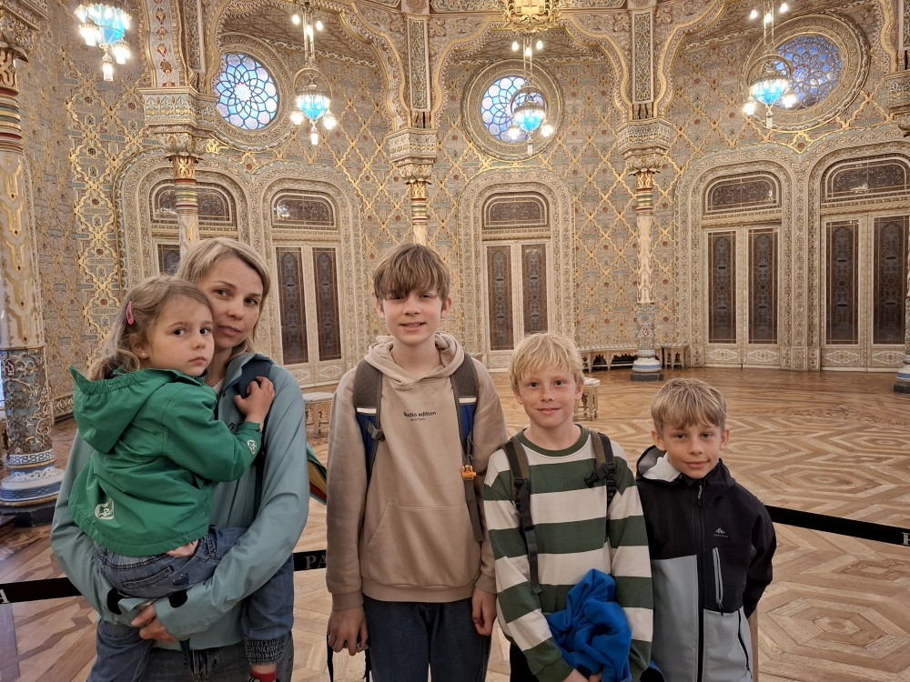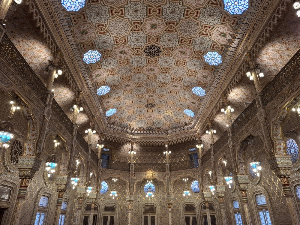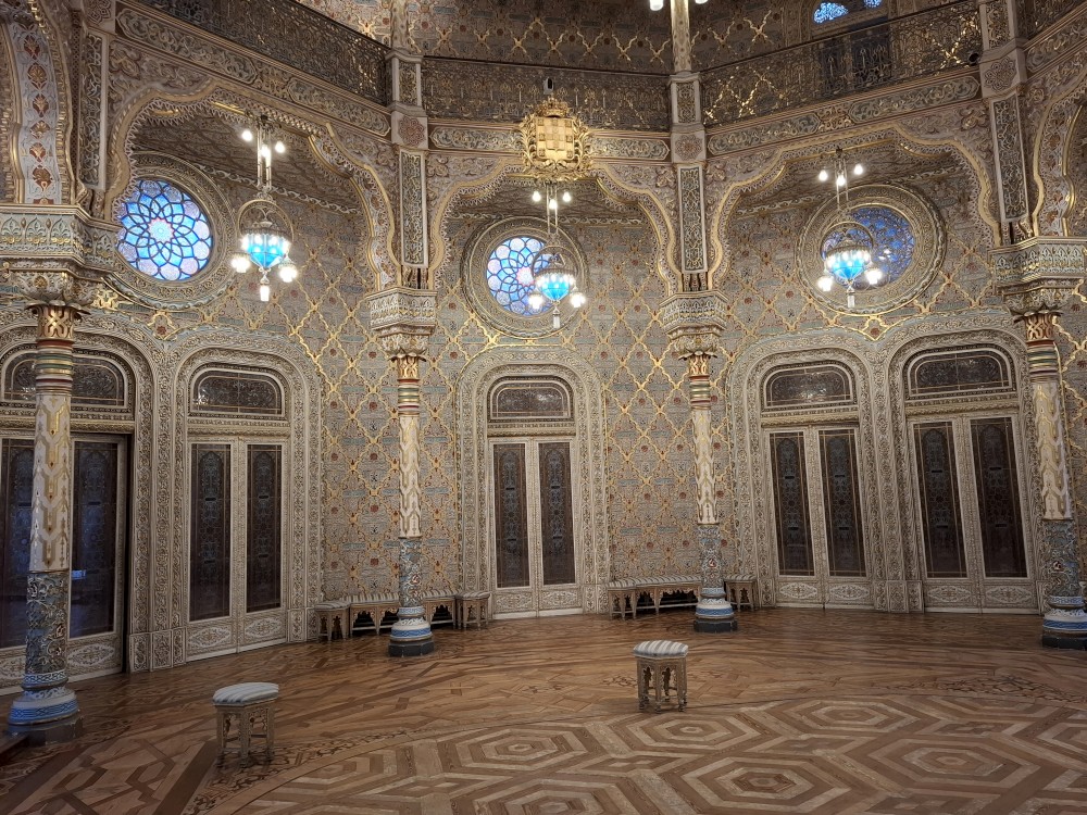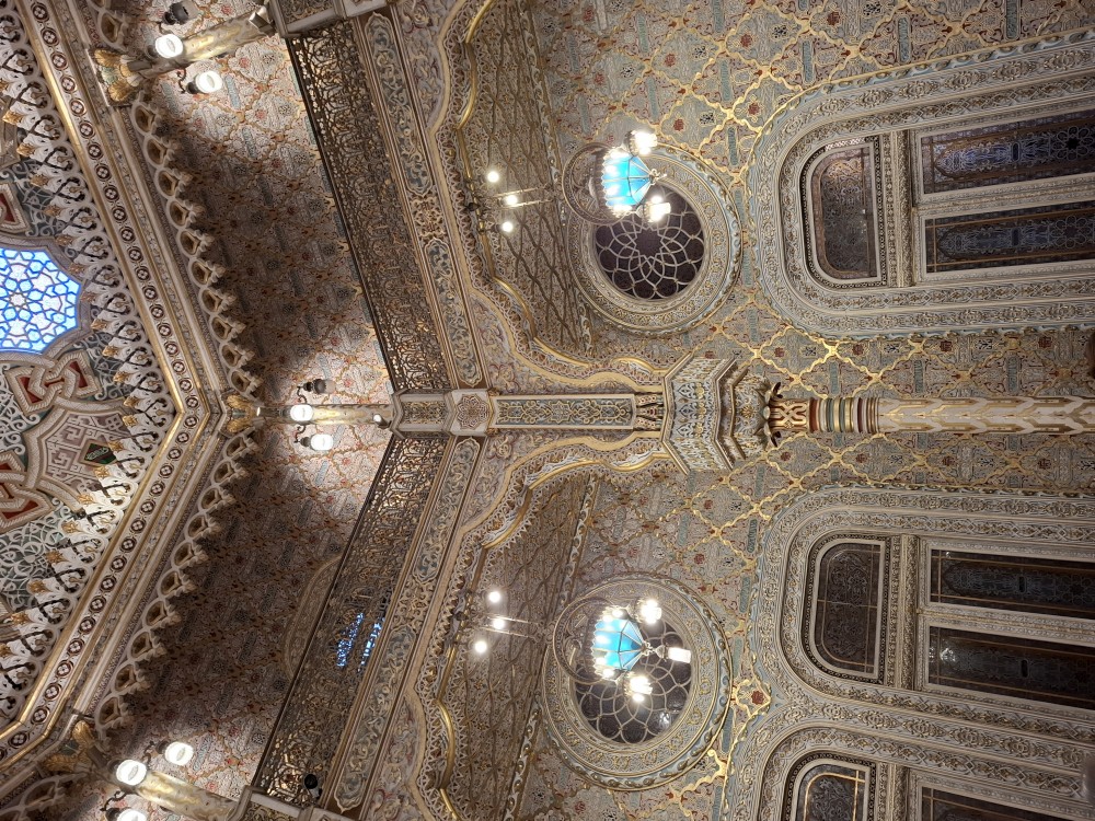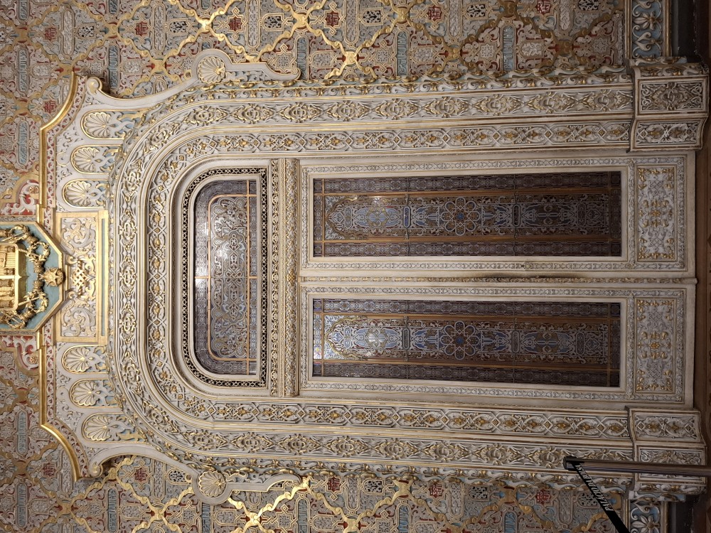 Prohlídka je s průvodcem, trvá asi 30 minut a je to v angličtině. Je to moc zajímavé a to nejhezší nás čeká na závěr - zlatý sál, prý nejkrásnější a nejreprezentativnější místnost v celém Portugalsku. Je tu také pracovna Luize, žáka Eifella, který navrhl ikonický kovový most v Portu. Po prohlídce si jdeme chvilku odpočinou na ubytování. Kluci dělají úkoly do školy, Jana opravuje písemnky.