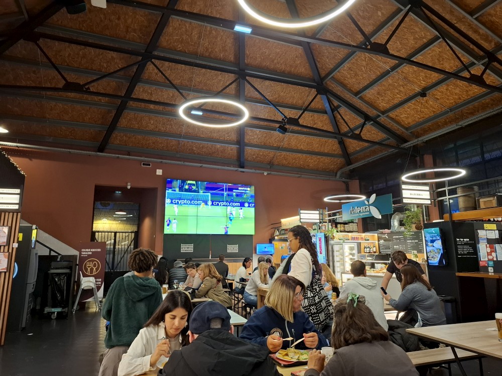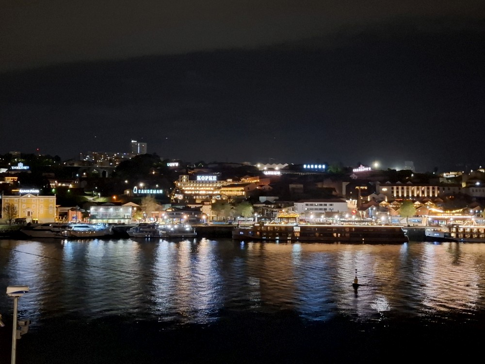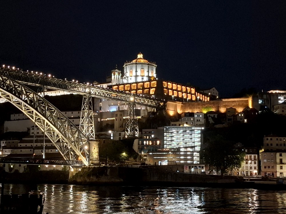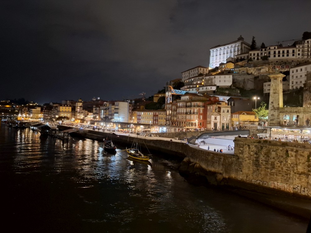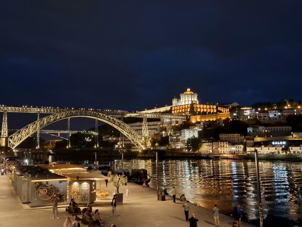 Jdeme po promenádě kolem řeky Duoro k mostu Ludvíka I. Je zde hodně restaurací a naháněčů. Je to tu dost drahé. Jdeme po mostě na druhou stranu řeky. Po druhém břehu jdeme celkem dlouho, podél lanovky až k budově, ve které jsou různé stánky s občerstvením. Uprastřed je mnoho stolů. Dáváme si hamburgery, hranolky, Víťa krevetový salát, portské víno. U toho můžeme sledovat fotbal na velké obrazovce. Dávají ligu mistrů Arsenal - PSG (PSG výhra 1:0). Po večeři se vracíme na ubytování. Je pozdě, kolem 11 hodiny, jdeme spát.