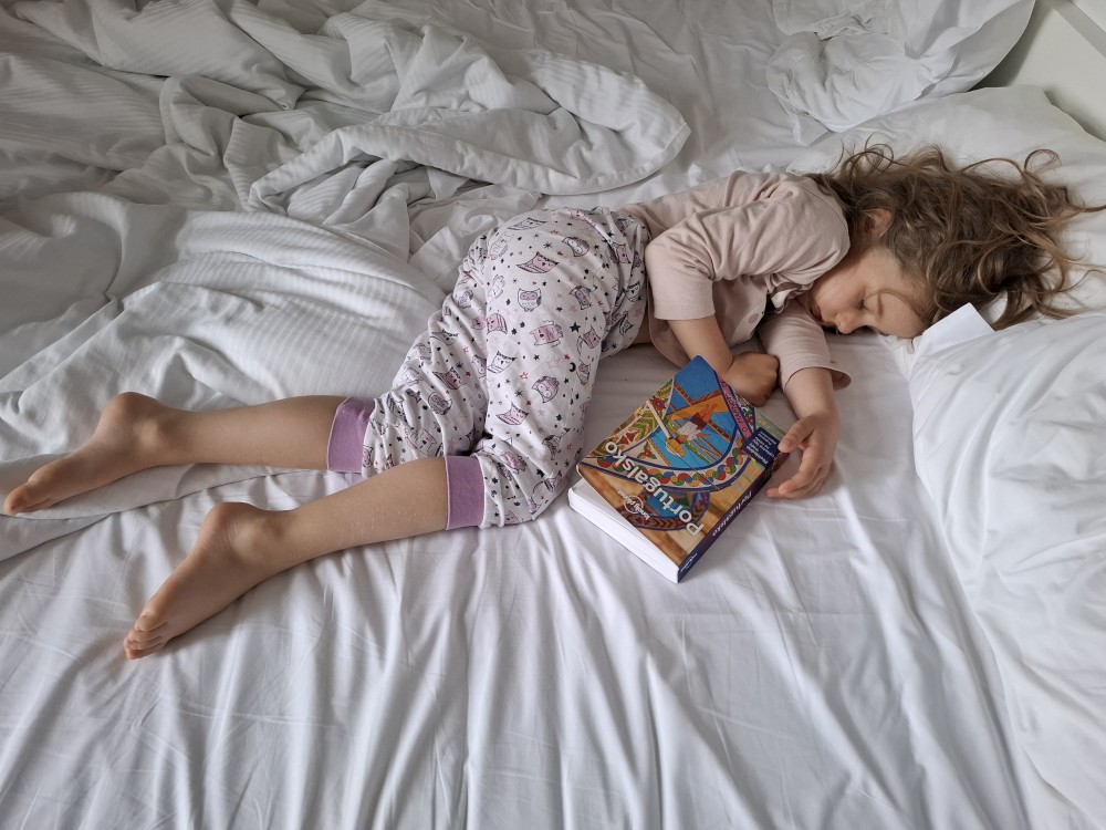 Ráno jdeme s Janou nakoupit na snídani. Obchody tu moc nejsou. Kupujeme tedy nějaké croissanty, pastel de nata a nějaké pečivo v jedné kavárně, kde si rovnou dáváme i kávu. Pak se ještě chvilku procházíme po Afamě a pak už jdeme za dětmi. Snídáme, balíme a jdeme k autu. Jana s dětma zůstává s našimi zavazadly na místě, kde budu moci na chvilku zaparkovat, až vyjedu z podzemních garáží. Já jdu pro auto.