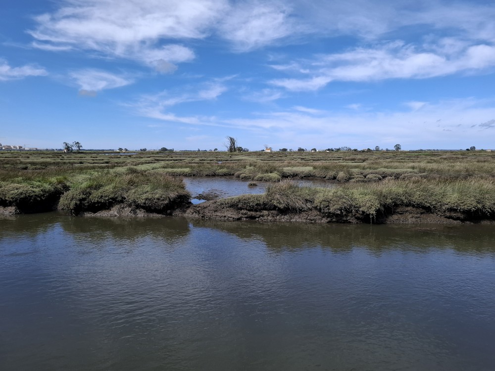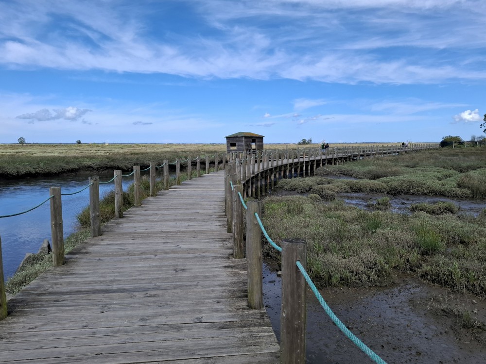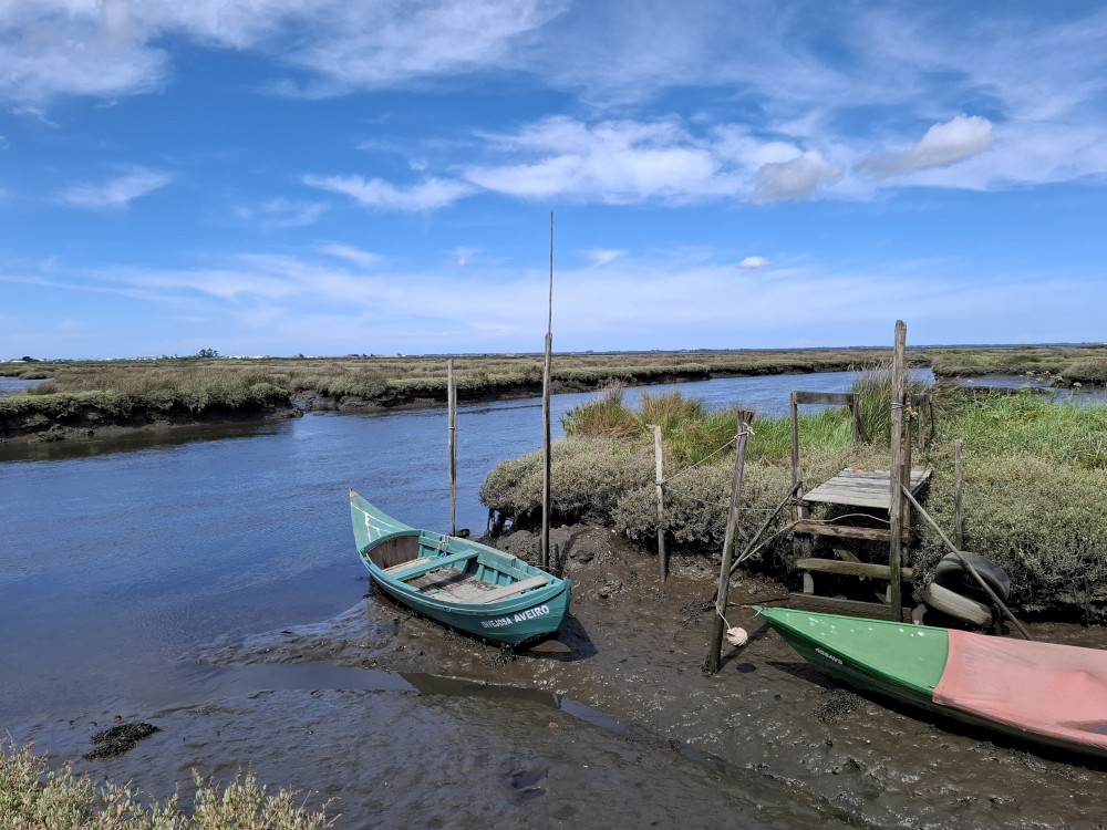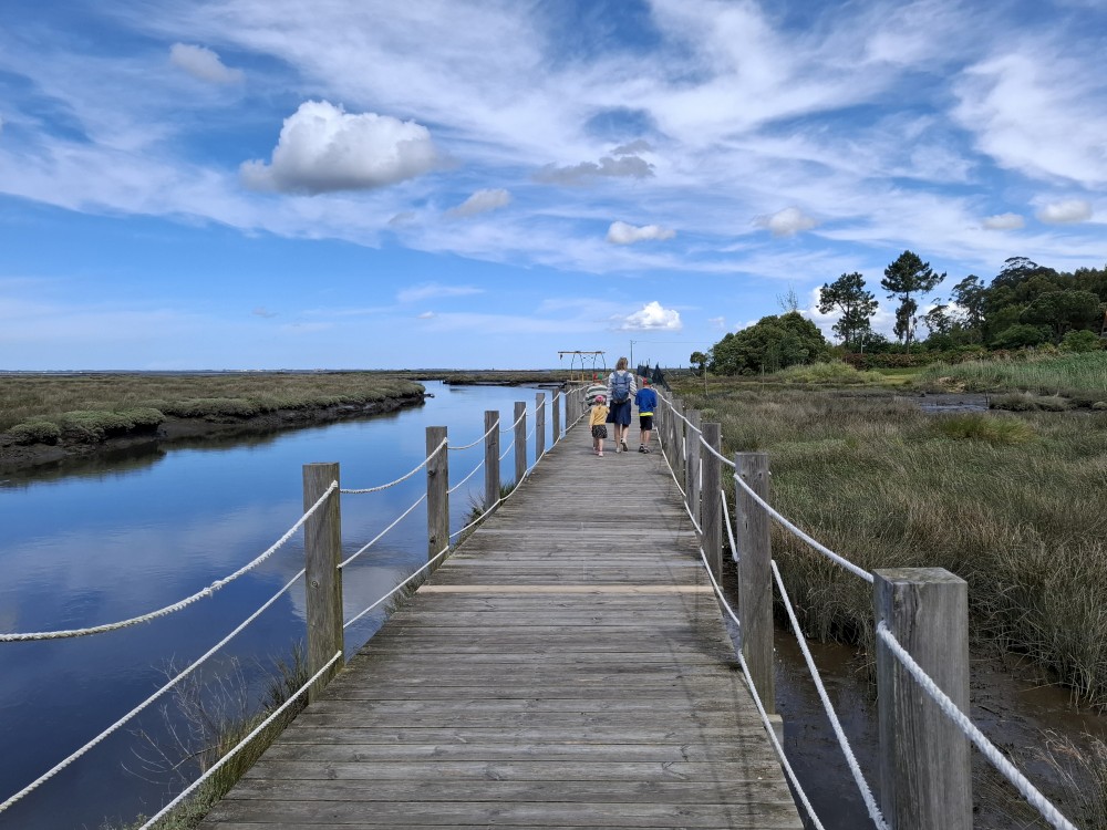 Jedeme do Aveira. První zastávku dáváme ještě před Aveirem, ve vesničce Esgueira, která přiléhá k mokřadům mezi Aveirem a oceánem. Procházíme se kolem kanálu a bahnisek po dřěvěném chodníku. Kluci pozorují krabíky v bahně. Dáváme si zmrzlinu a kávu v místní kavárně Cais da ribeira de esgueira. Pak se přesouváme přímo do Aveira.