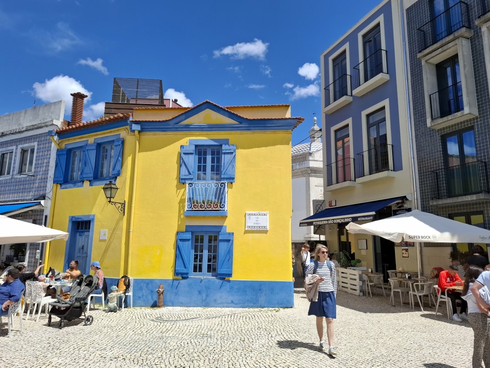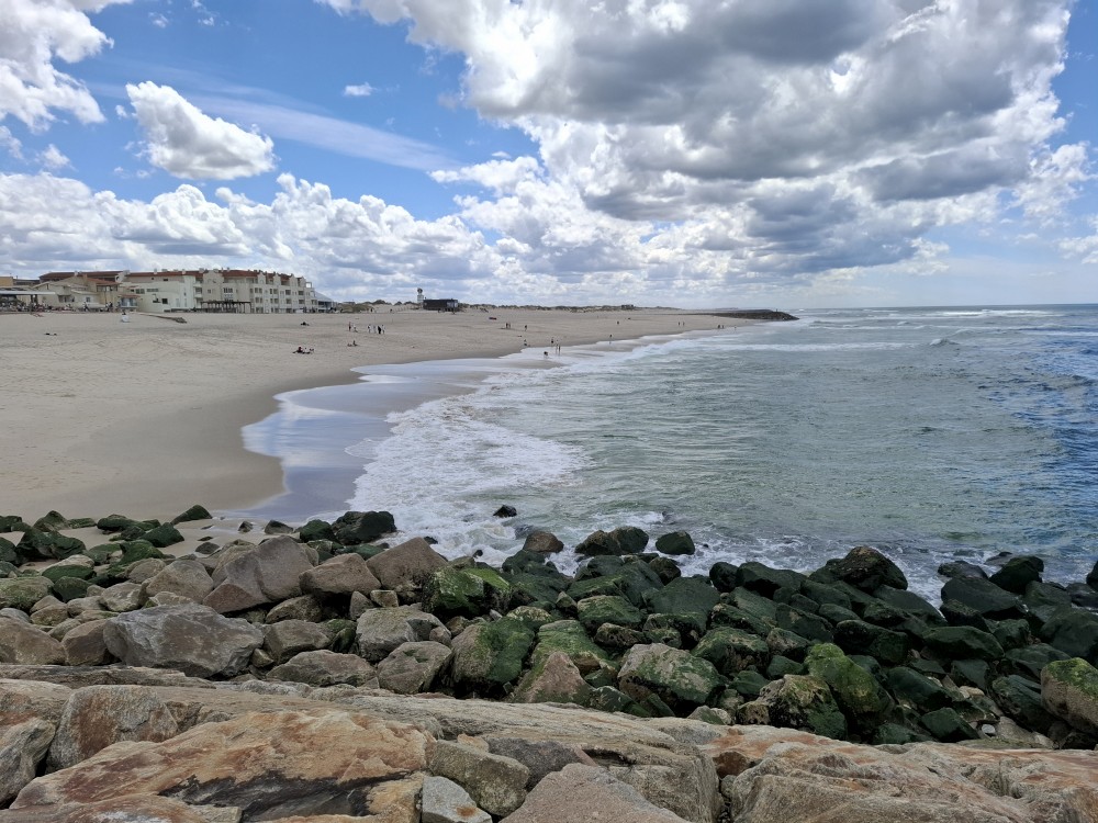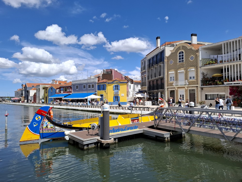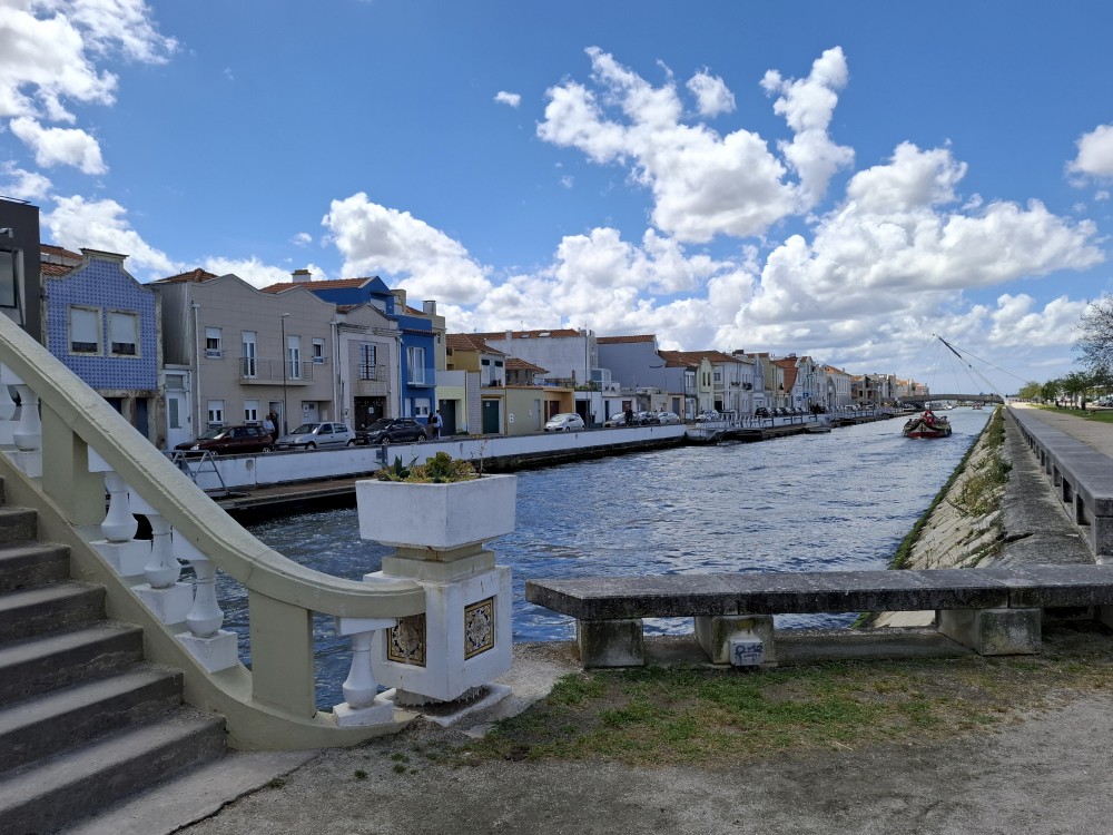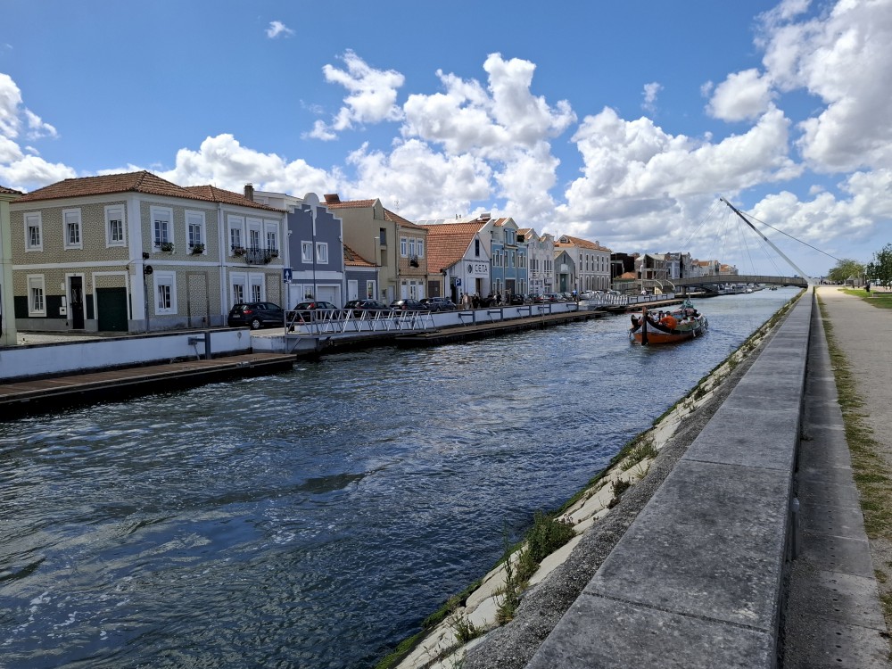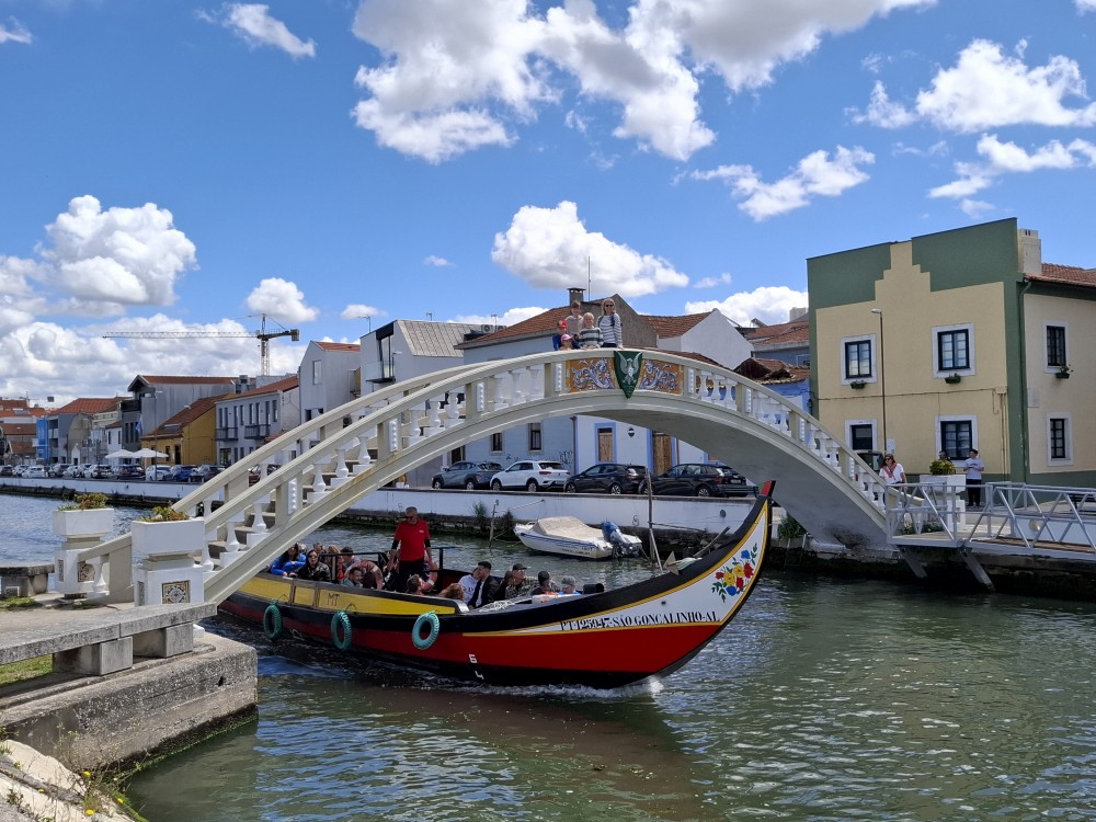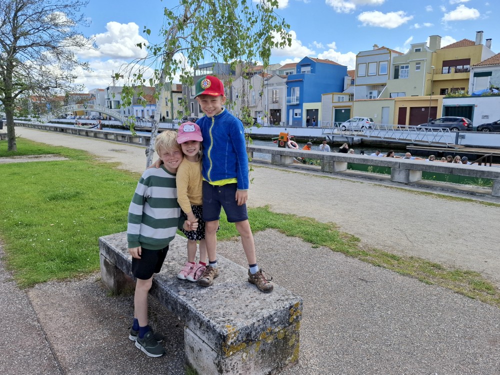 Pozorujeme barevné gondoly plující po místních kanálech a jdeme prozkoumat centrum. Jsou zde barevné domky s azulejos. Kupujeme portské víno pro babičky. Vracíme se k autu a přejíždíme na poloostrov, který odděluje Canal de Mira a oceán. Zastavujeme u pláže Gafanha da Encarnação, pozorujeme vlny, děti skotačí ve vodě.
