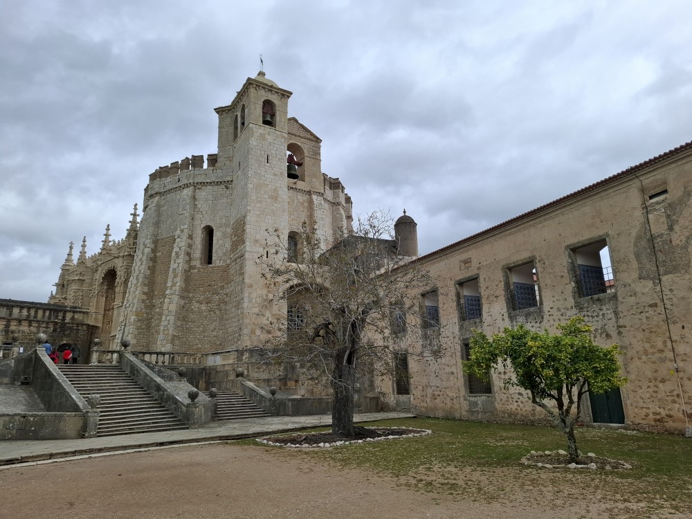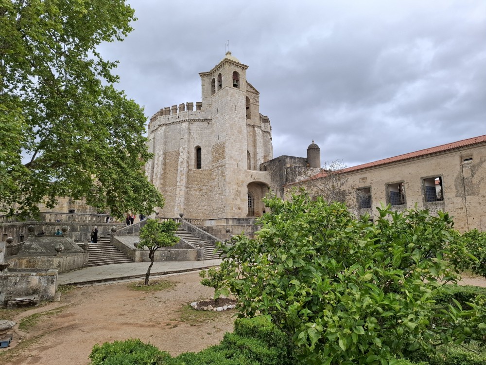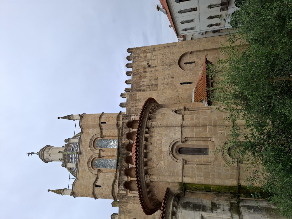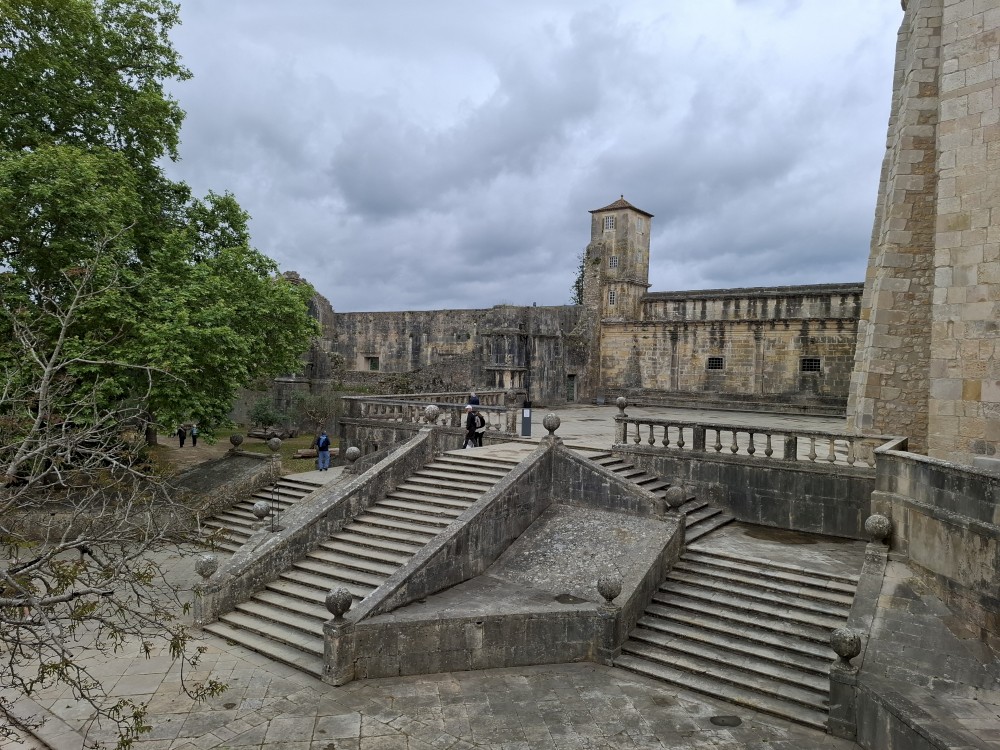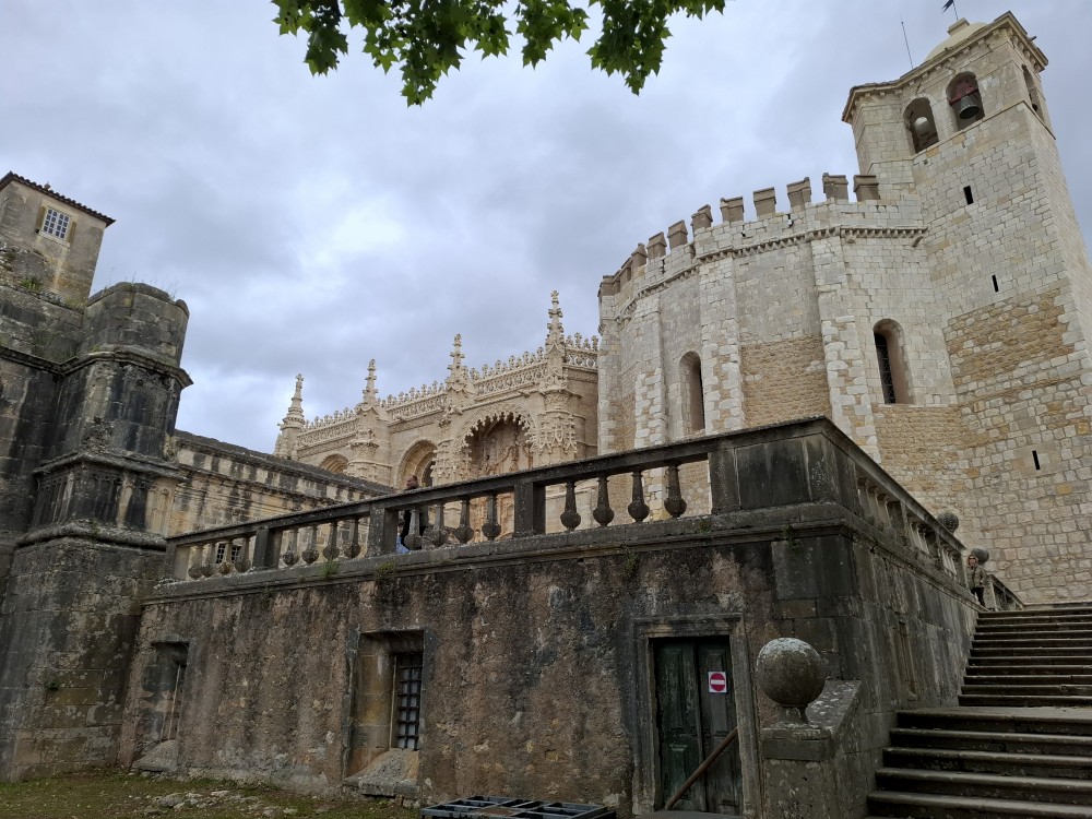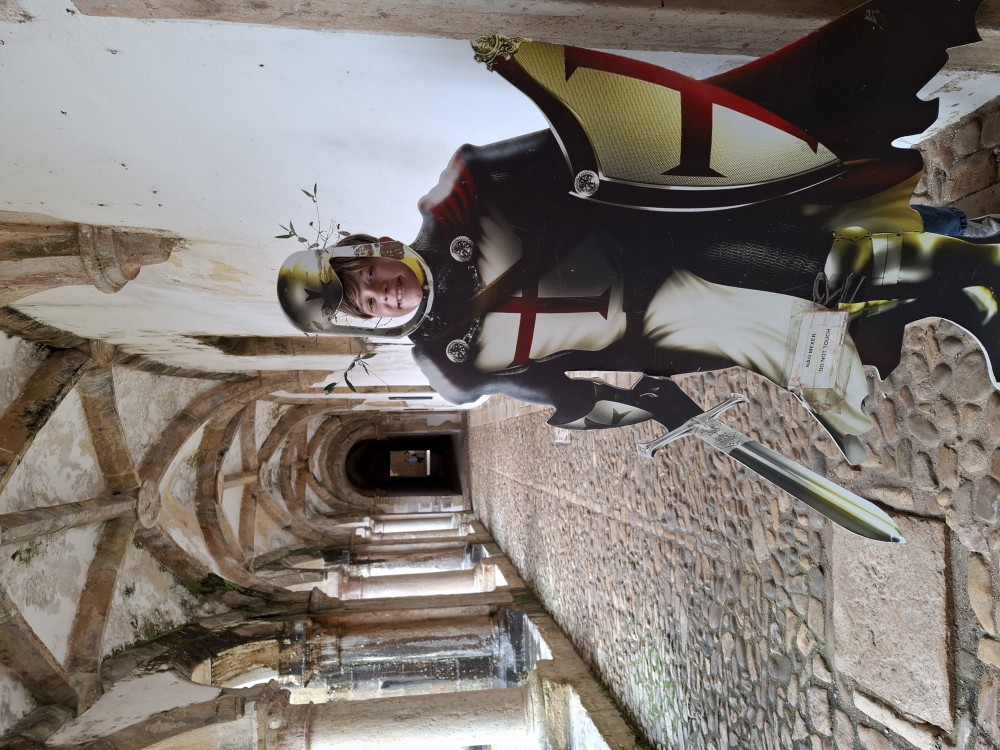 V dolní části jsou v uzamčených policích, v patře nad ochozem volně. Po návštěvě knihovny klesáme starým městem na ubytování, balíme a jdeme k autu. Opouštíme Coimbru. Čeká nás dnes několik zastávek. Jako první Tomar, templářský hrad. Přímo u vchodu (zatím si myslíme, že je to vchod) stojí rytíř v brnění. Čekáme, že si s námi bude chtít udělat fotku za 5 EUR. Kluci s Bětuškou probíhají kolem něj jakože závodí a rytíř v těžkém brnění je bez šance na fotku.