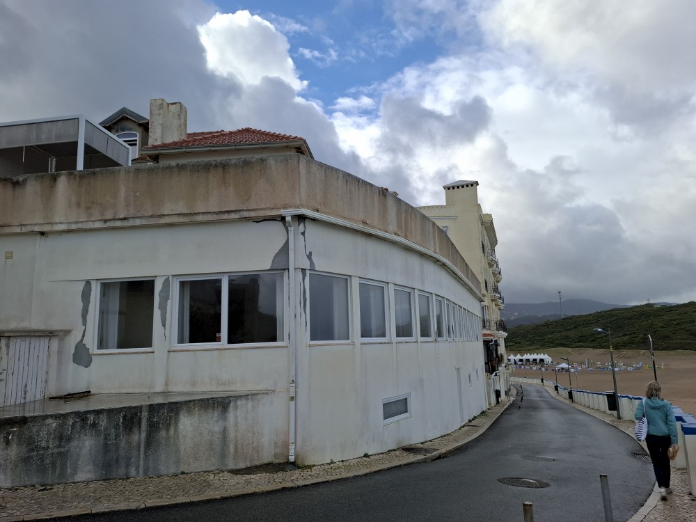 U hotelu jsou všechna parkovací místa plná. Vyndaváme před hotelem kufry a jdu zaparkovat na nedaleké parkoviště. Máme střešní apartmán s výhledem na rozbouřený oceán. Vlny jsou obrovské. Po krátkém posezení na apartmánu jdeme ještě do města. Sedáme do restaurace hned vedle hotelu. Jsou tam výhledy na oceán i na fotbalové utkání portugalské ligy, které dávají v televizi.