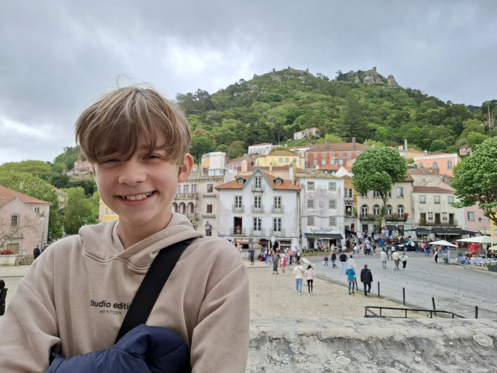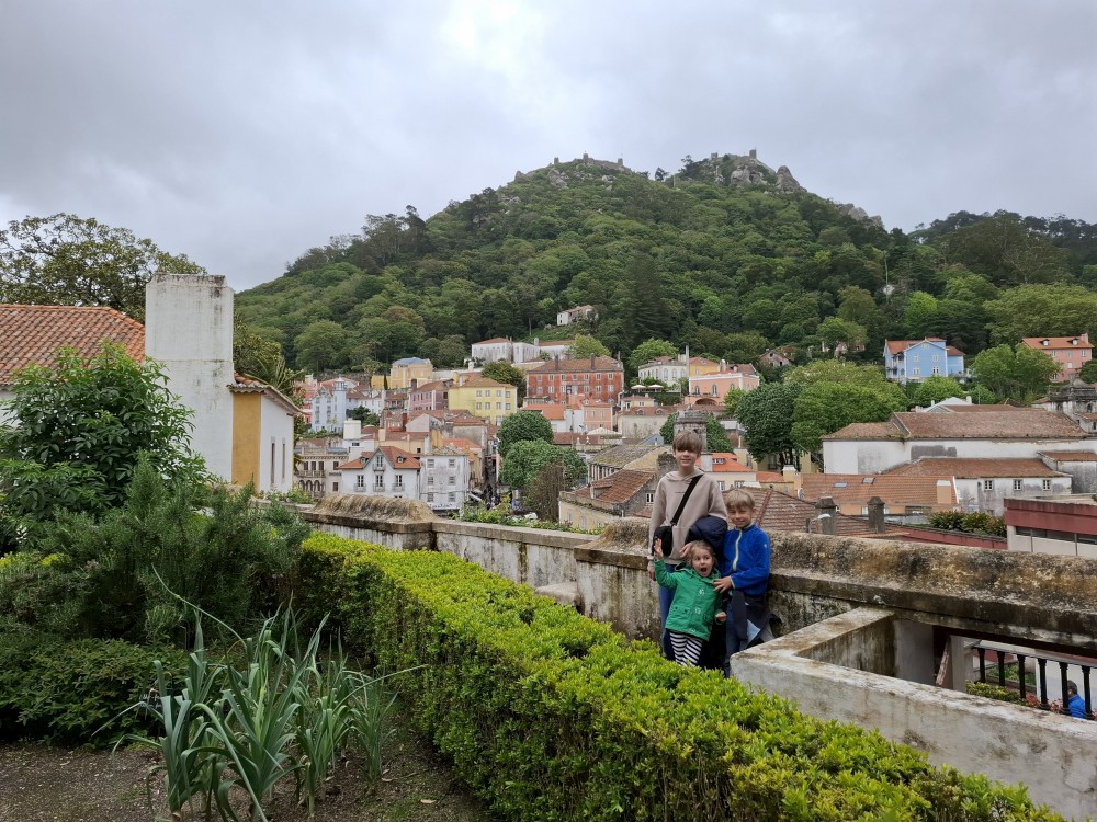Vstáváme kolem 8:30. Jdeme s Janou nakoupit na snídani. Snídáme v jídelně hotelu s výhledem na oceán. Po snídani vyrážíme do Sintry. Cestou zastavujeme u vyhlídky na oceán nad Azenhas do Mar. Navigace nás pak bohužel nedovedla na parkoviště přímo u paláce Palácio Nacional da Pena a dostáváme se do děsivé dobravní zácpy. Všichni hledají parkování v centru Sintry a je to bez šance. Až cca po hodině jízdy se dostáváme na parkoviště asi 2 km od paláce, kde už jsme před hodinou byli. Hrůza.